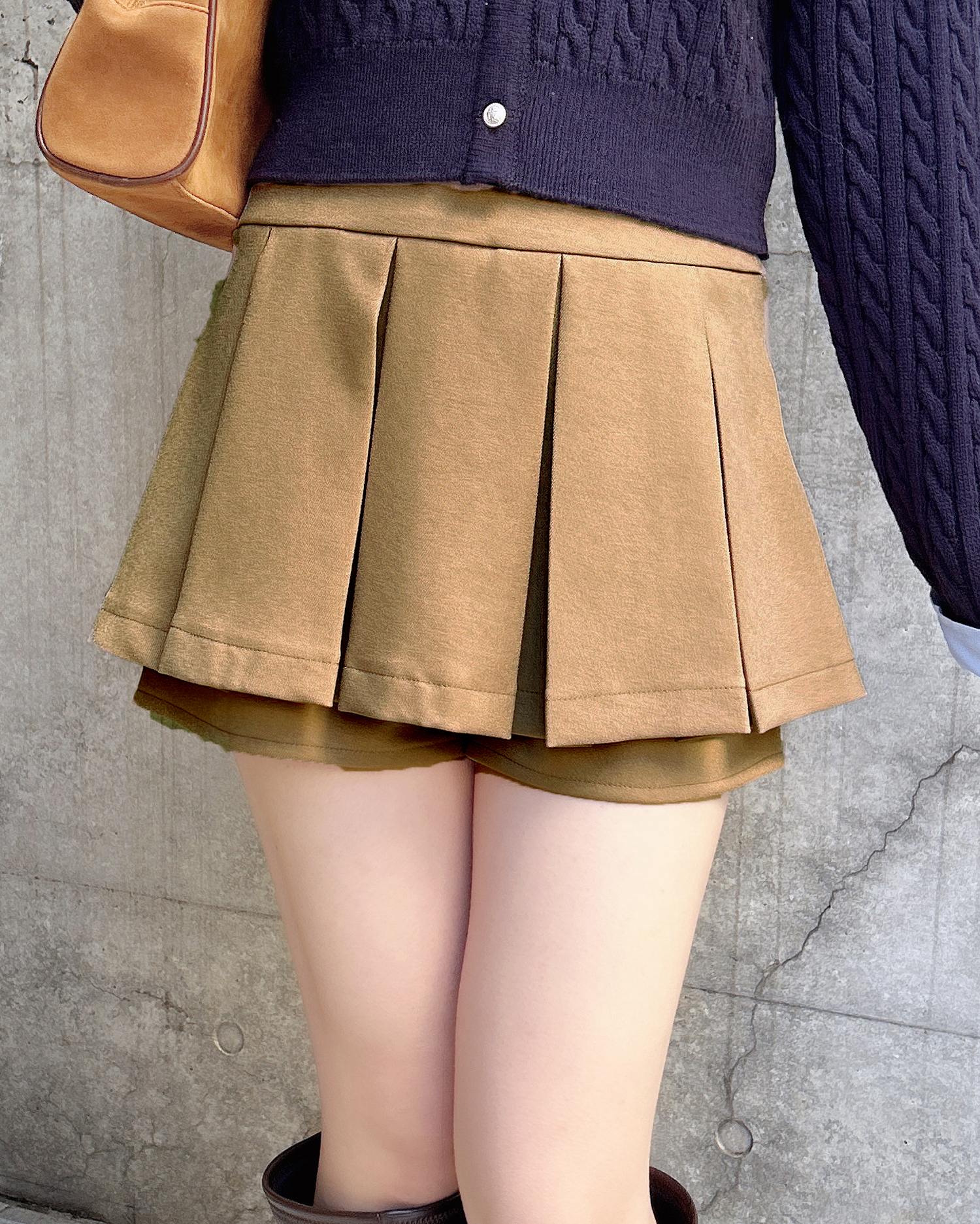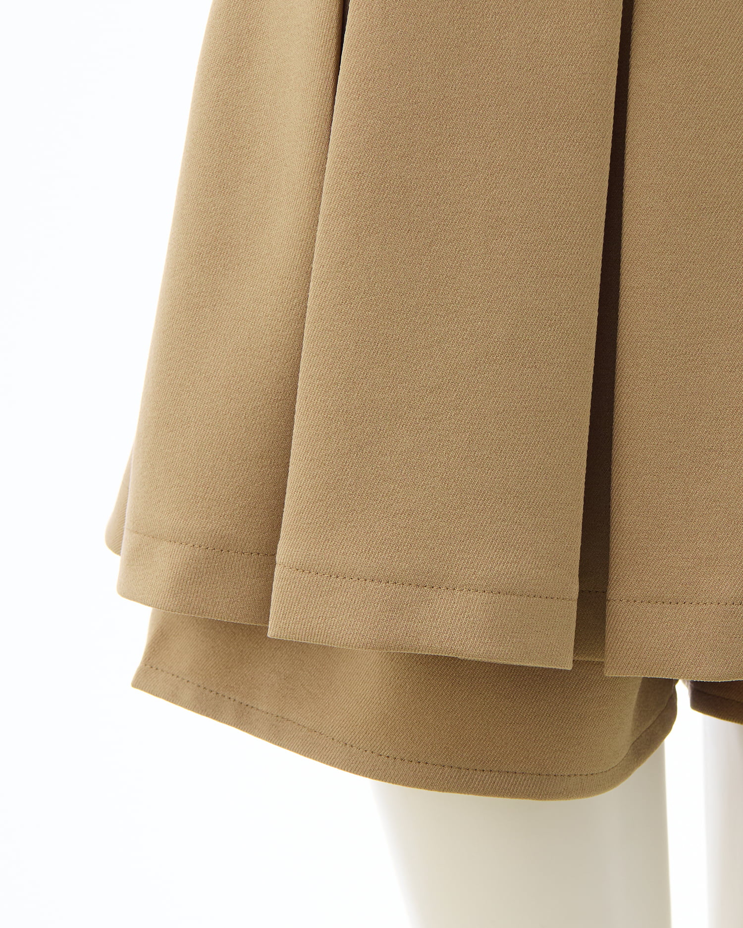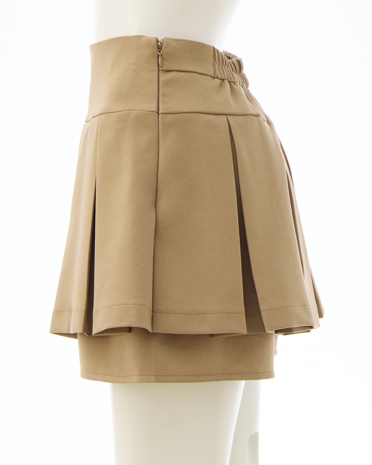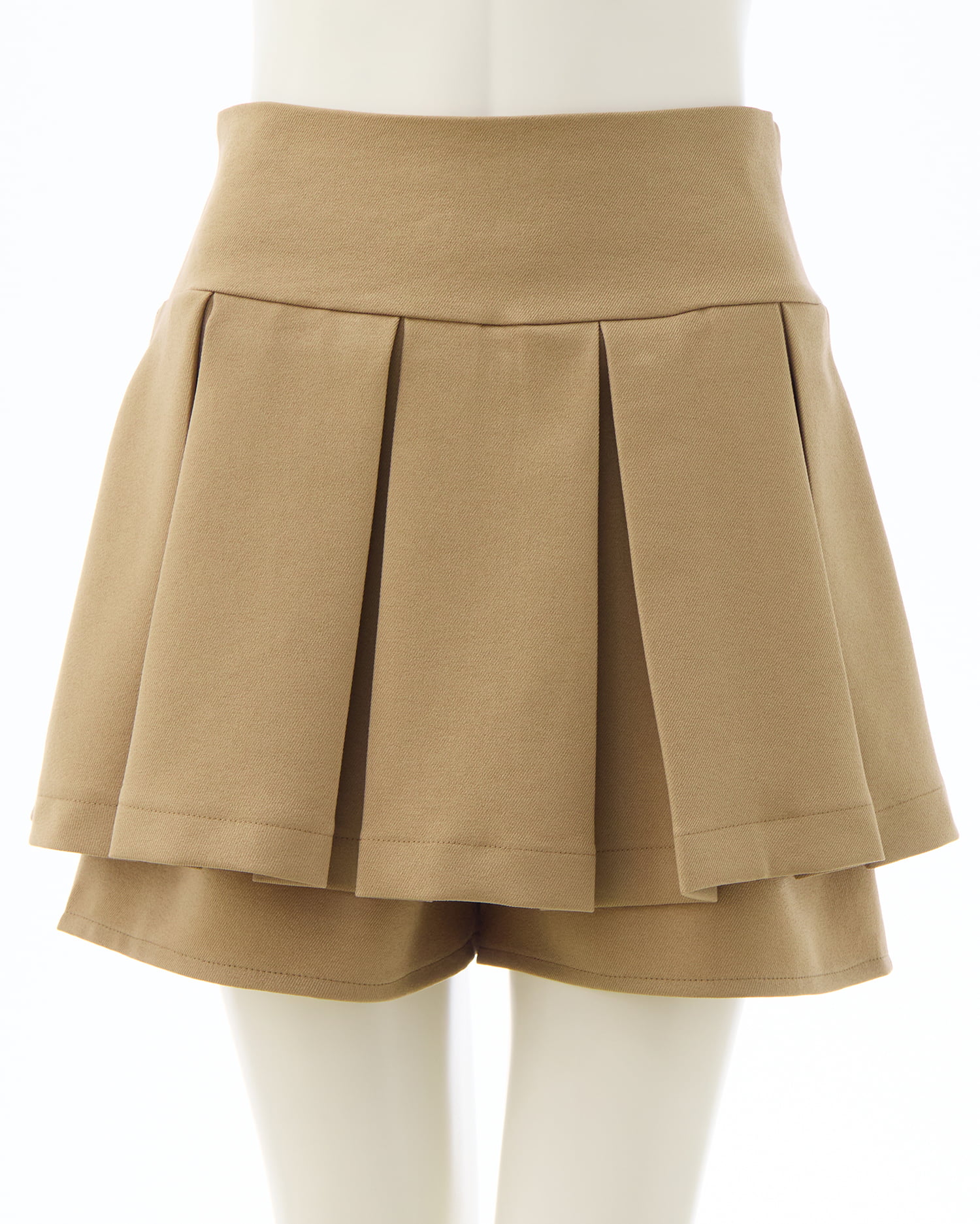 ショートパンツにスカートを重ねたようなレイヤードデザインのスカパン。