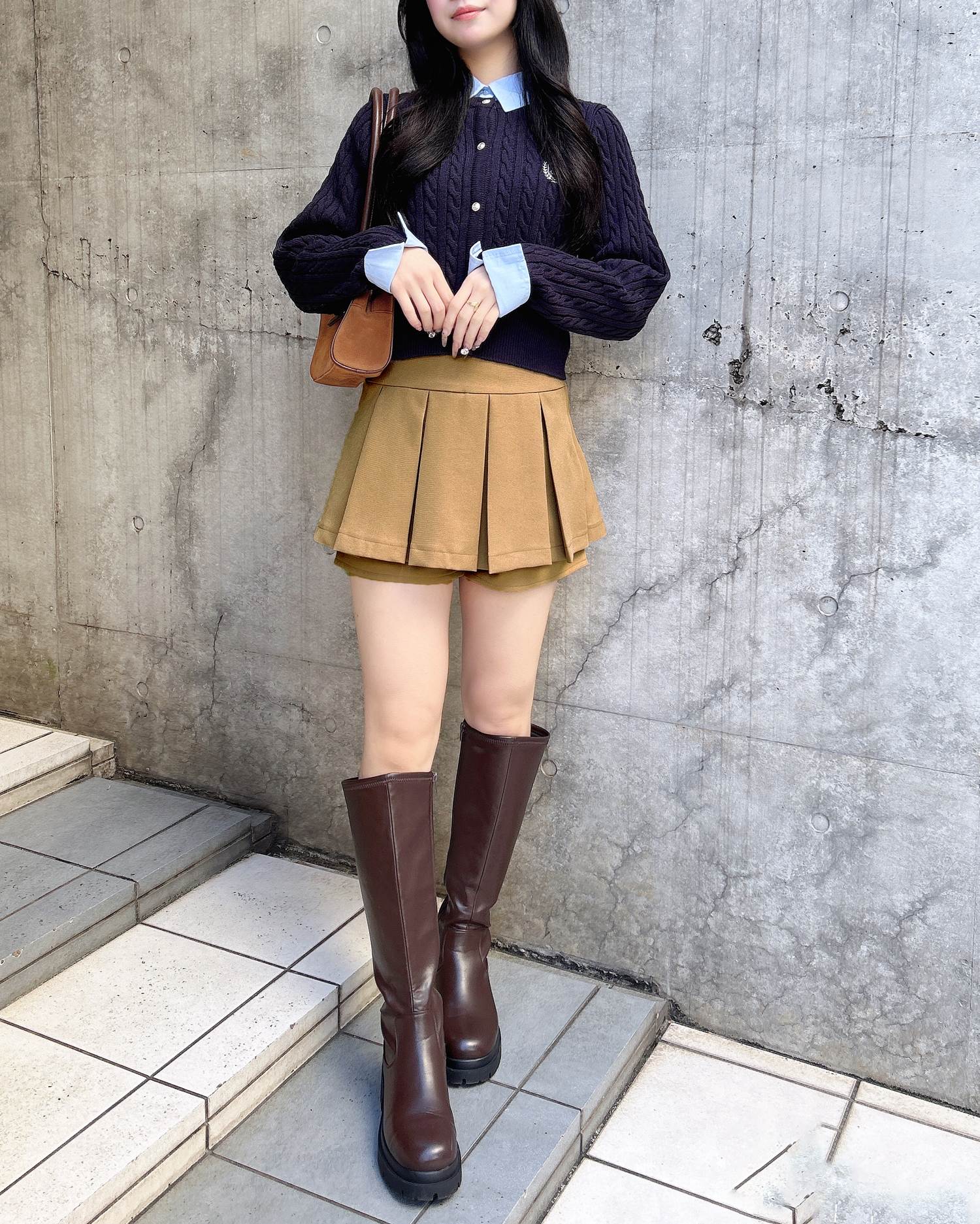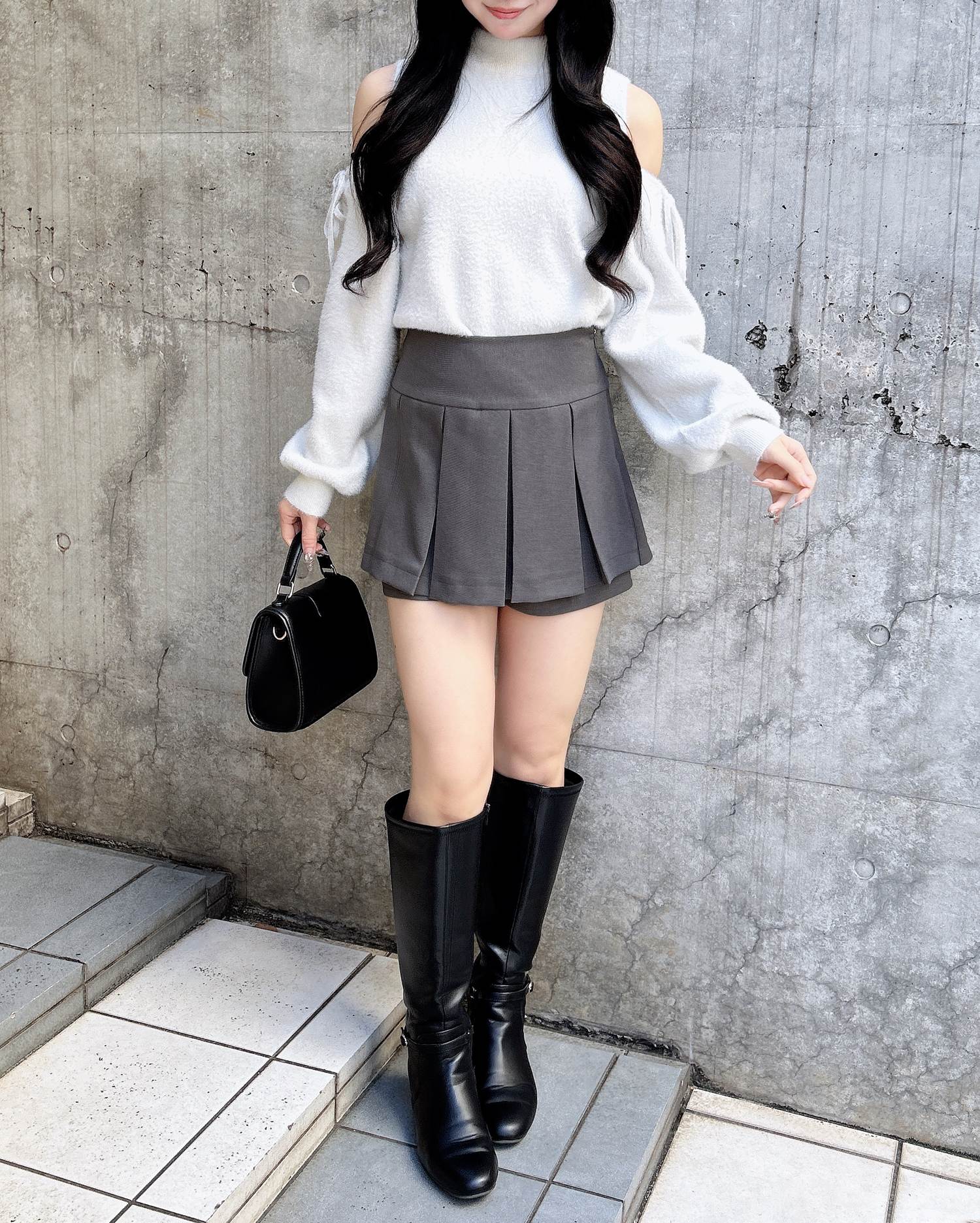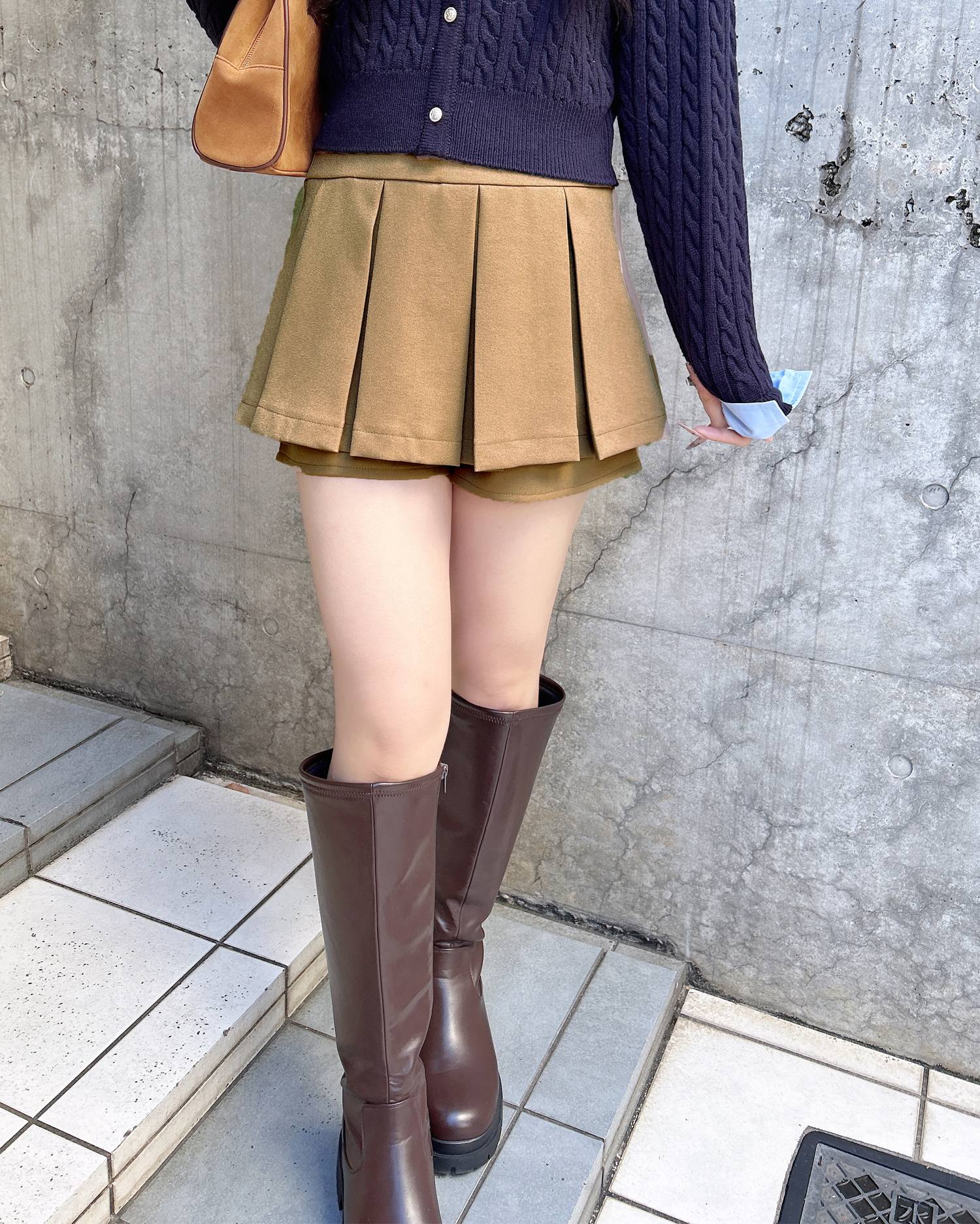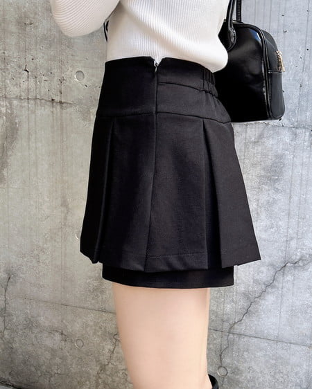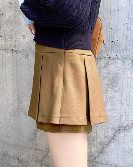 ショートパンツにスカートを重ねたようなレイヤードデザインのスカパン。