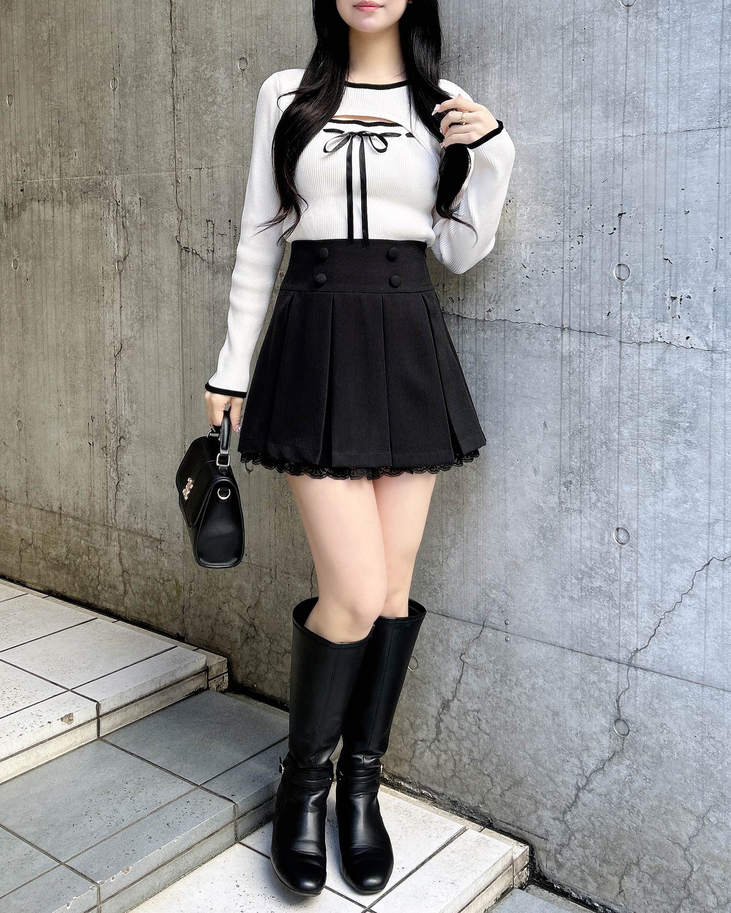 【裾のレースが可愛すぎる♡プリーツスカパン】