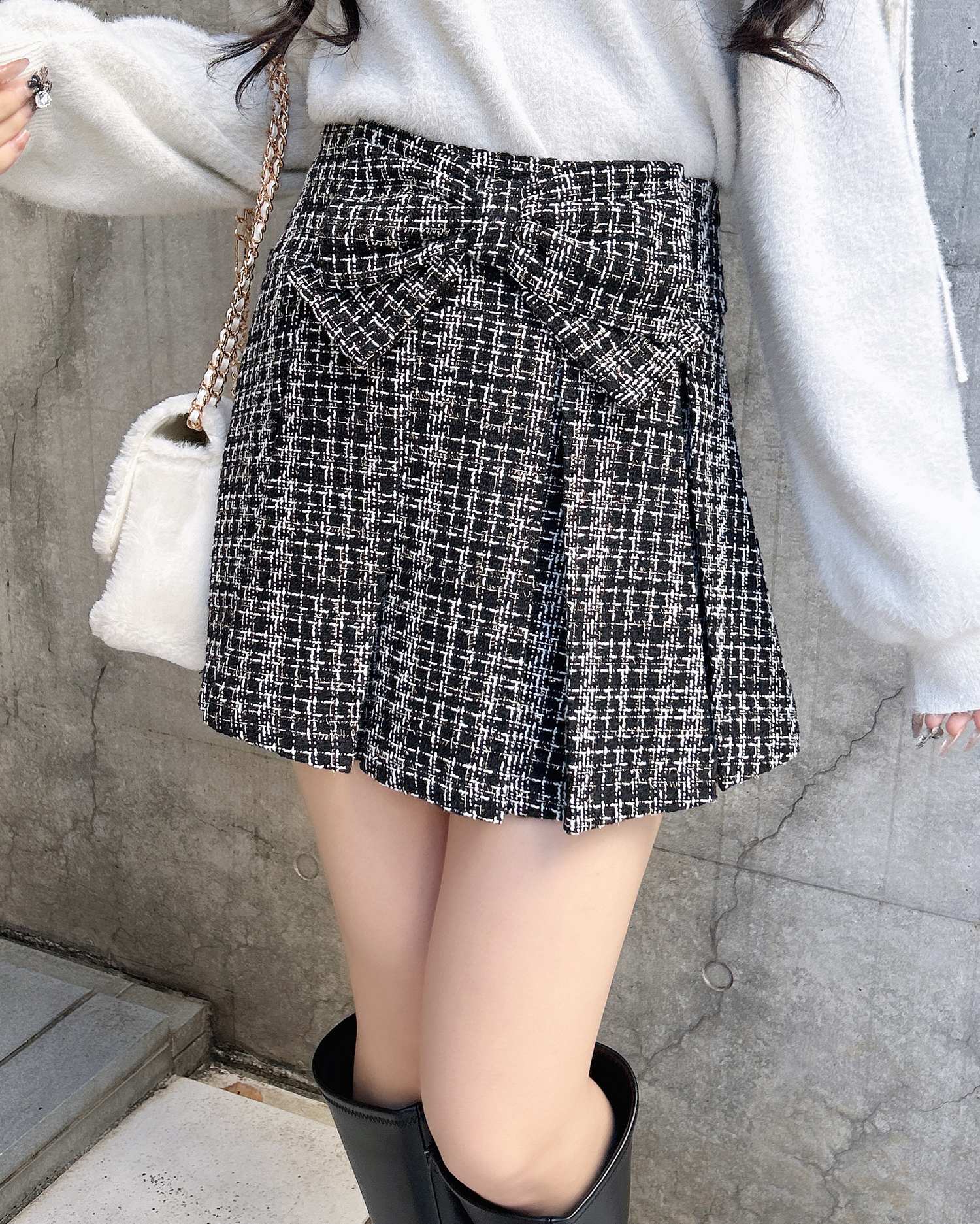 【フロントのリボンがかわいい♡ツイードプリーツスカパン】