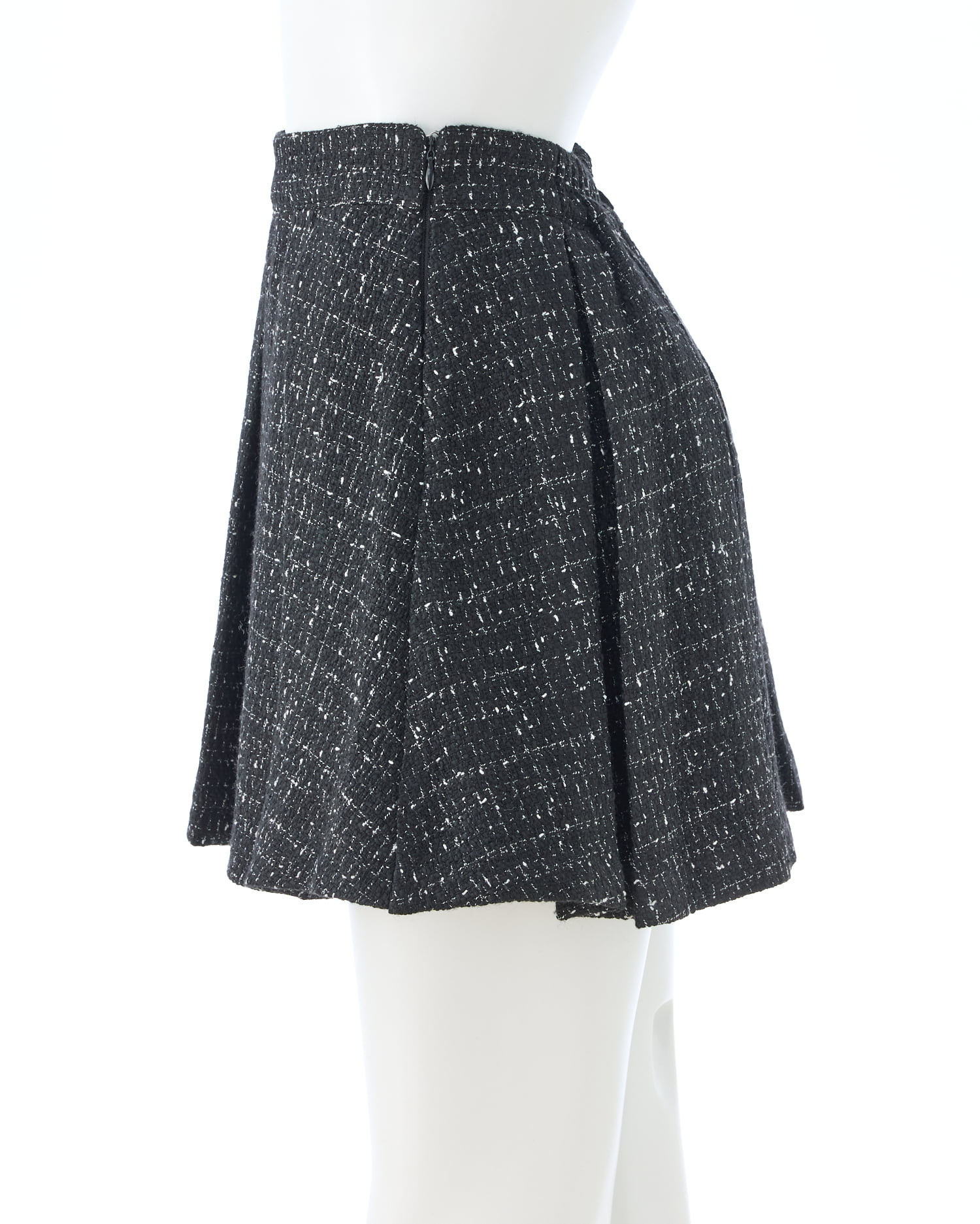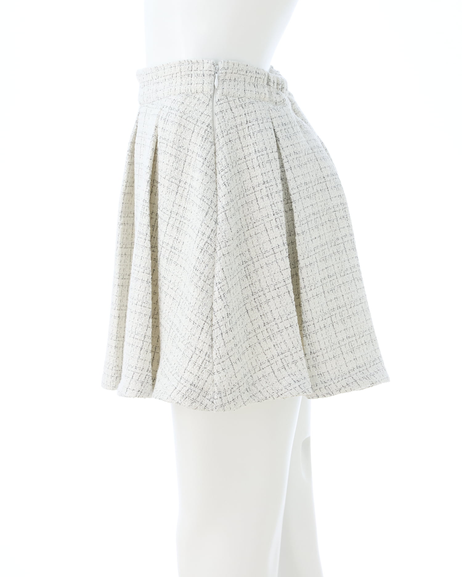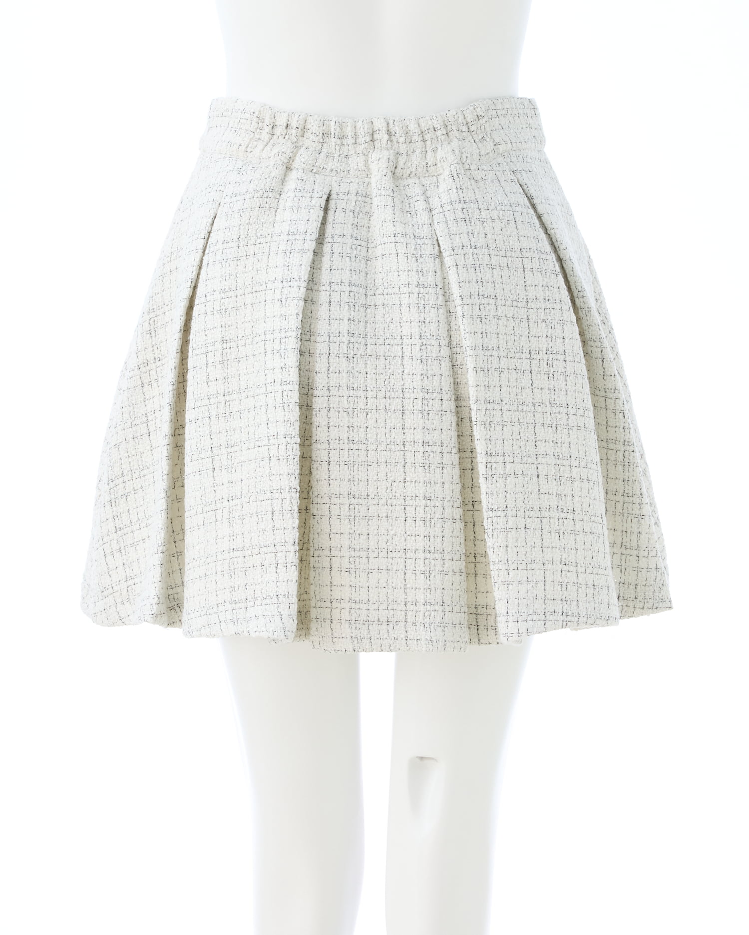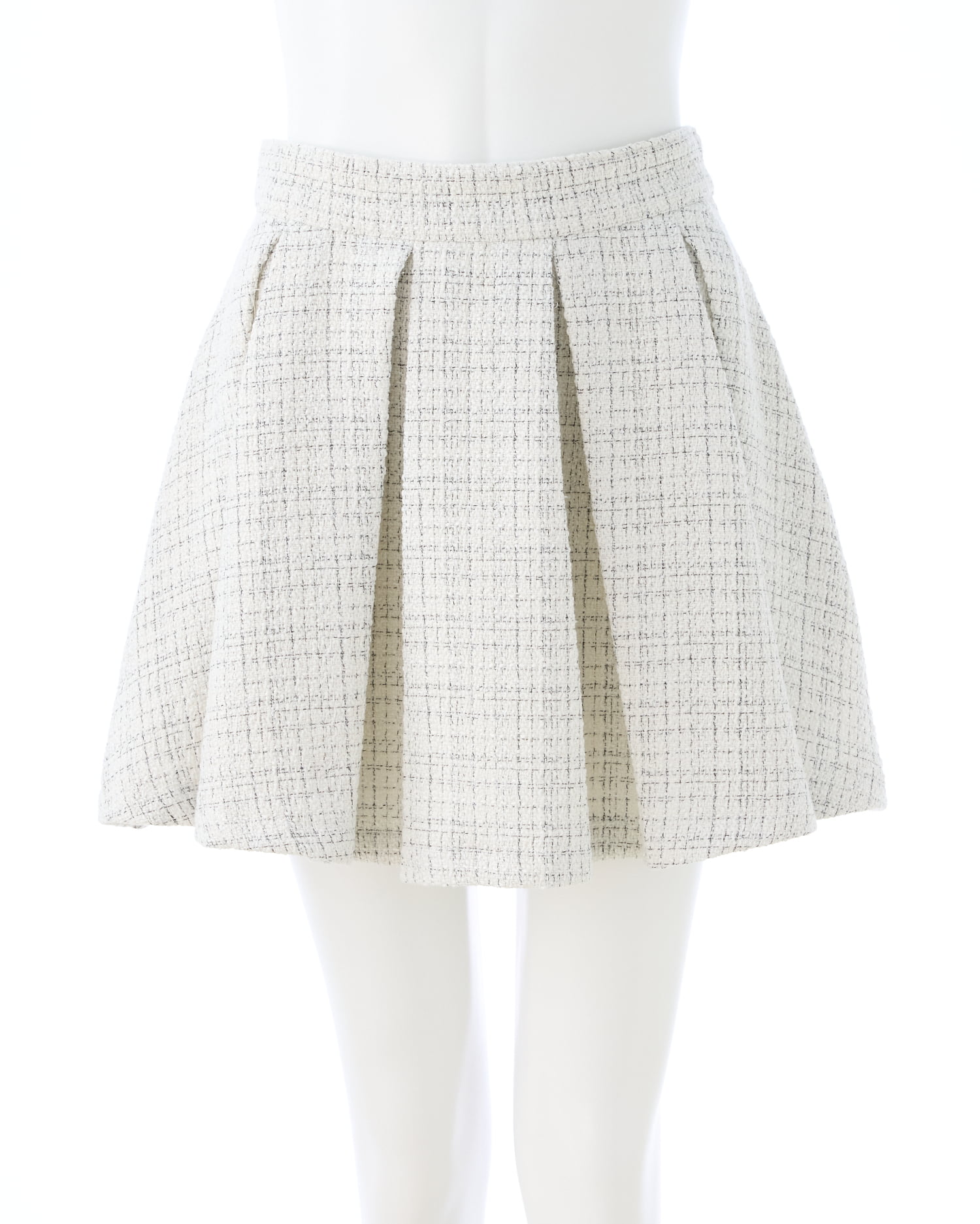オンオフ問わずに着まわせるツイード素材のスカパン。