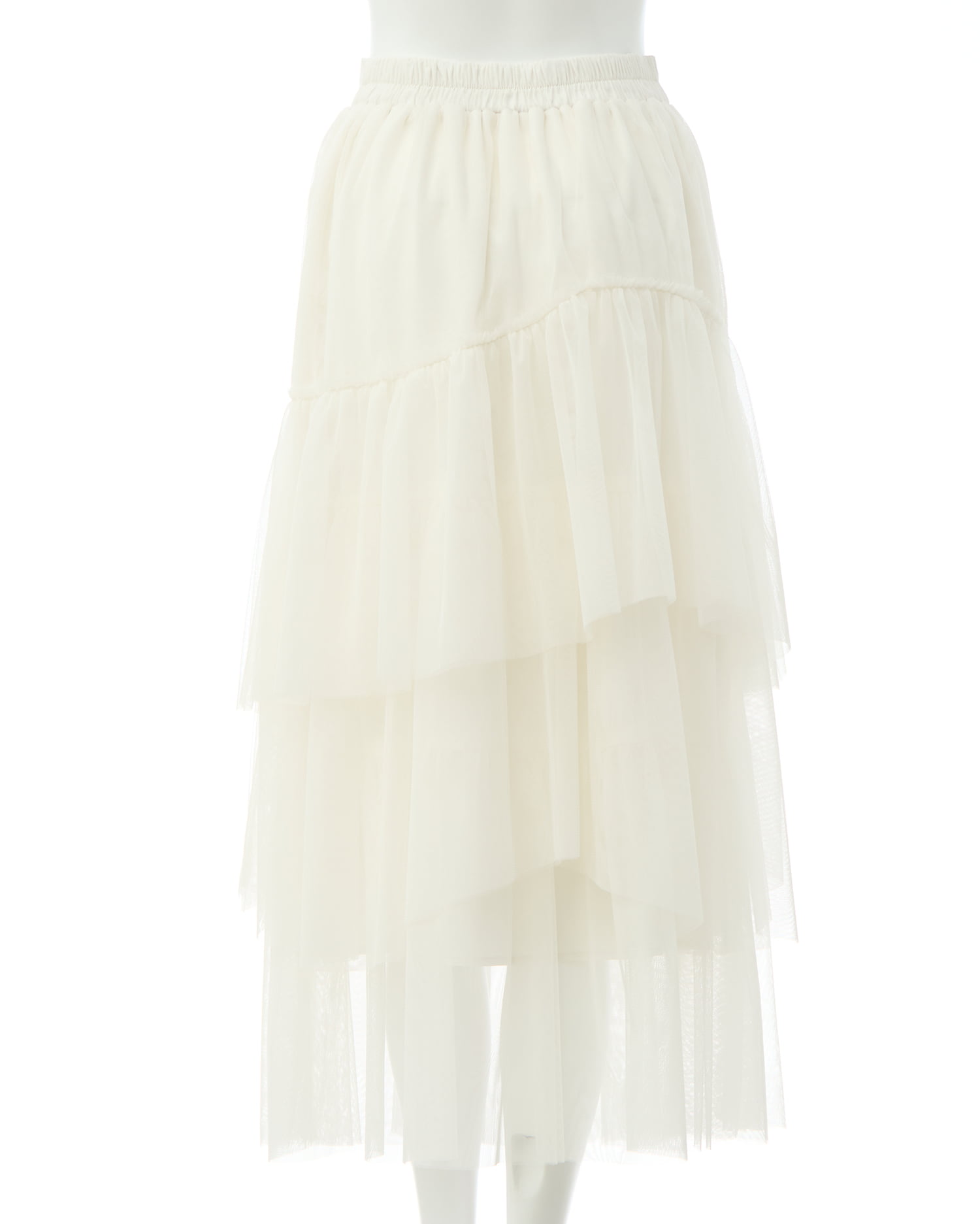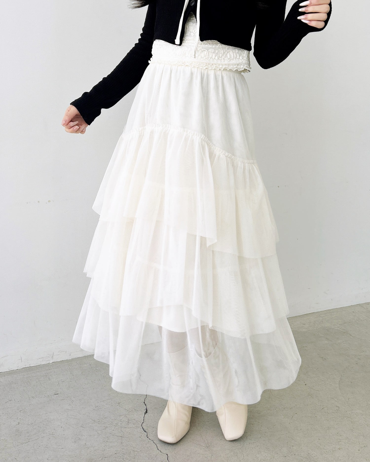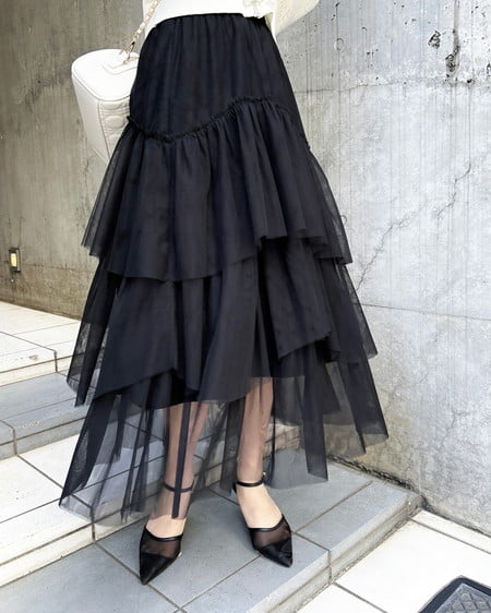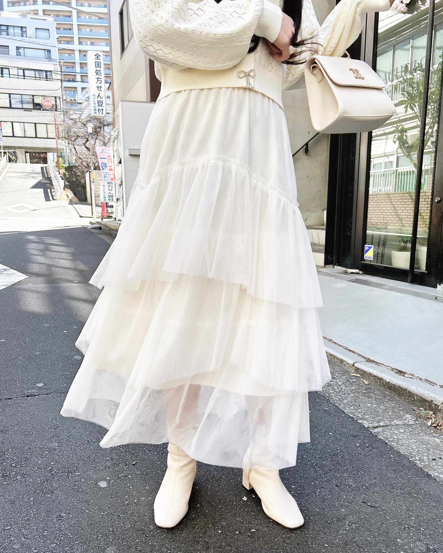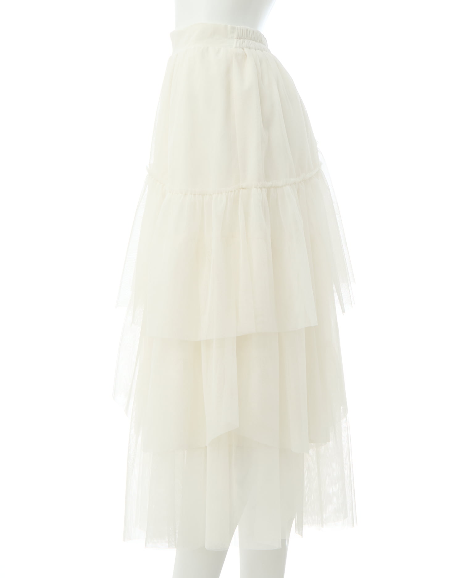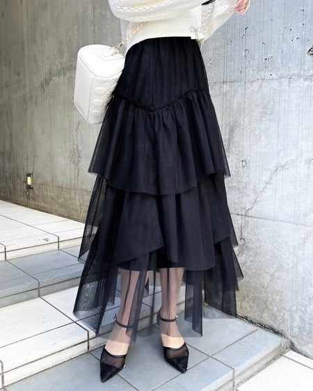 2枚重ねのチュールがシンプルなワンカラーに表情をプラス。