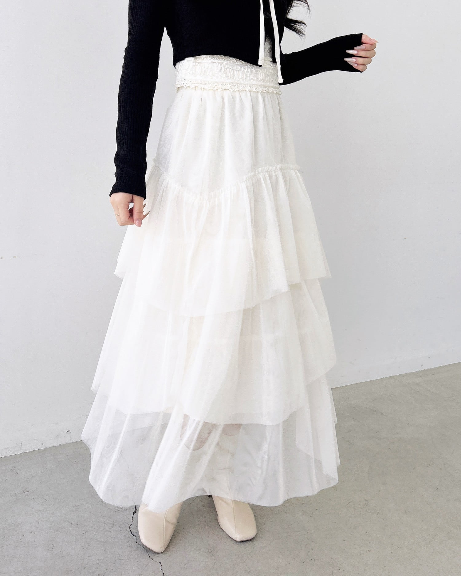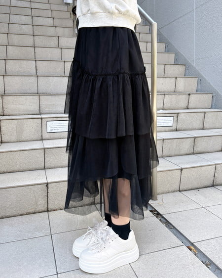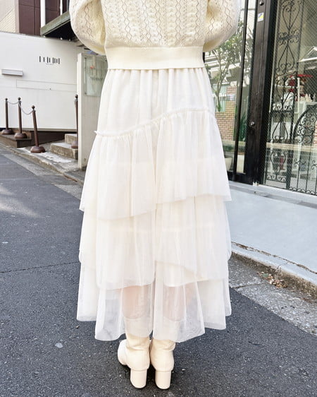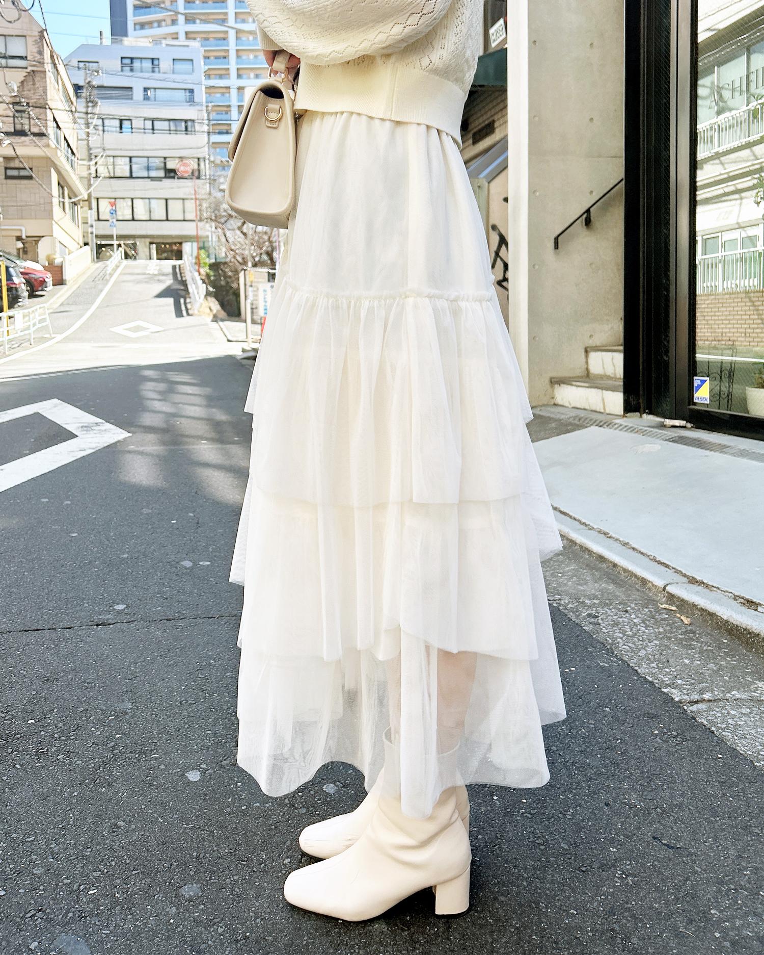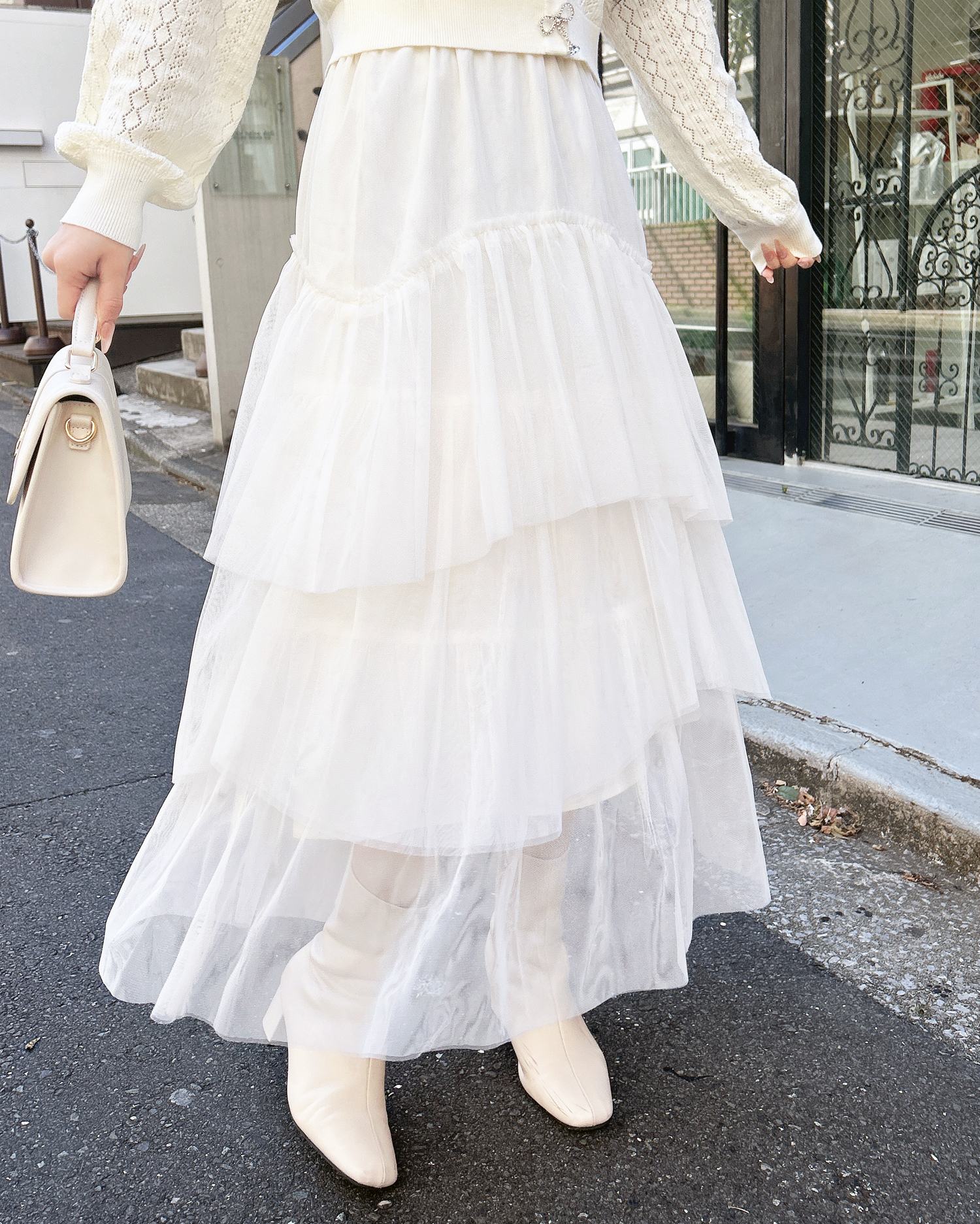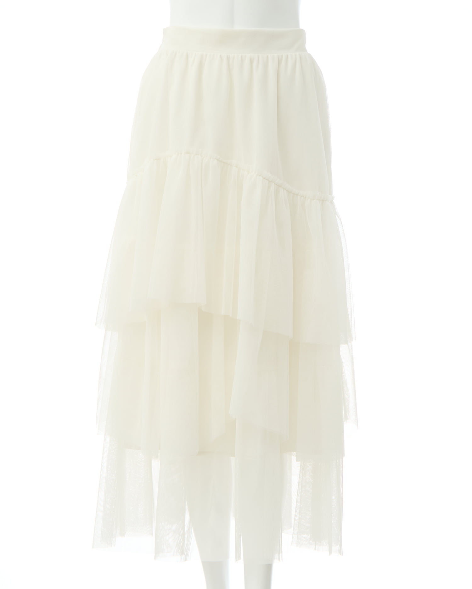 2枚重ねのチュールがシンプルなワンカラーに表情をプラス。