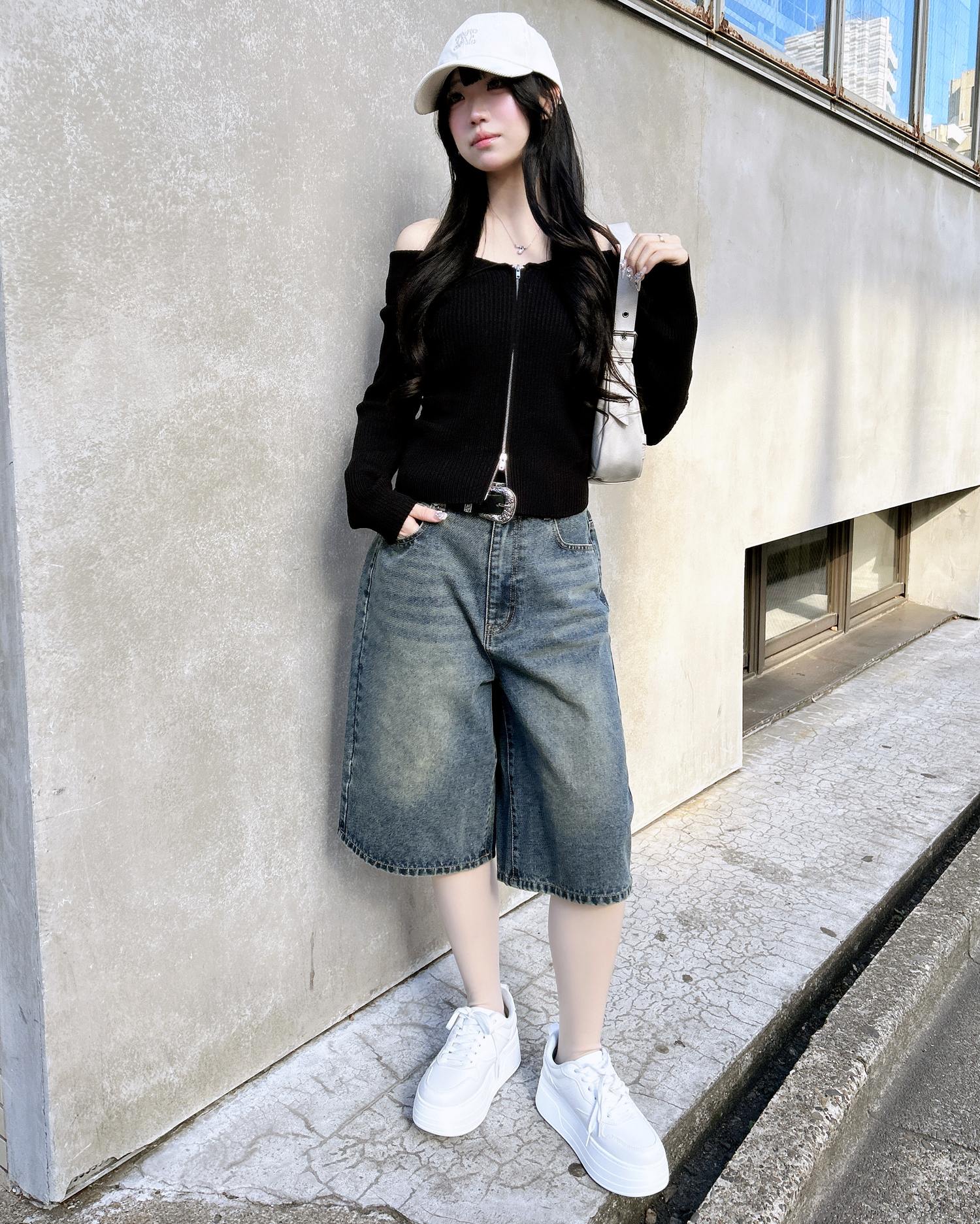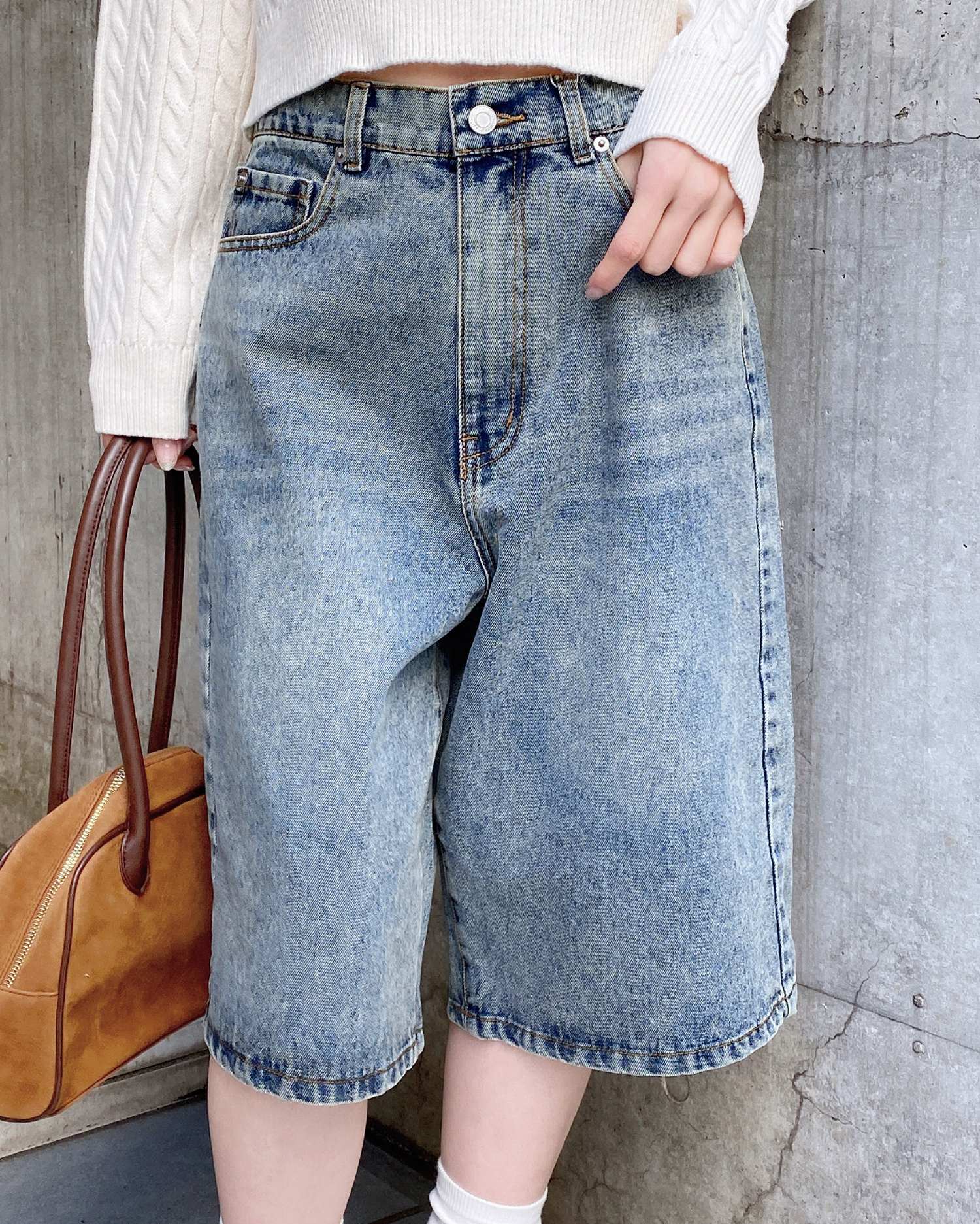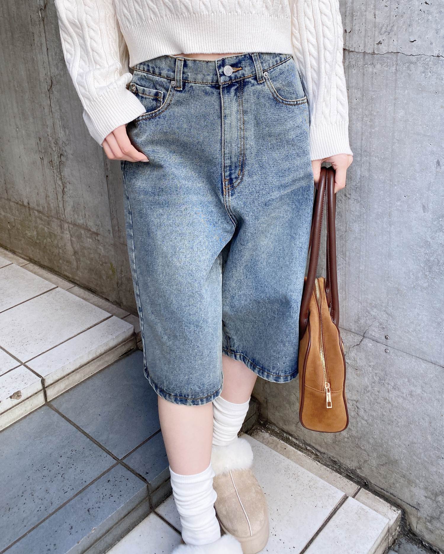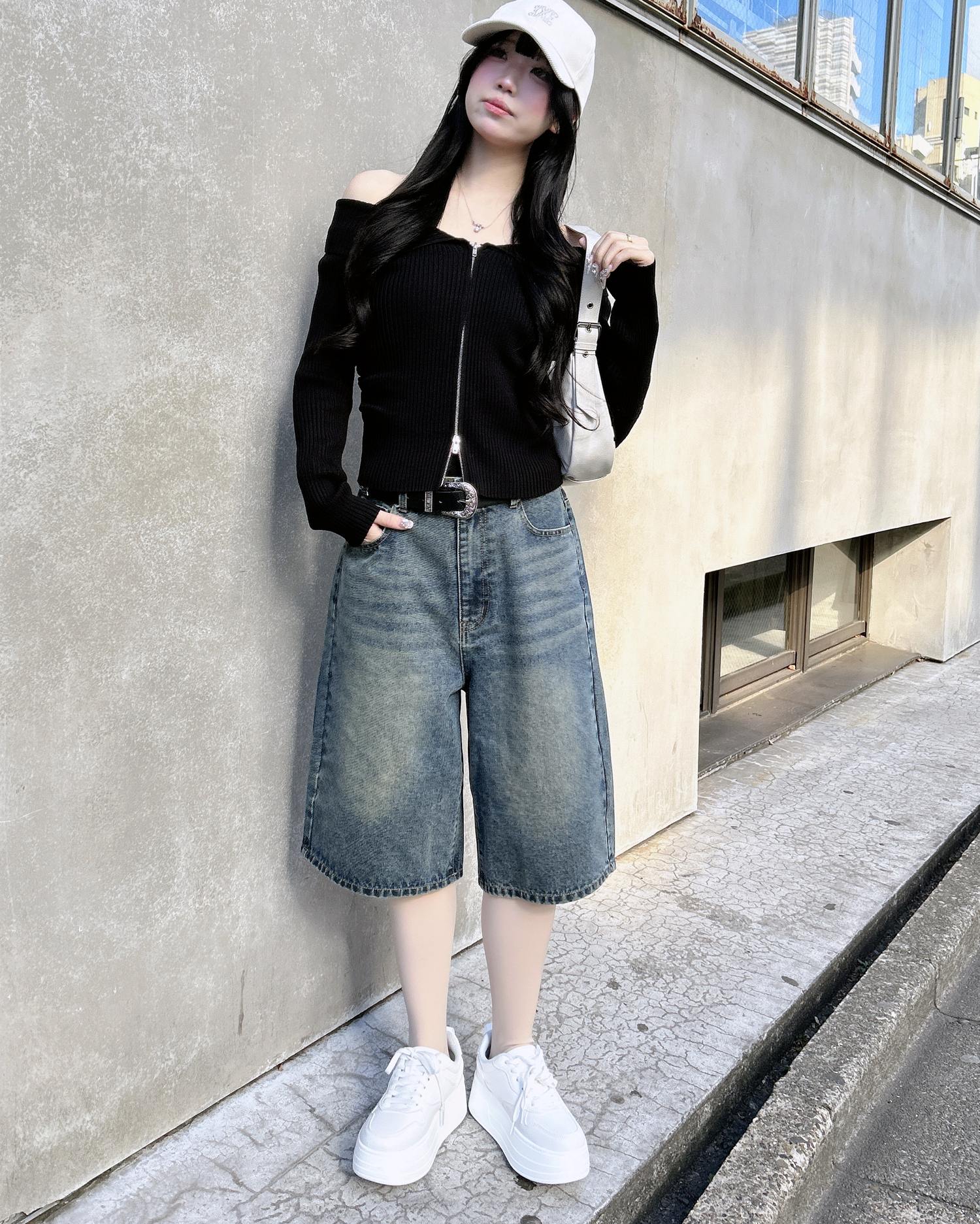 こなれ感のあるトレンドスタイルが完成するハーフ丈のデニムパンツ。