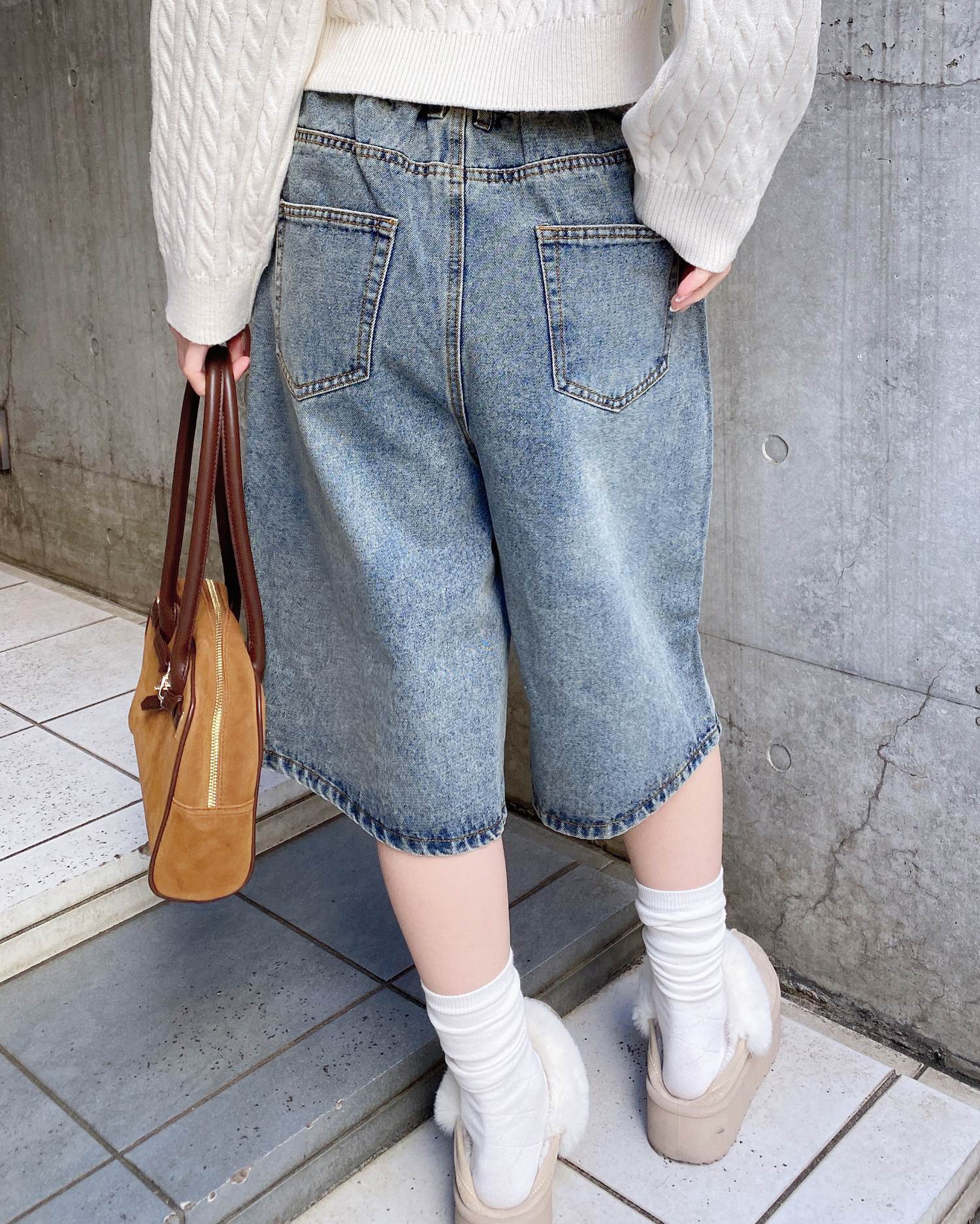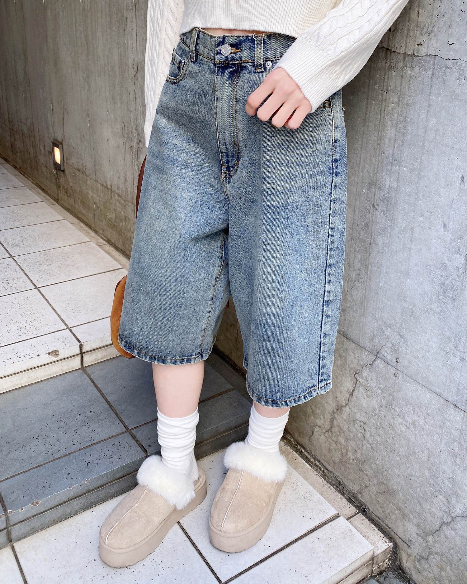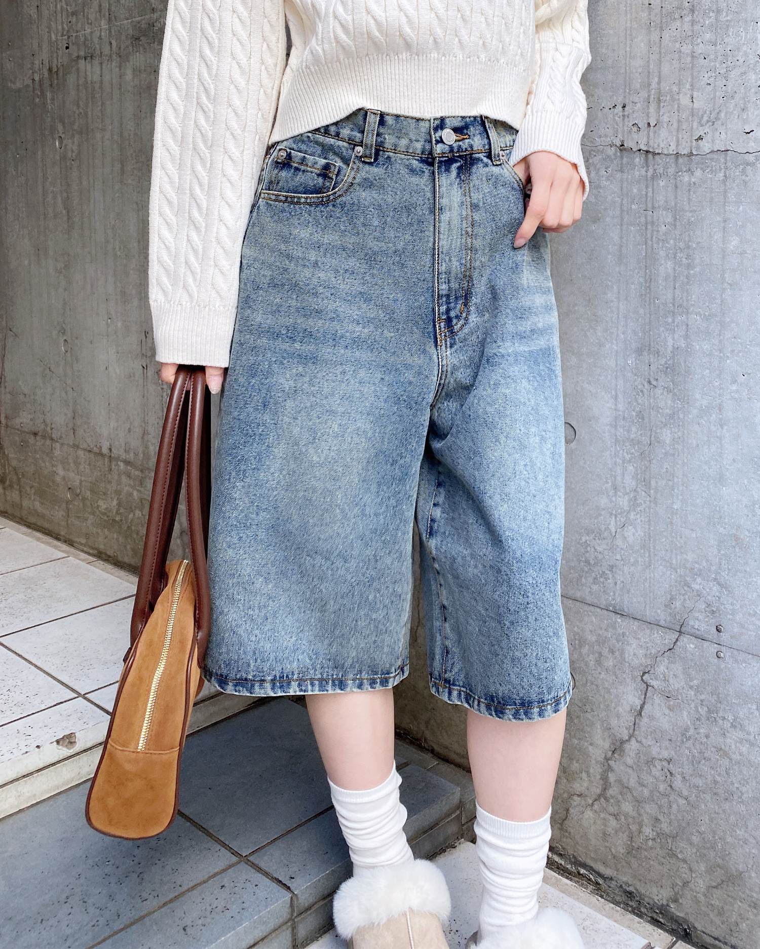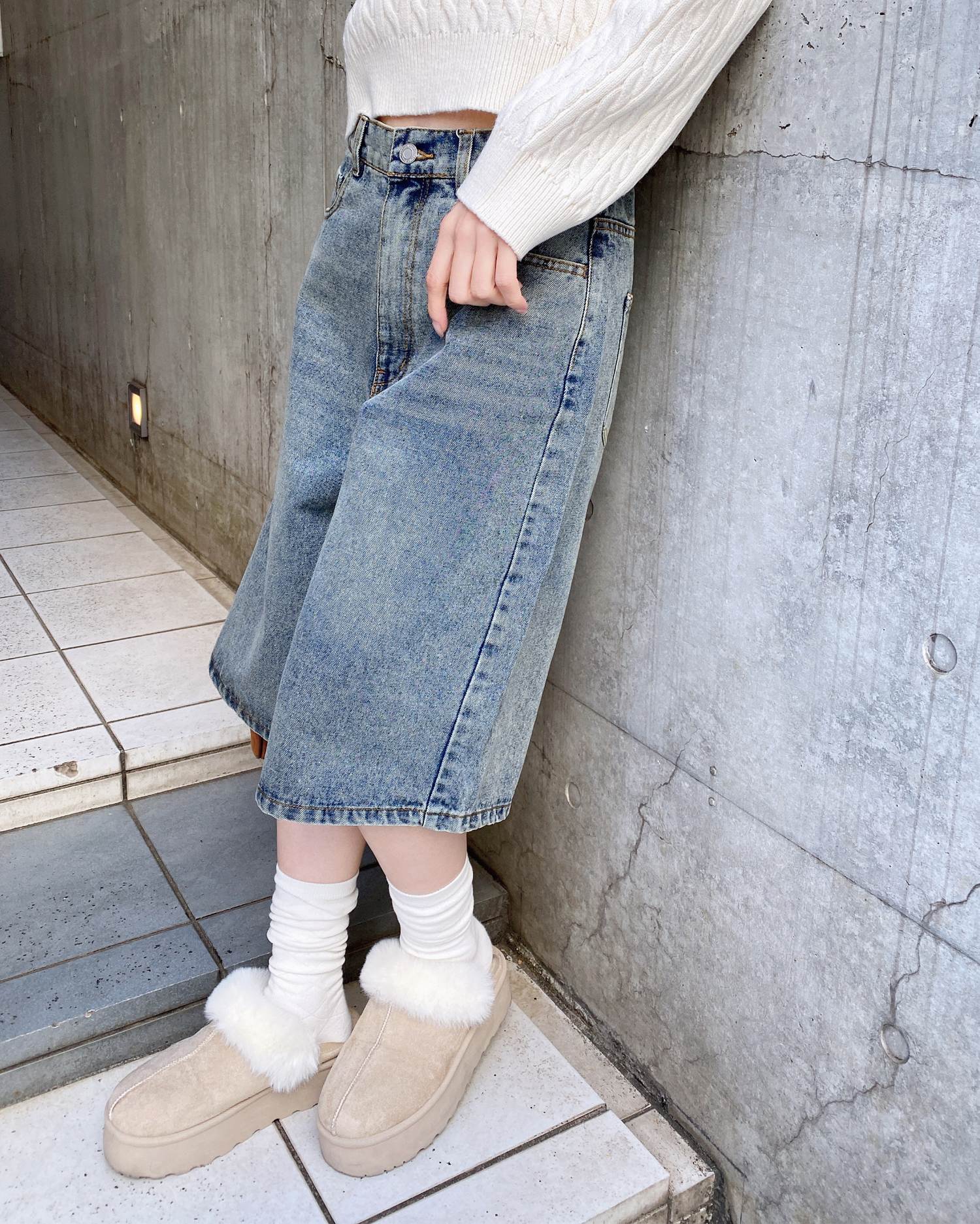 こなれ感のあるトレンドスタイルが完成するハーフ丈のデニムパンツ。