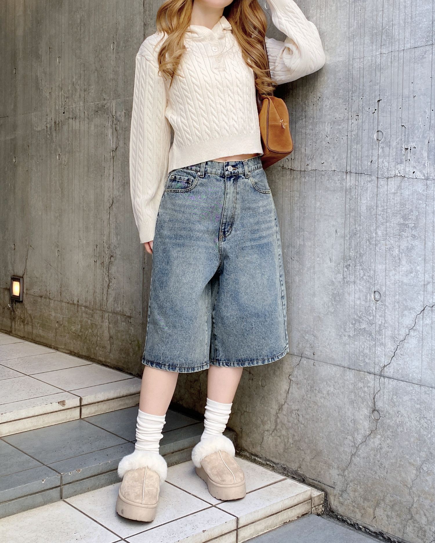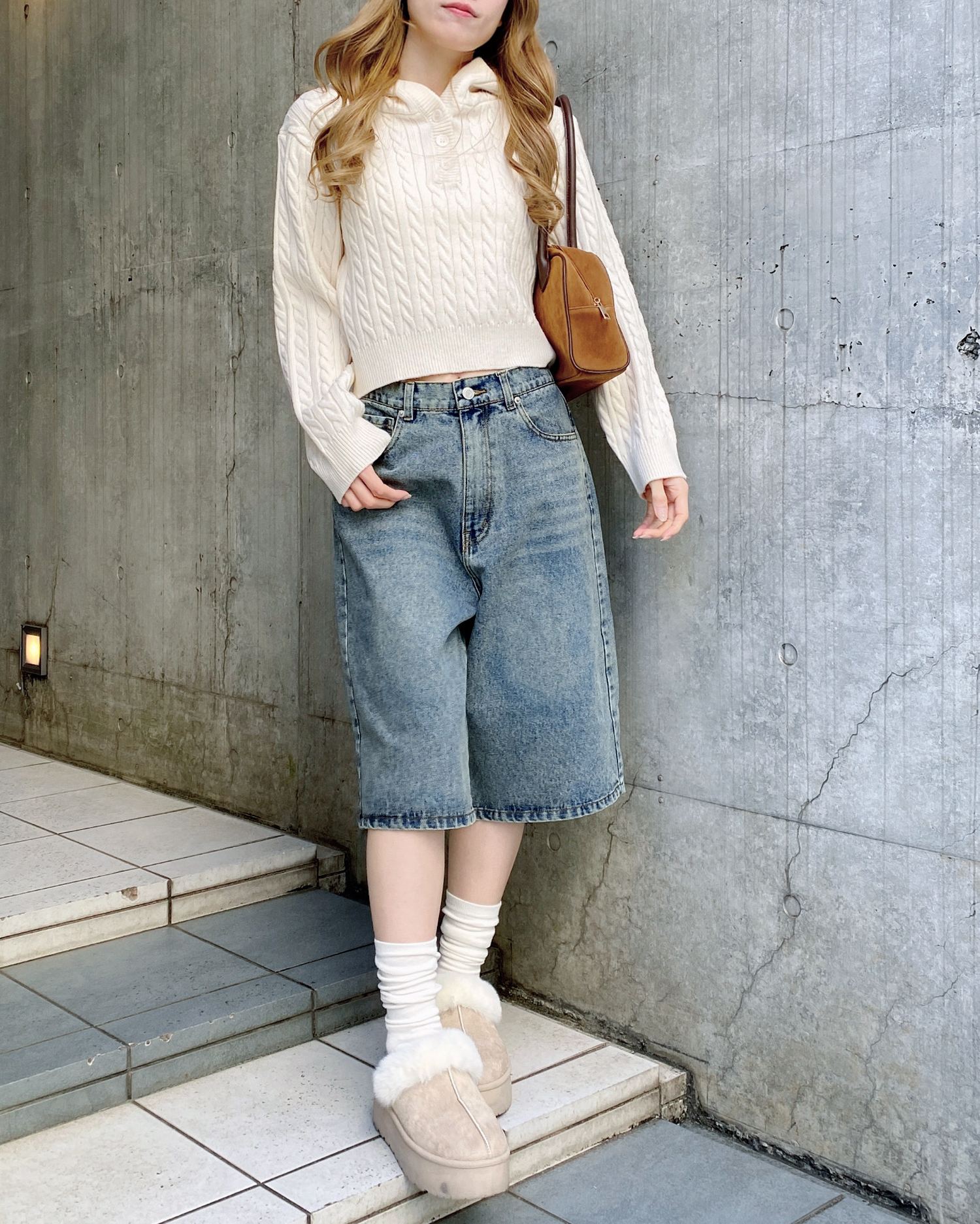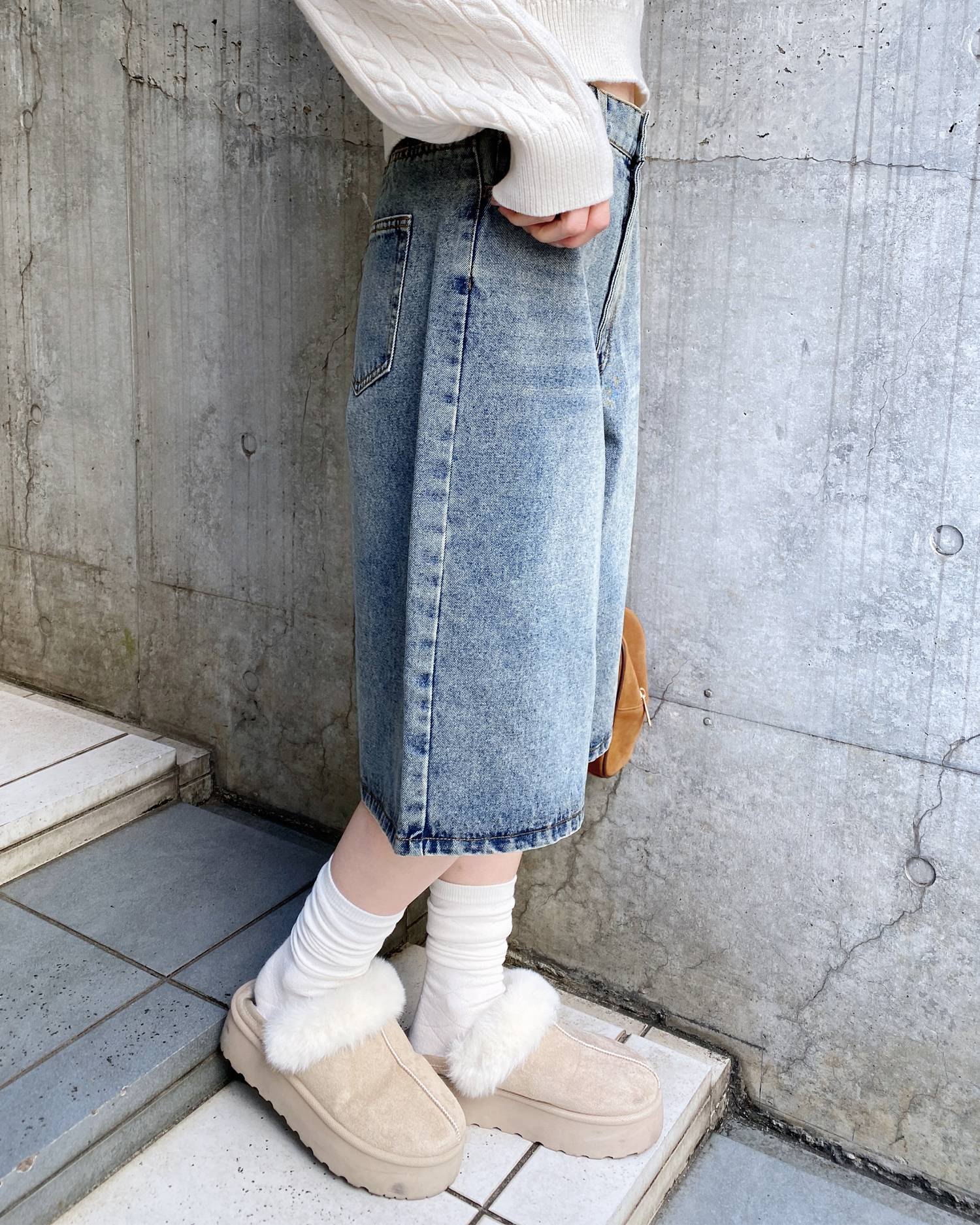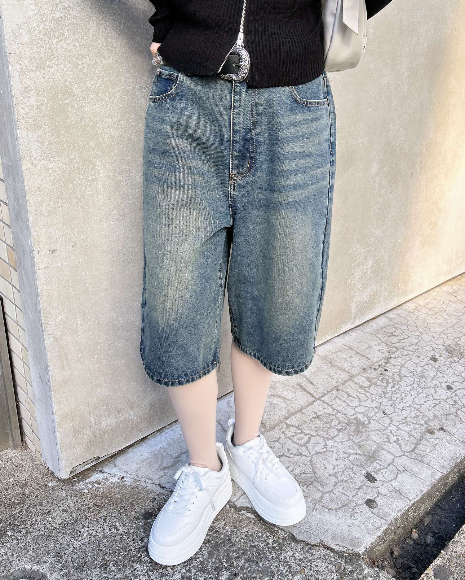 こなれ感のあるトレンドスタイルが完成するハーフ丈のデニムパンツ。