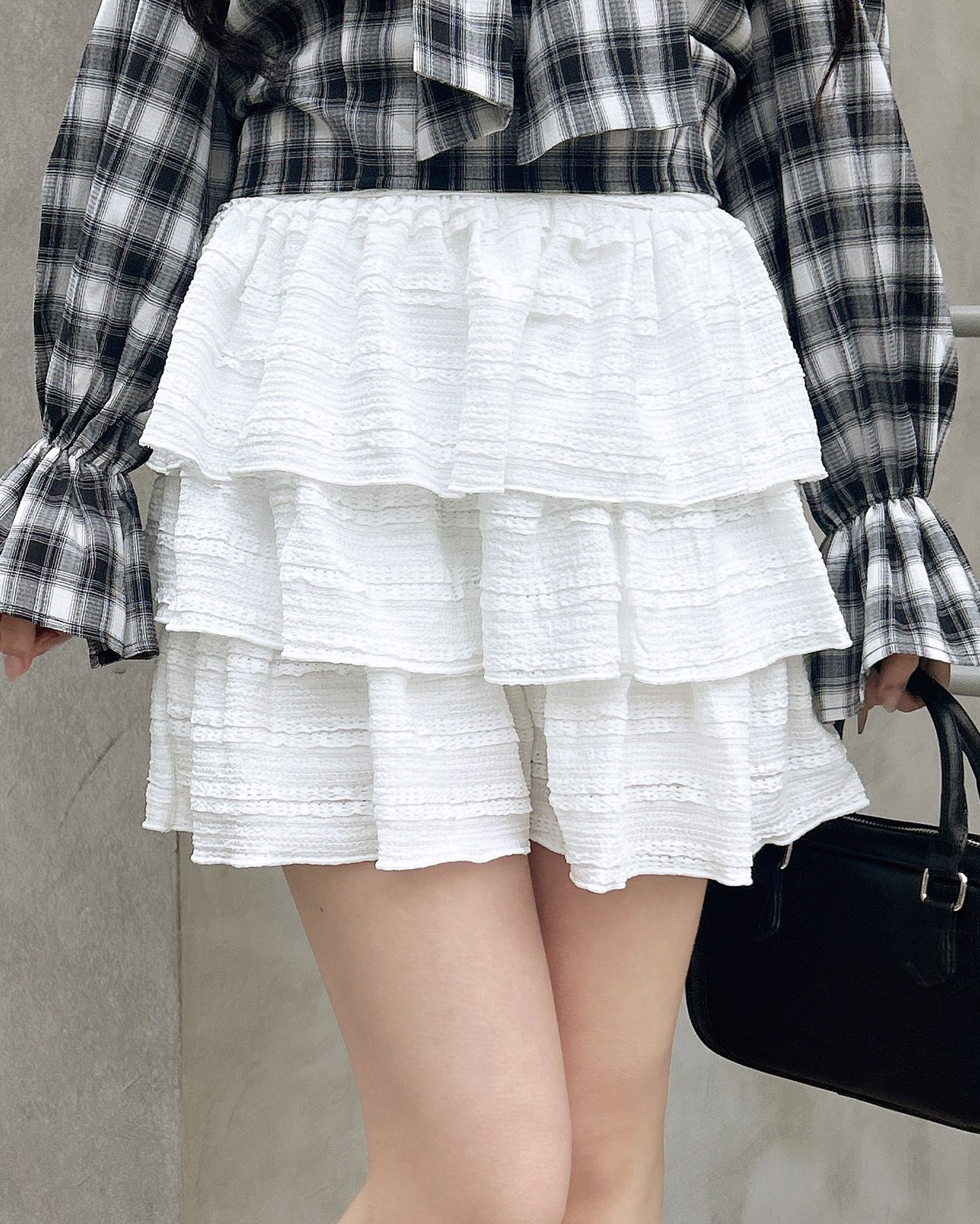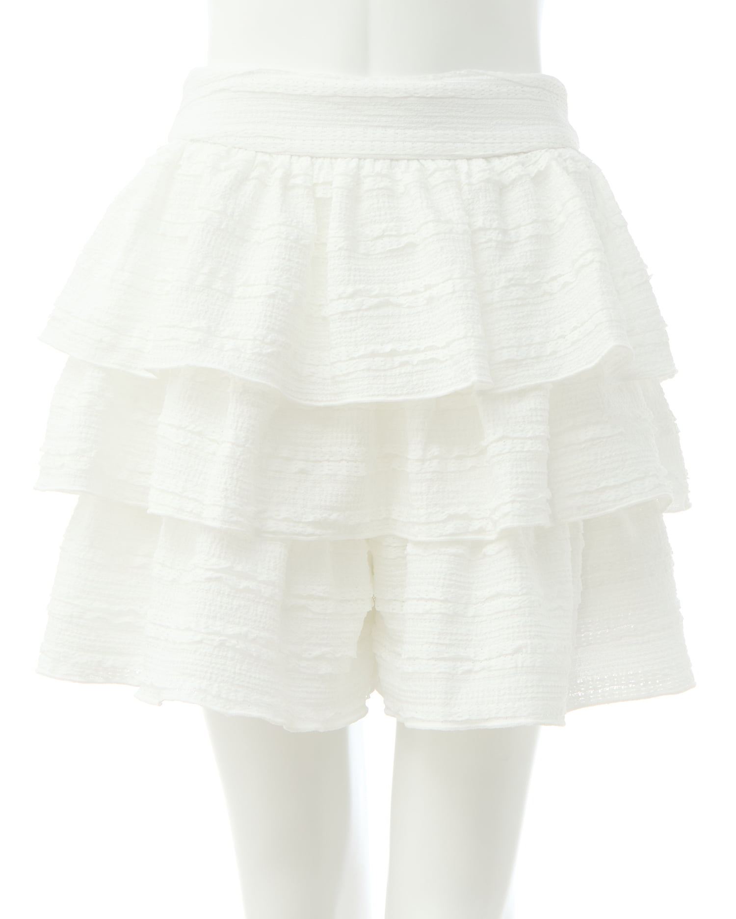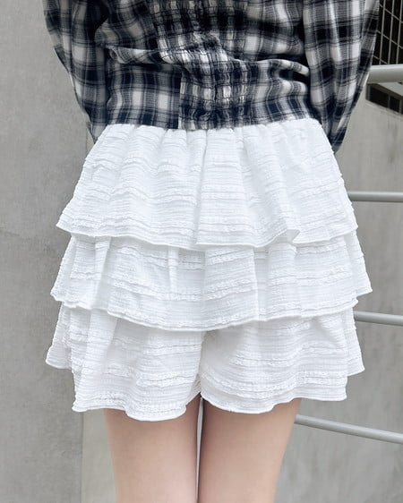 たっぷりフリルと丸みのあるフォルムがキュートなショートパンツ。