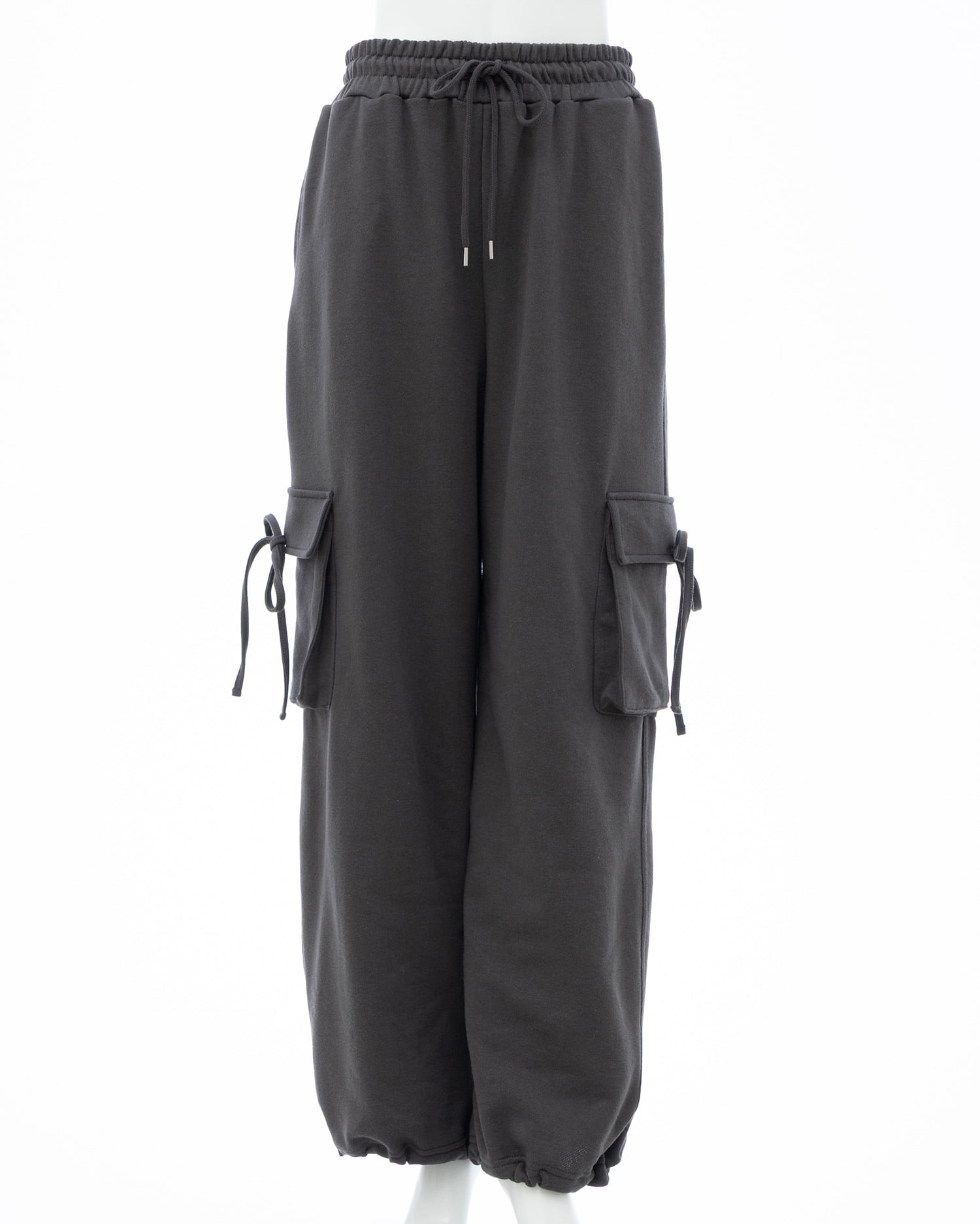 ワークテイストたっぷりのカーゴパンツをスウェット素材でトレンドライクに。