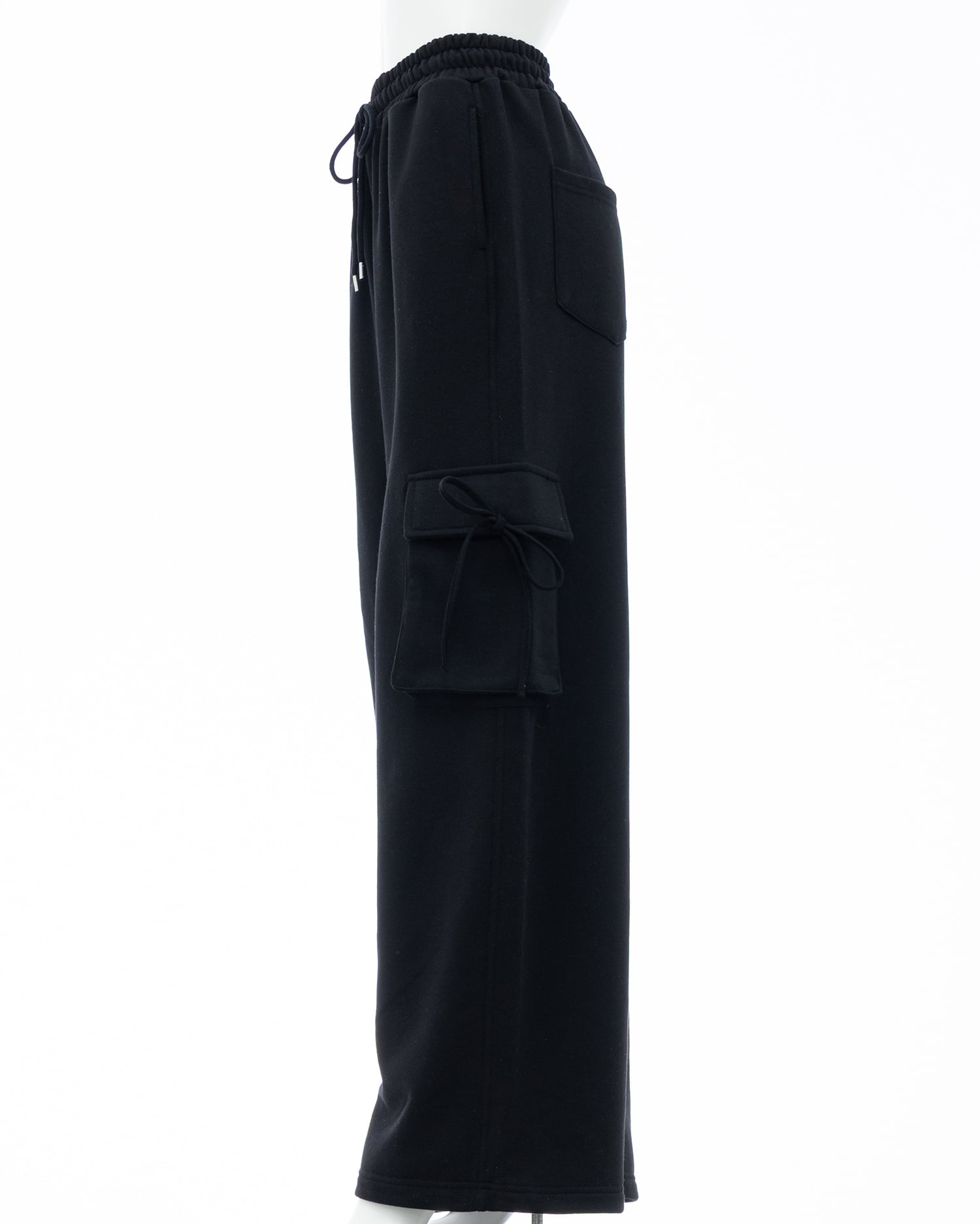 サイドの大きなポケットにあしらったリボンがキュートなアクセントになっています。