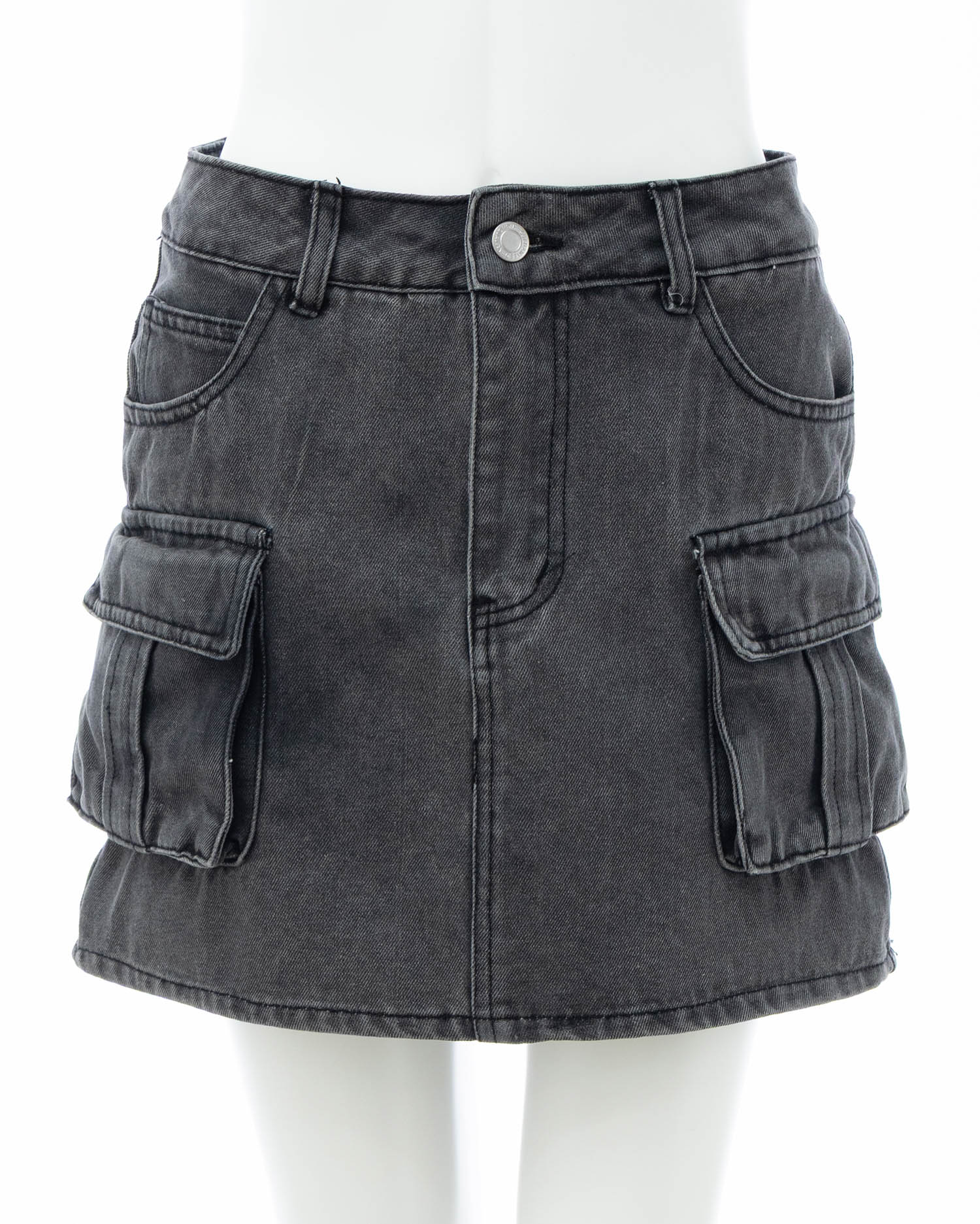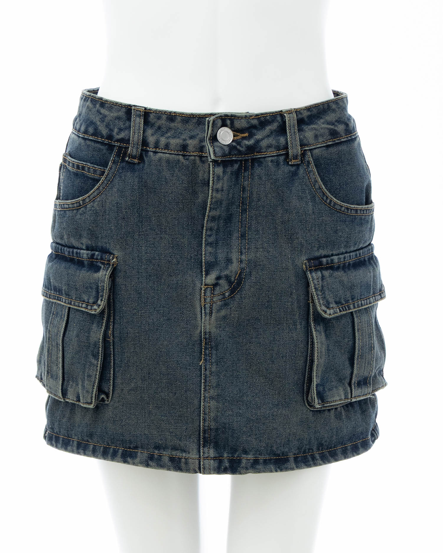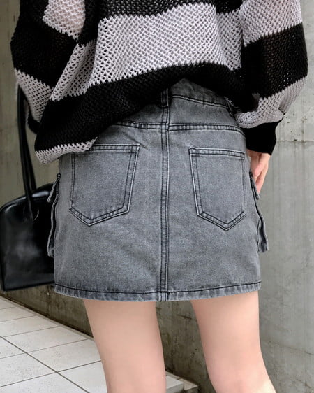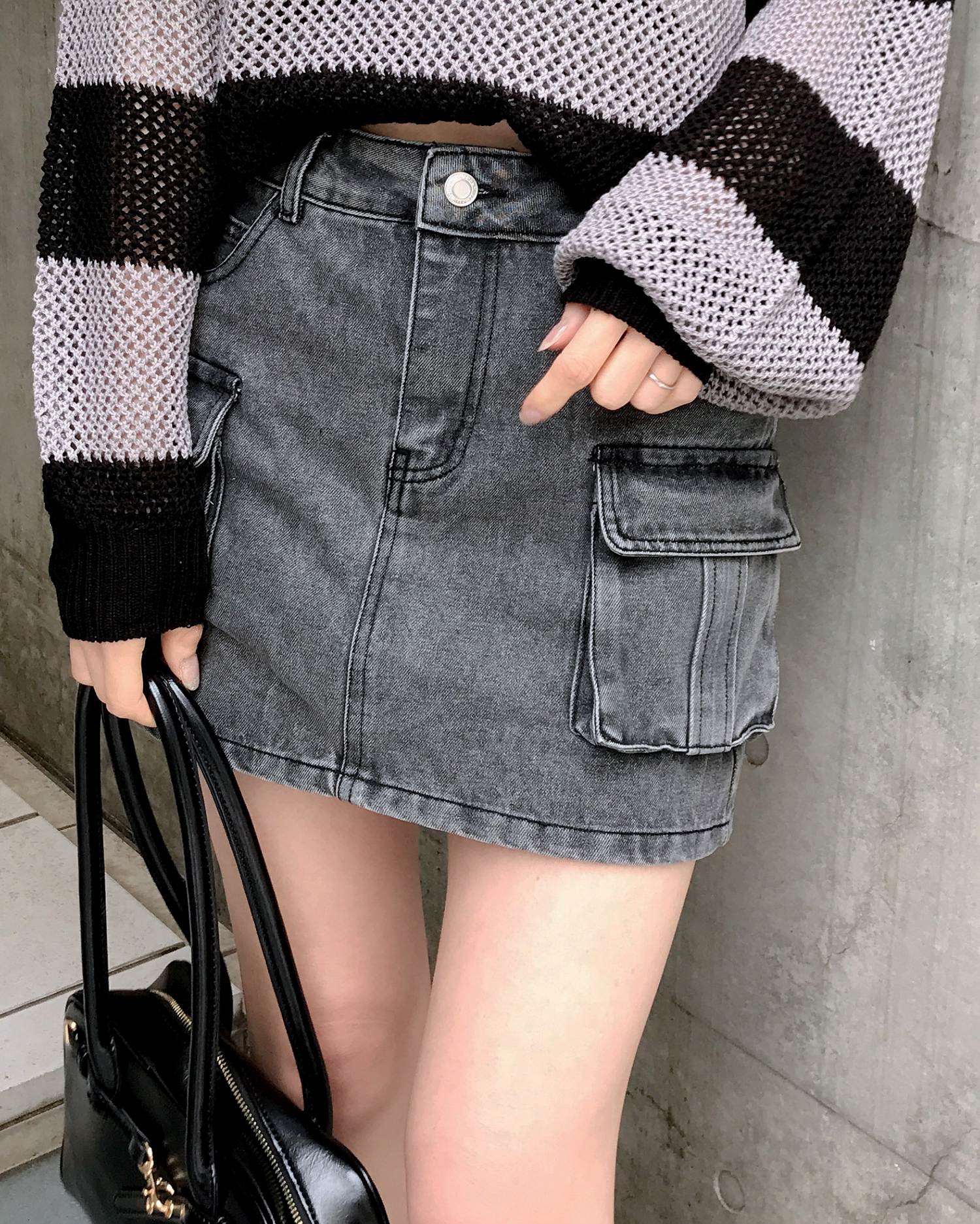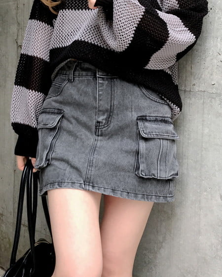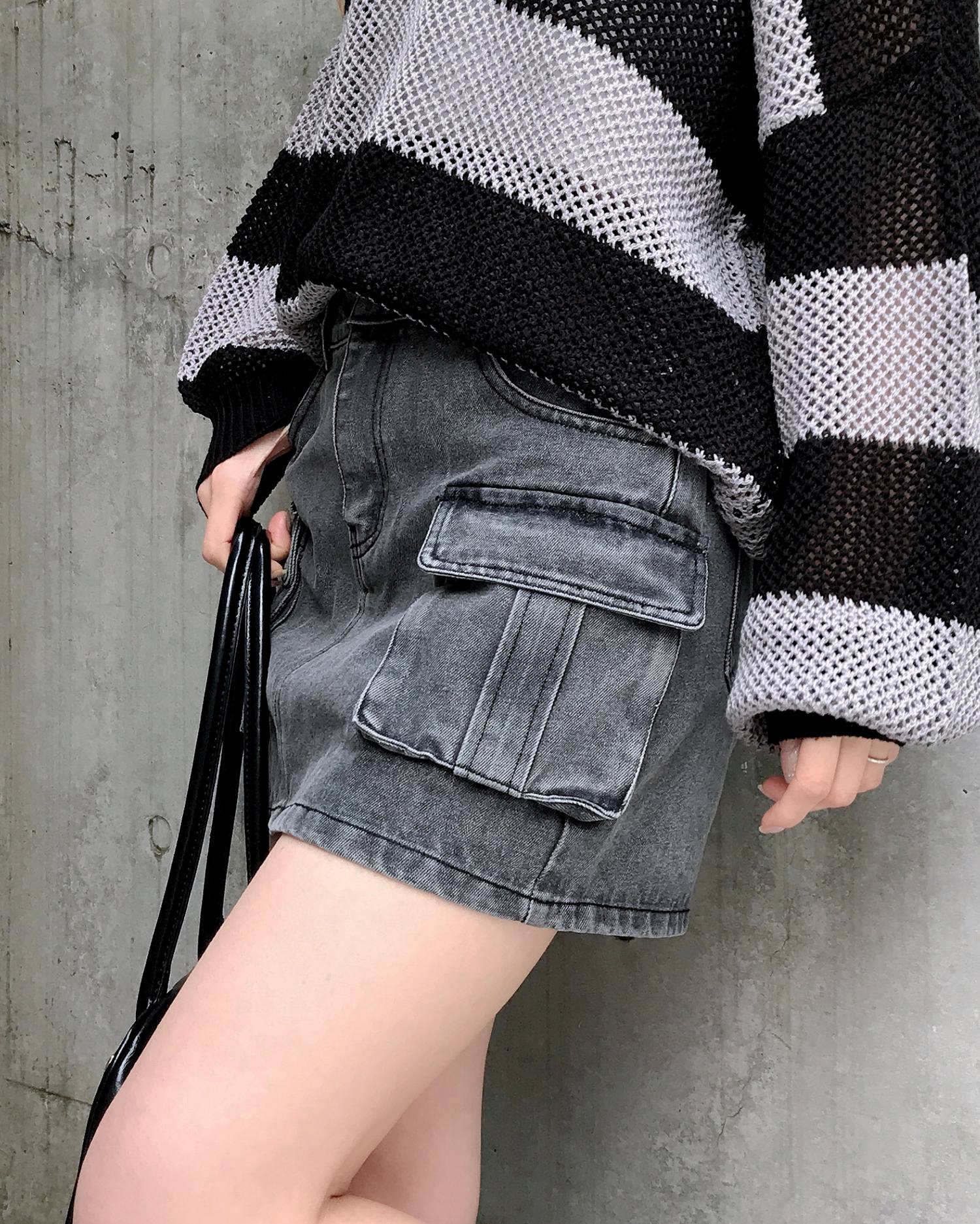 タイトなシルエットとミニ丈でスタイルアップを狙えるカーゴデザインのスカパン。