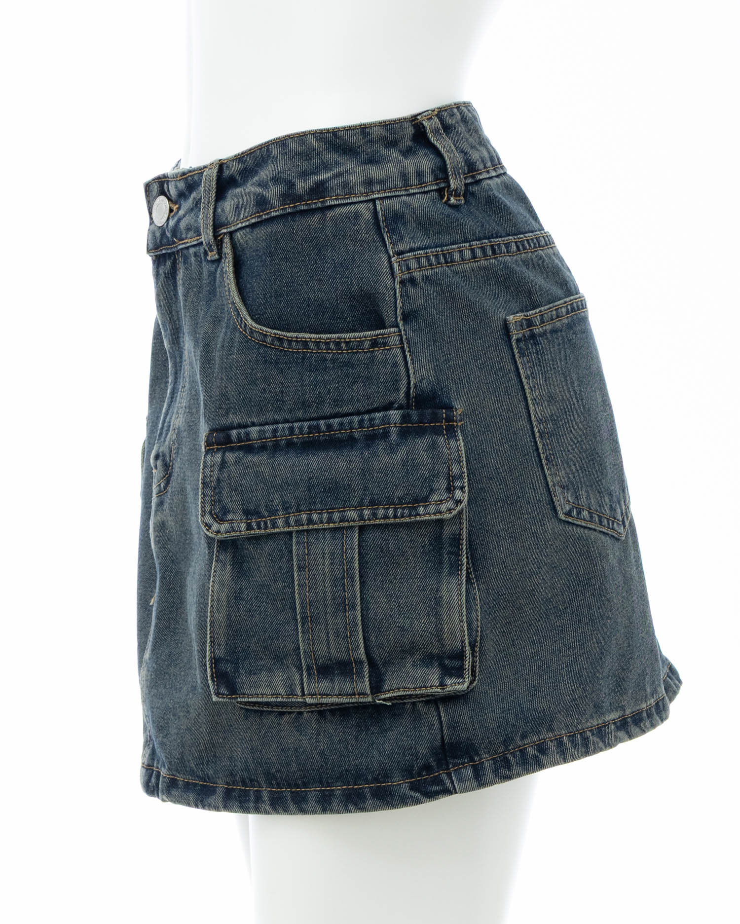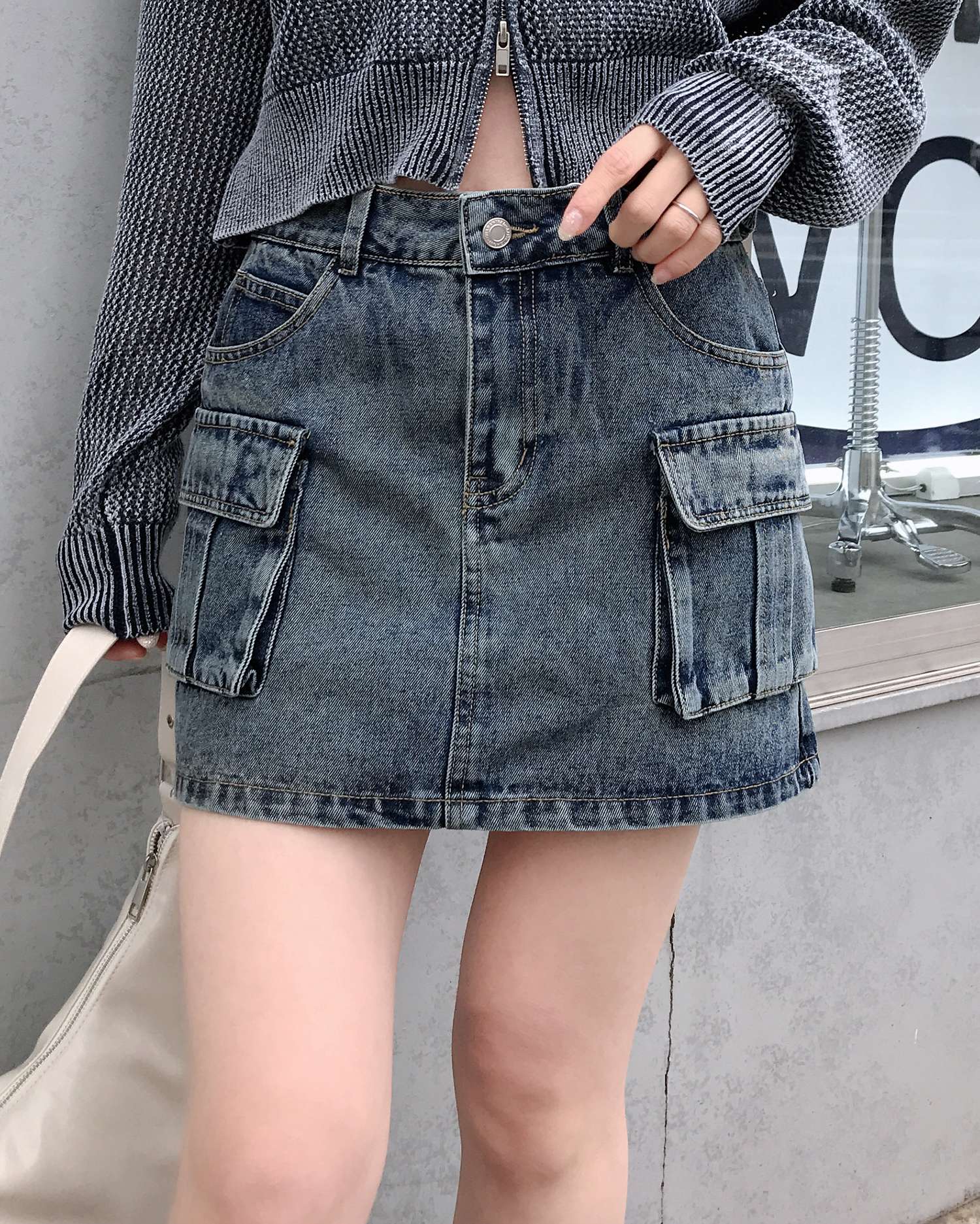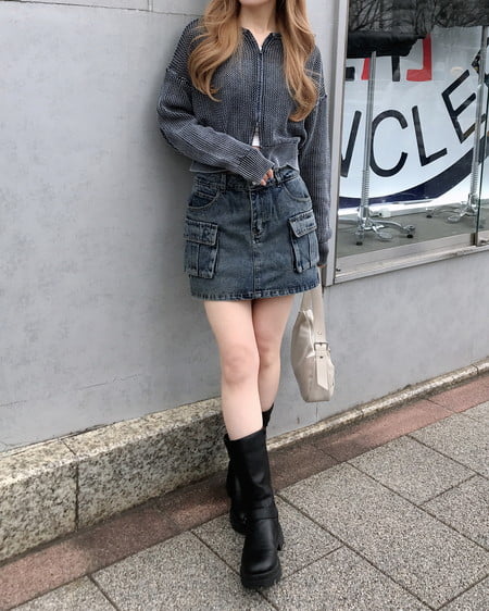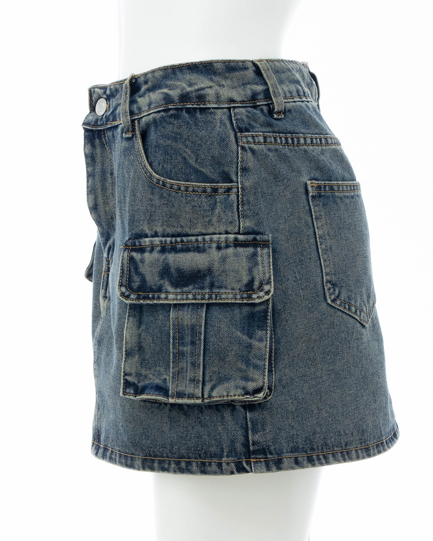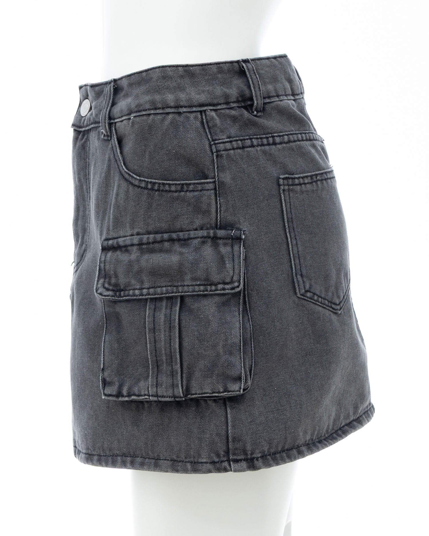 タイトなシルエットとミニ丈でスタイルアップを狙えるカーゴデザインのスカパン。