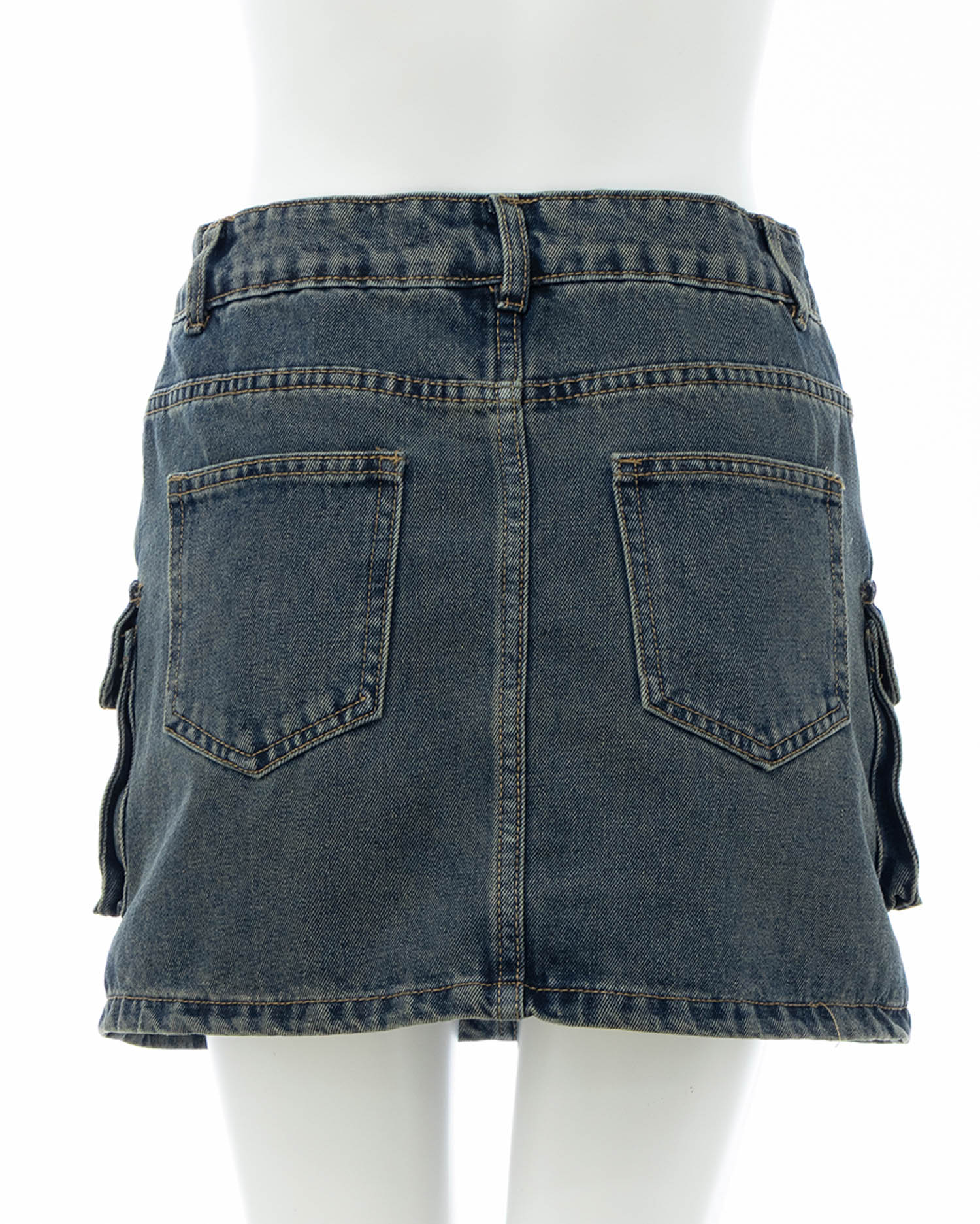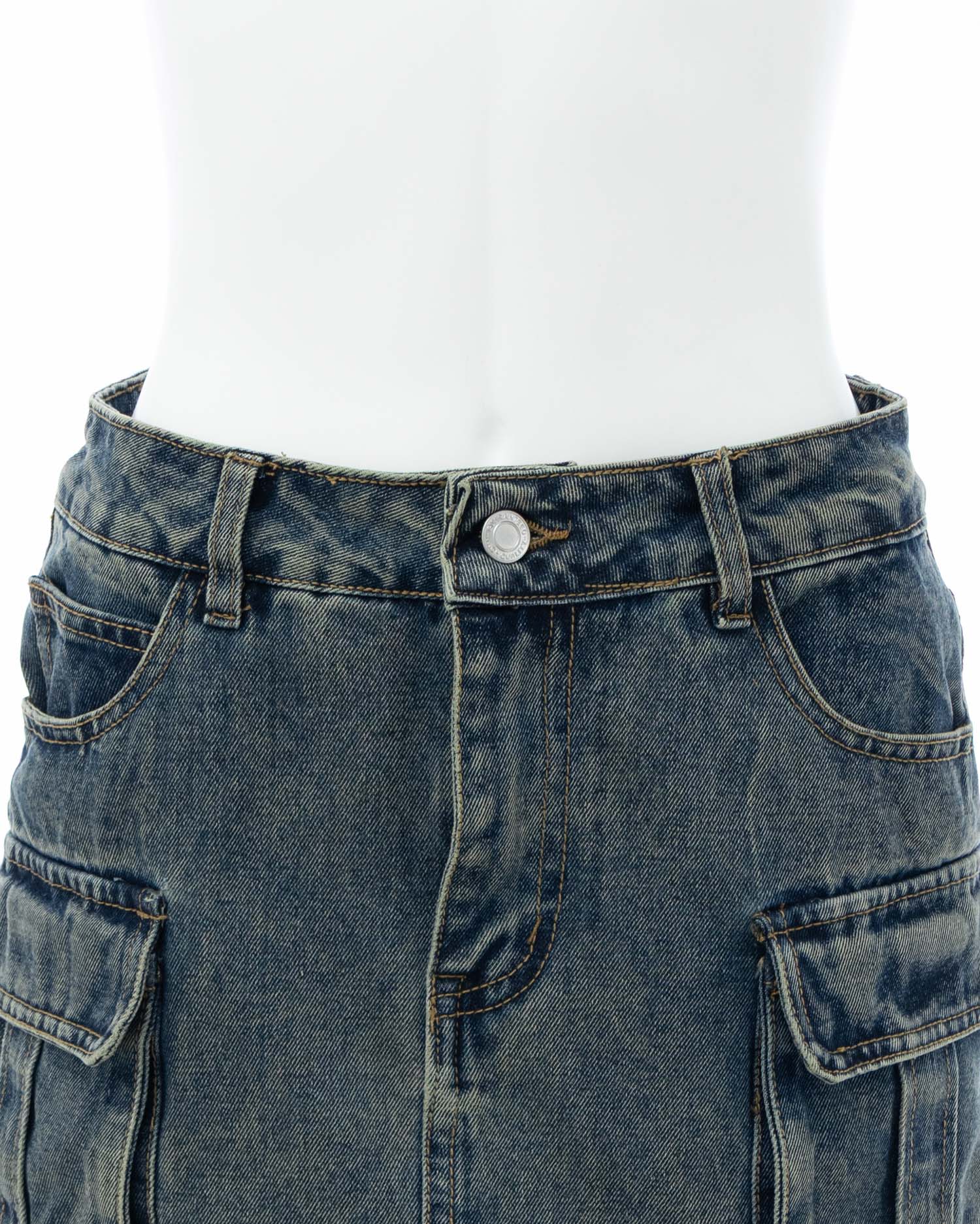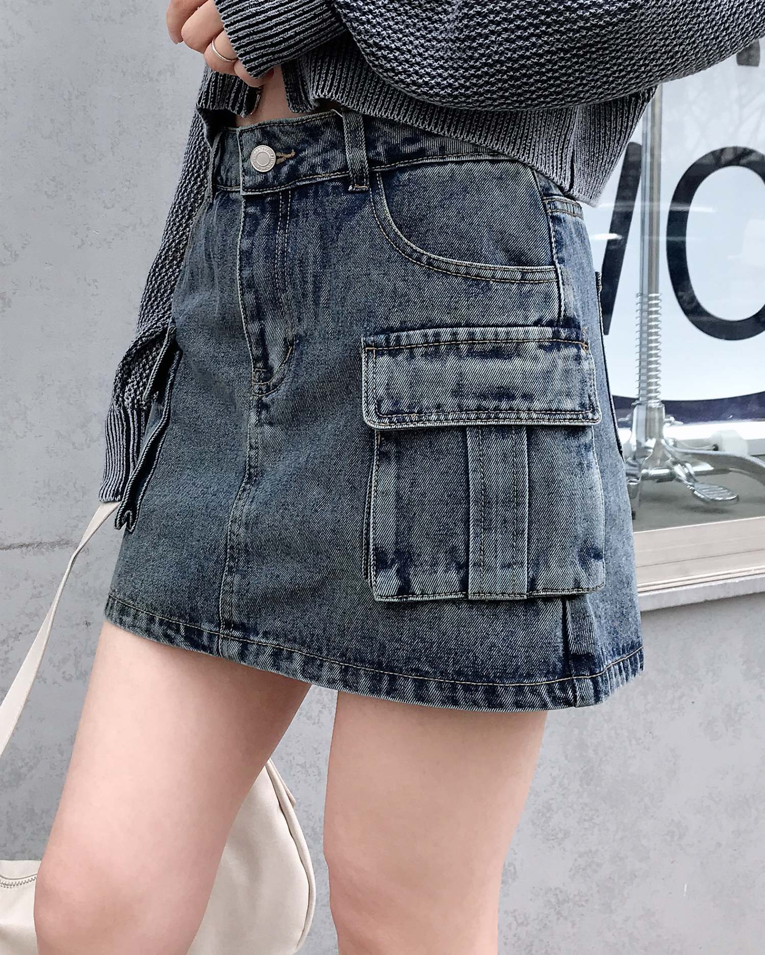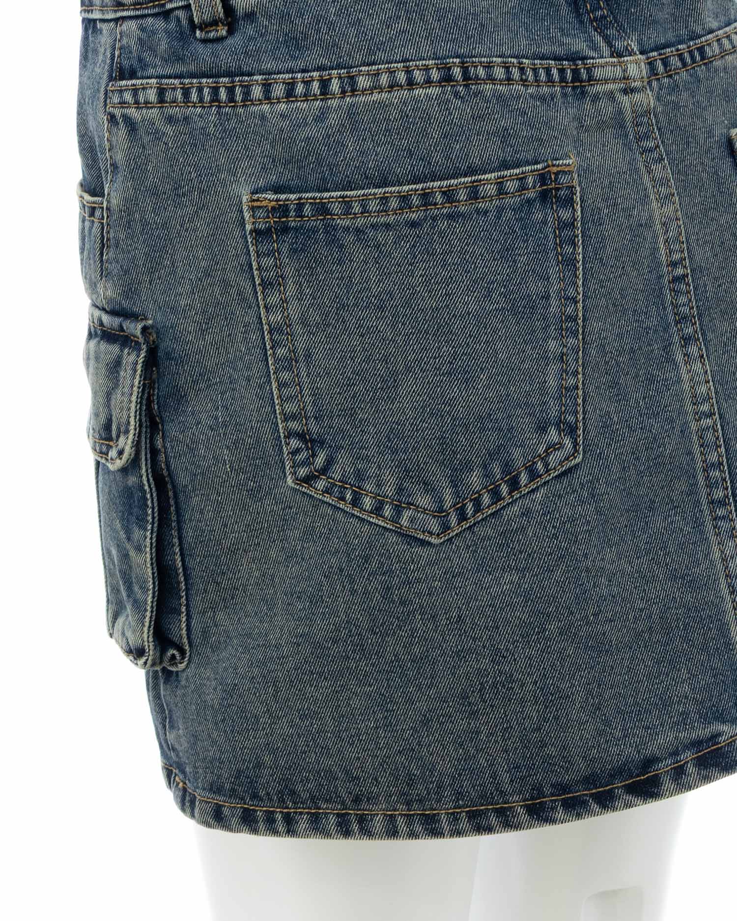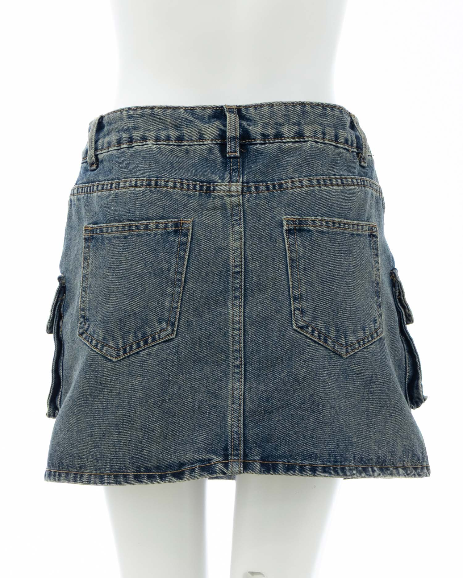 タイトなシルエットとミニ丈でスタイルアップを狙えるカーゴデザインのスカパン。