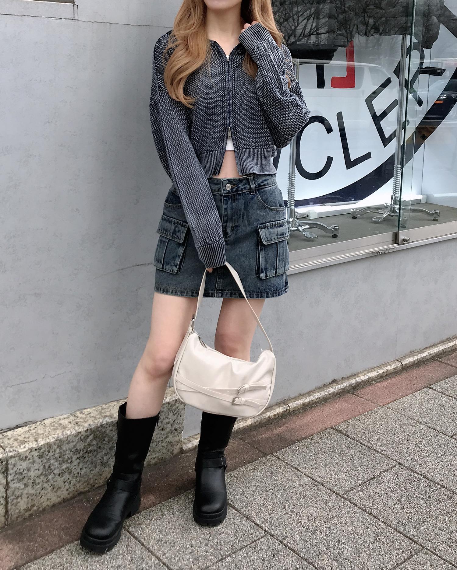 ヴィンテージ感のある加工を施したデニム素材でトレンドコーデが完成します。
