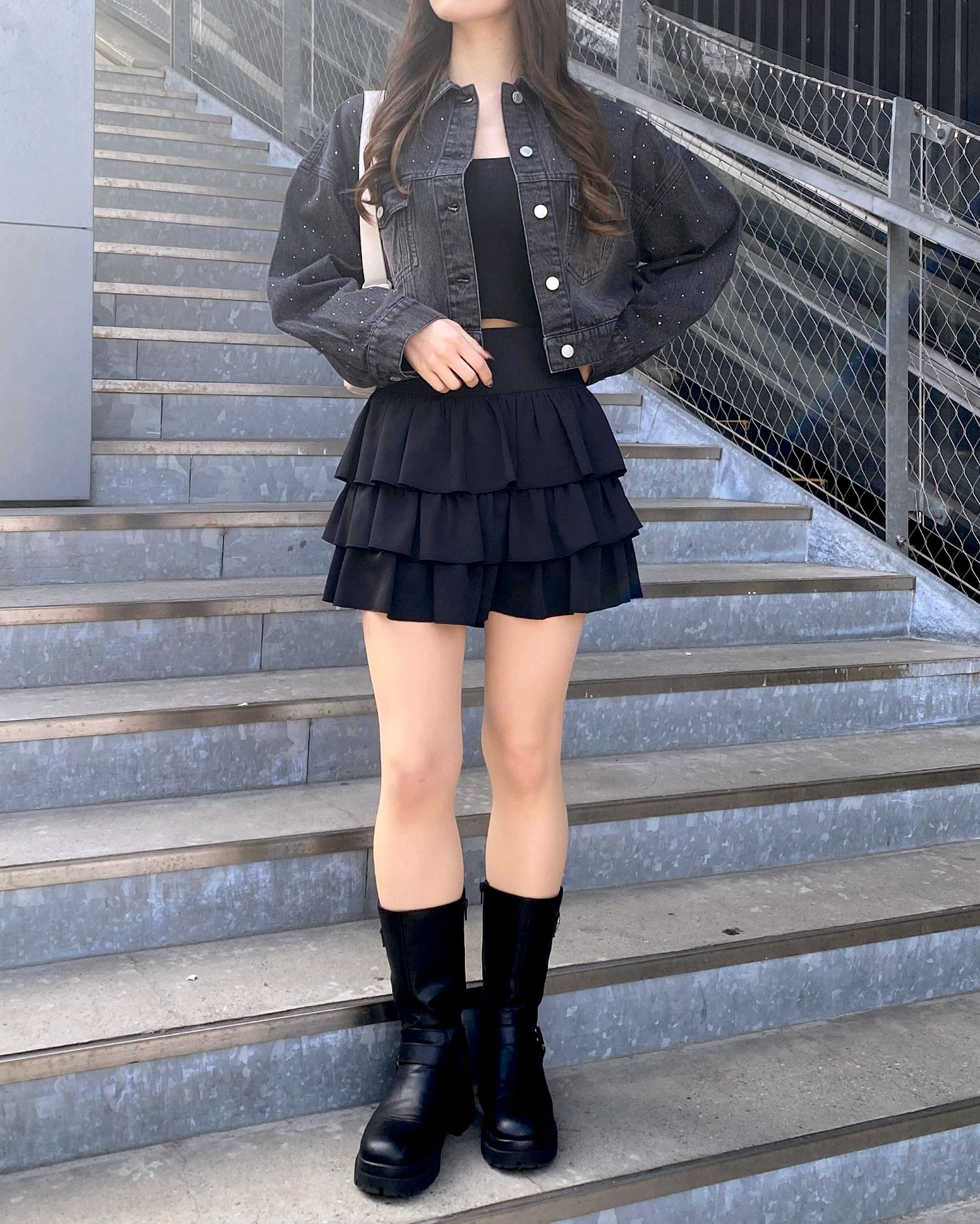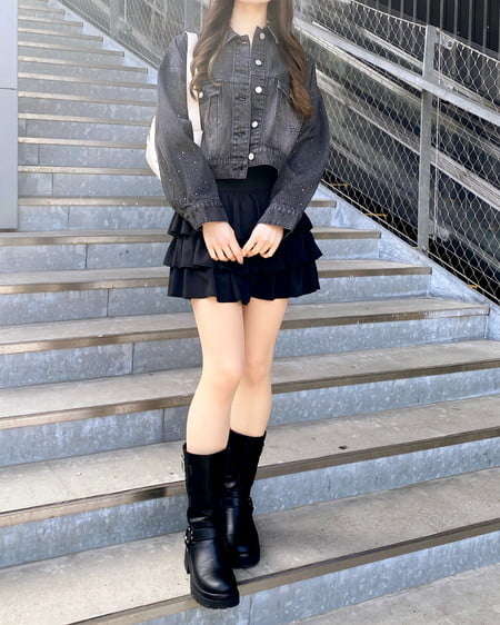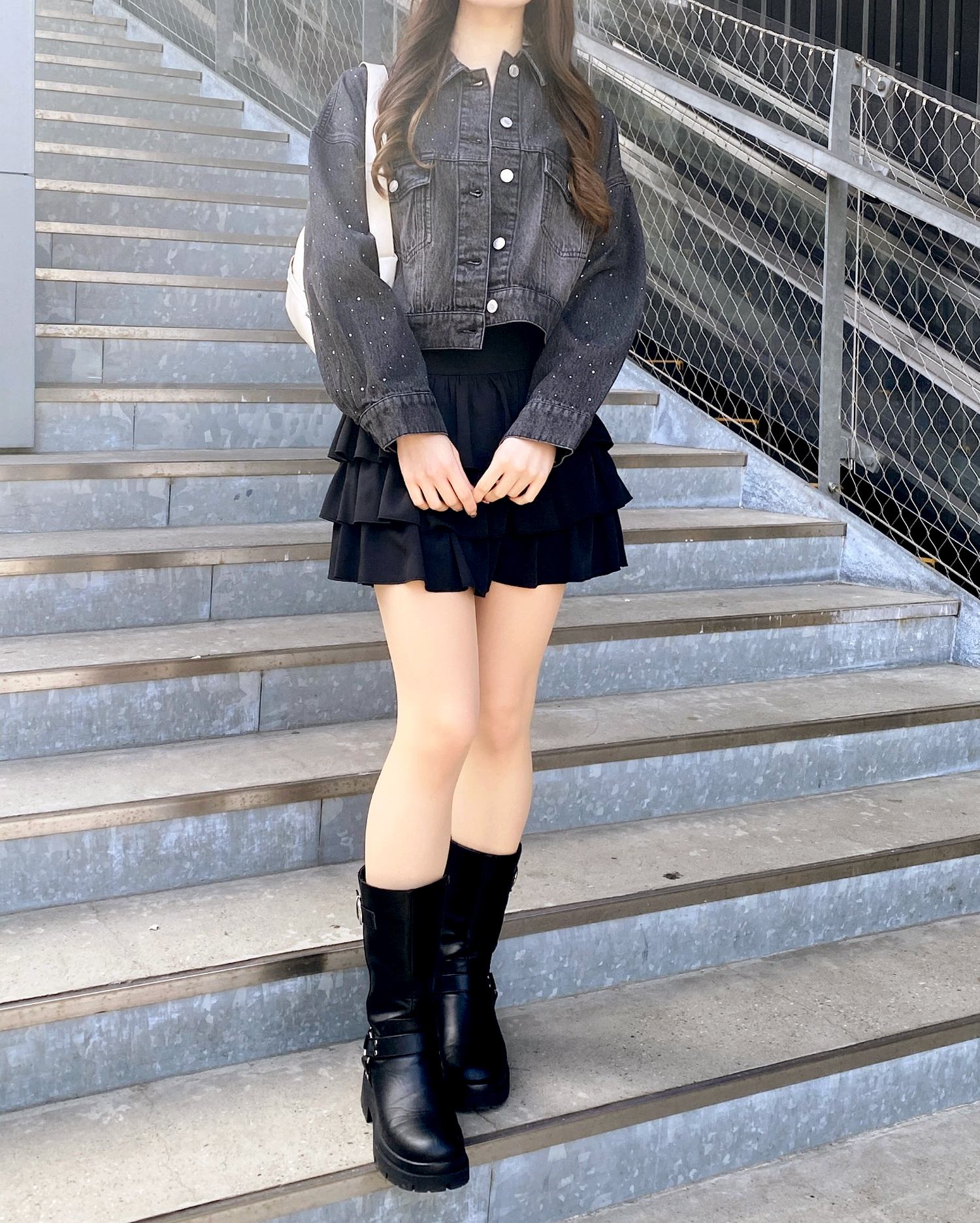 短め丈なので着こなしにトレンド感をプラスしてくれます。