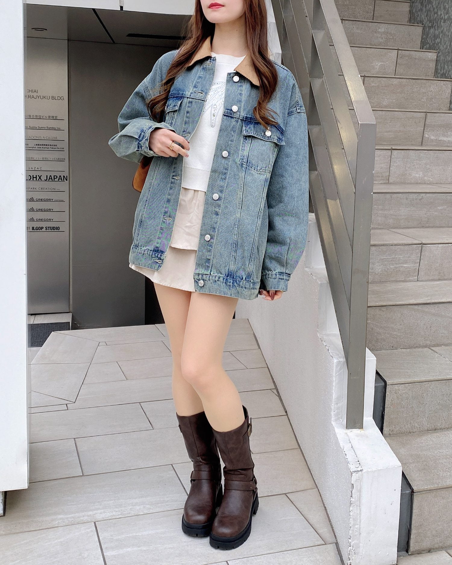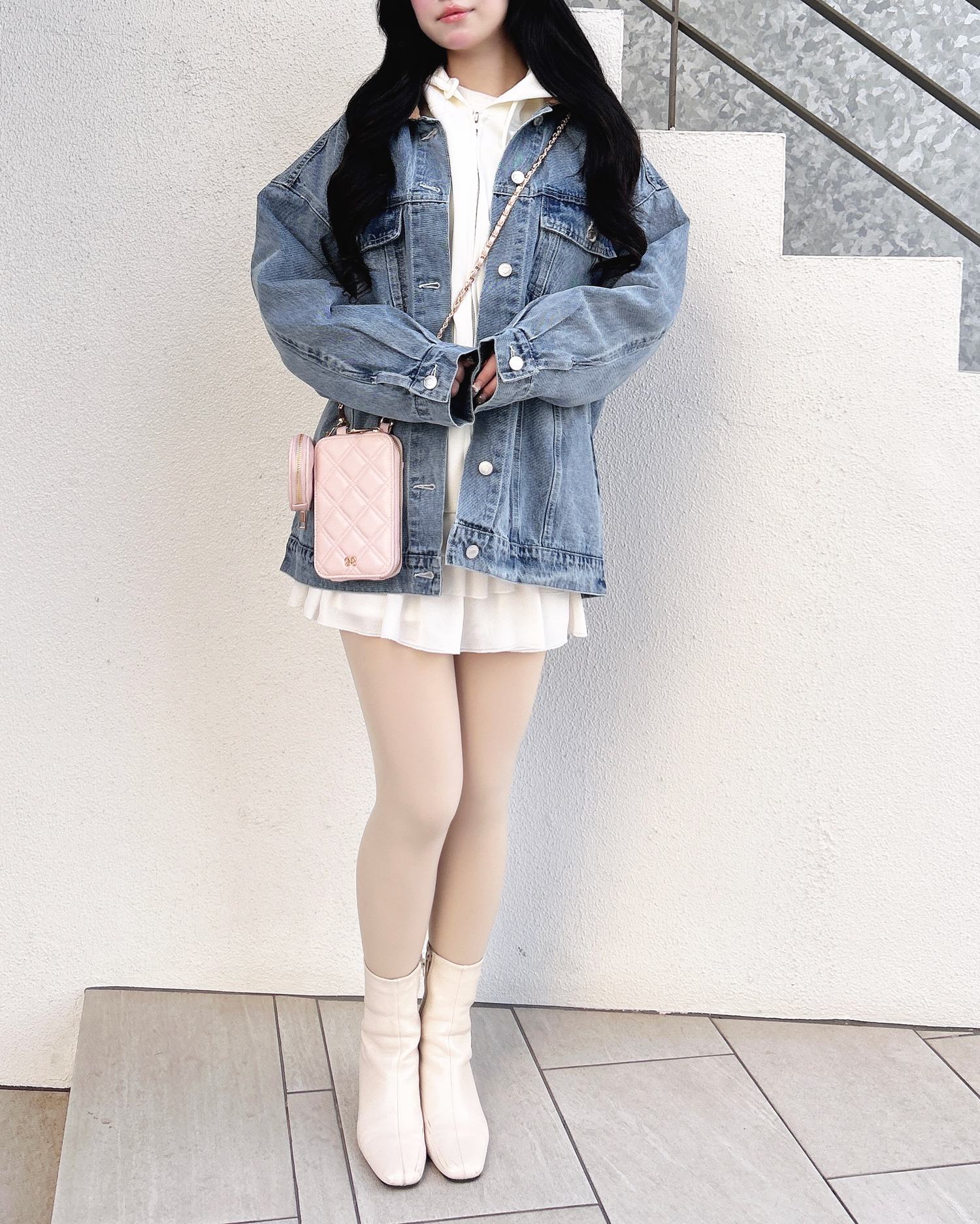 ボトムスはミニ丈を合わせてカジュアルガーリーなコーデに♡