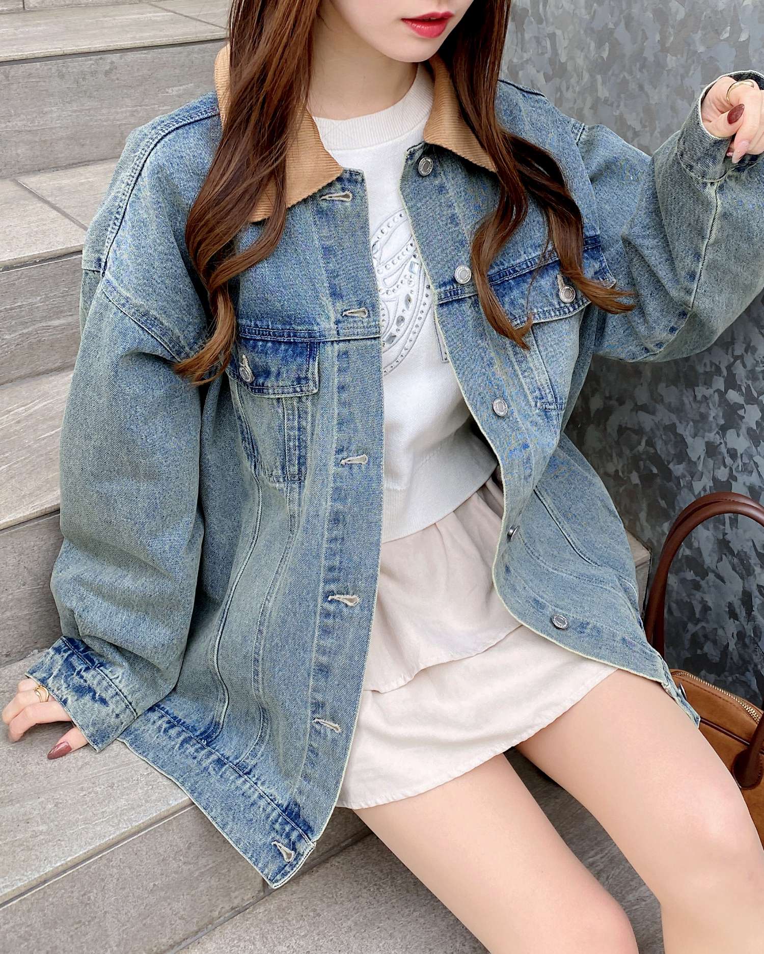 異素材の襟がコーデのアクセントになります♪