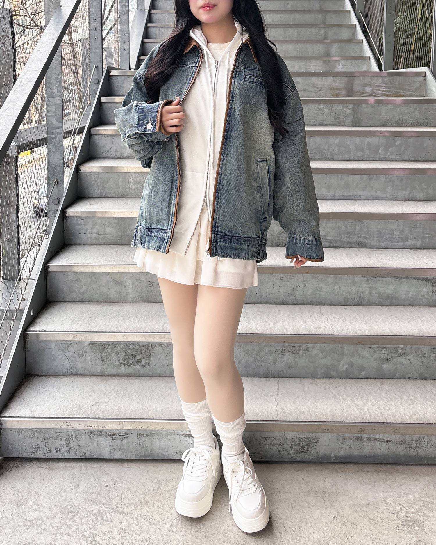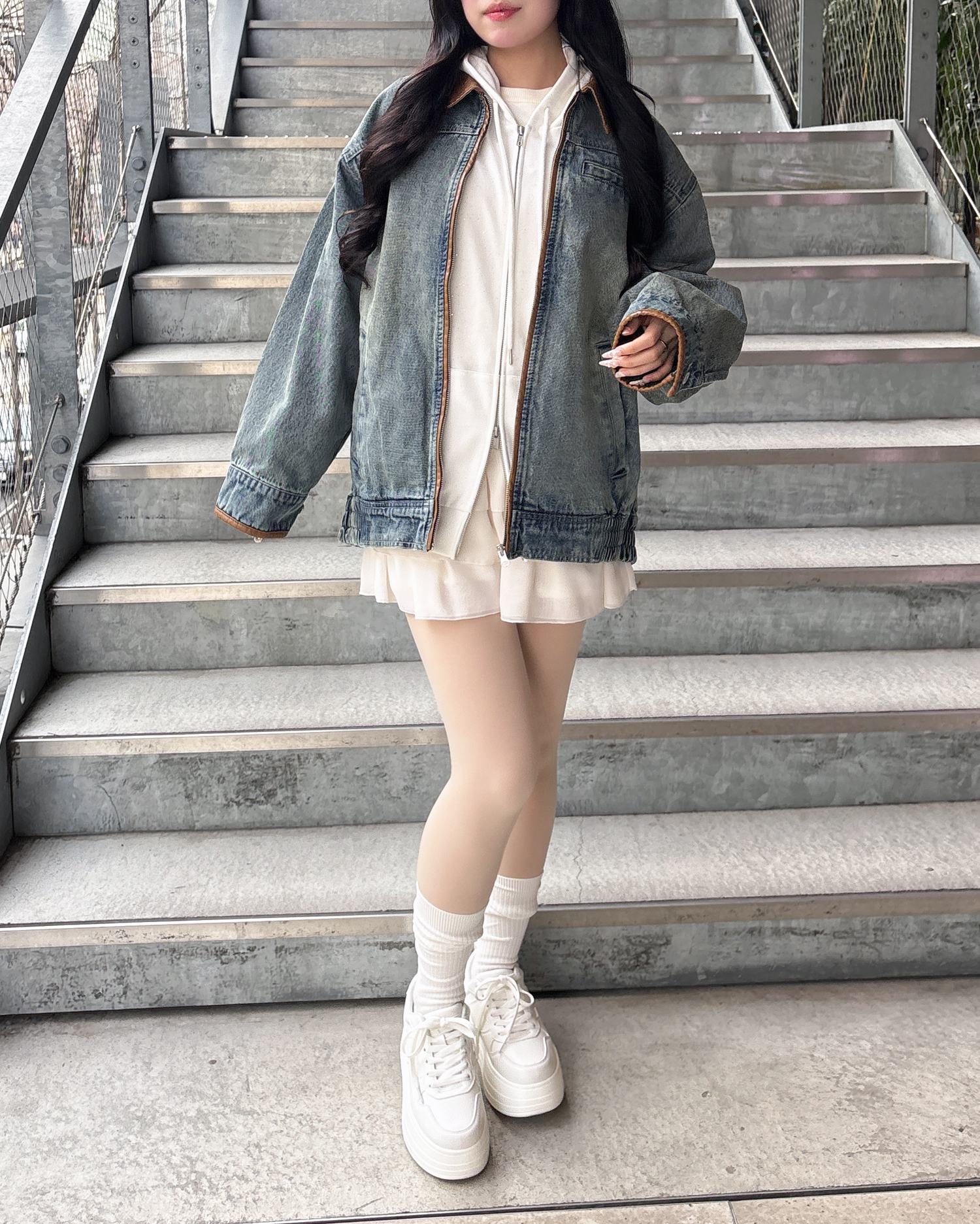 オーバーサイズなので厚手のニットやスウェットの上にも羽織れます。