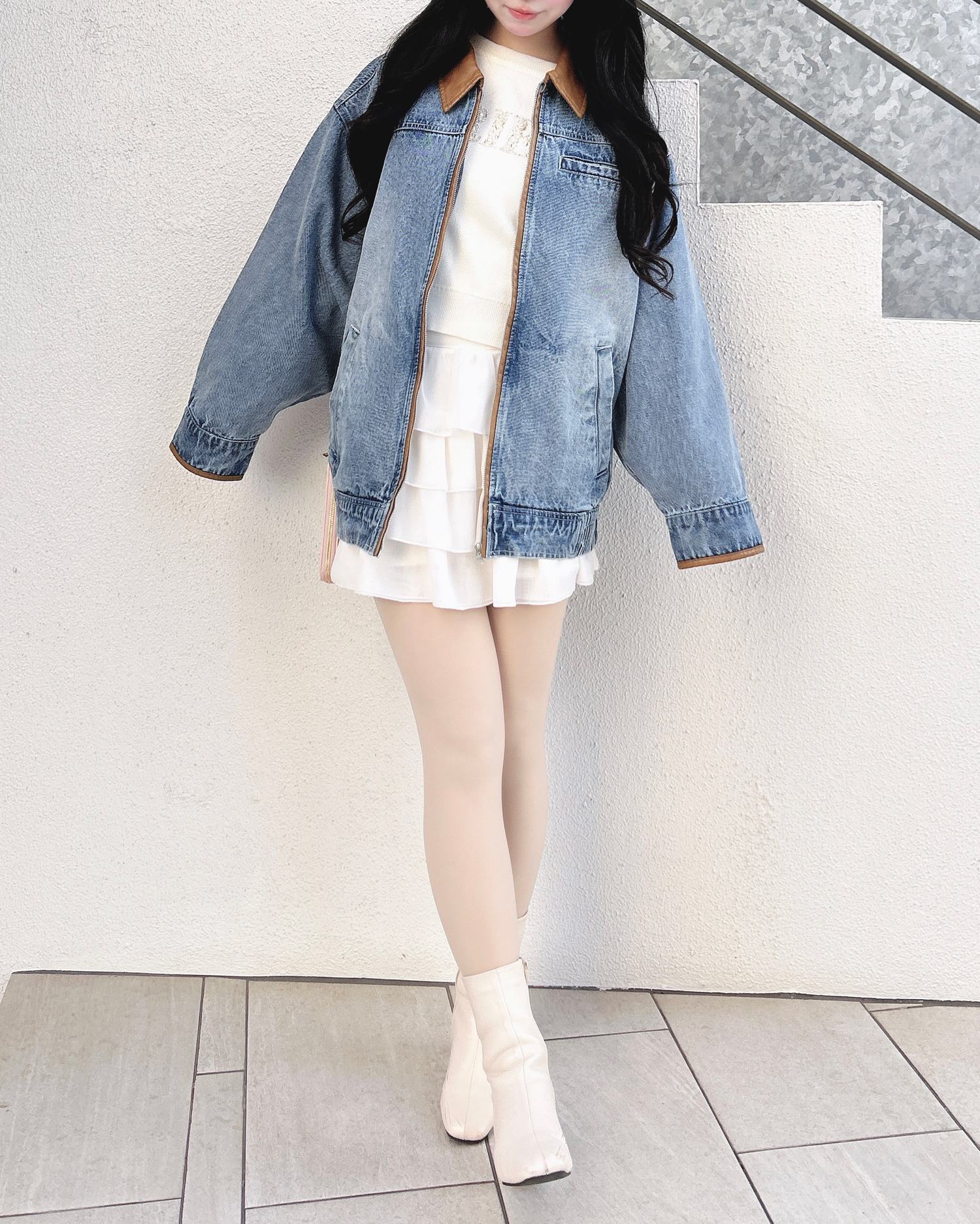 トレンドの配色デザインがポイントのデニムジャケットです。