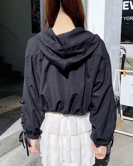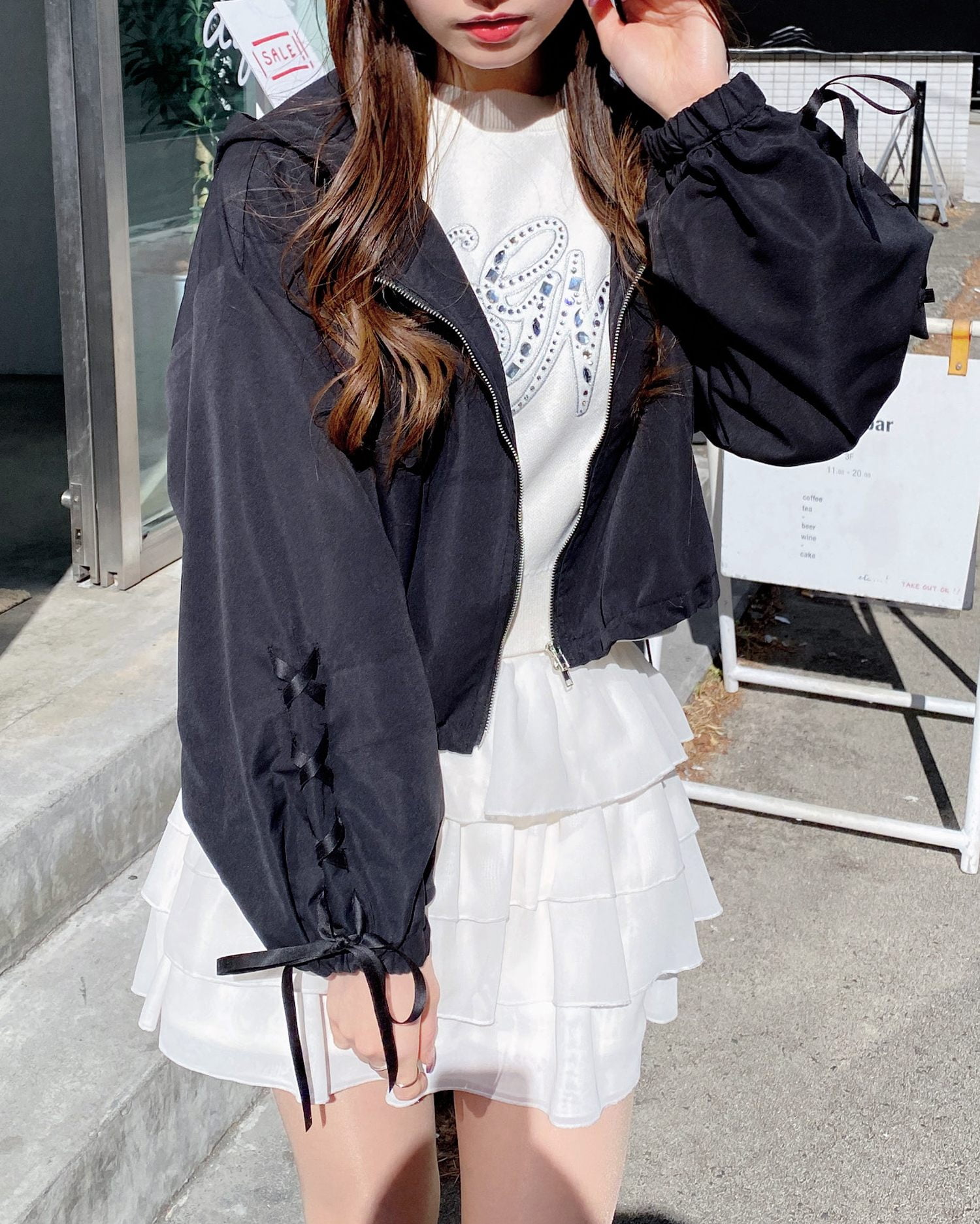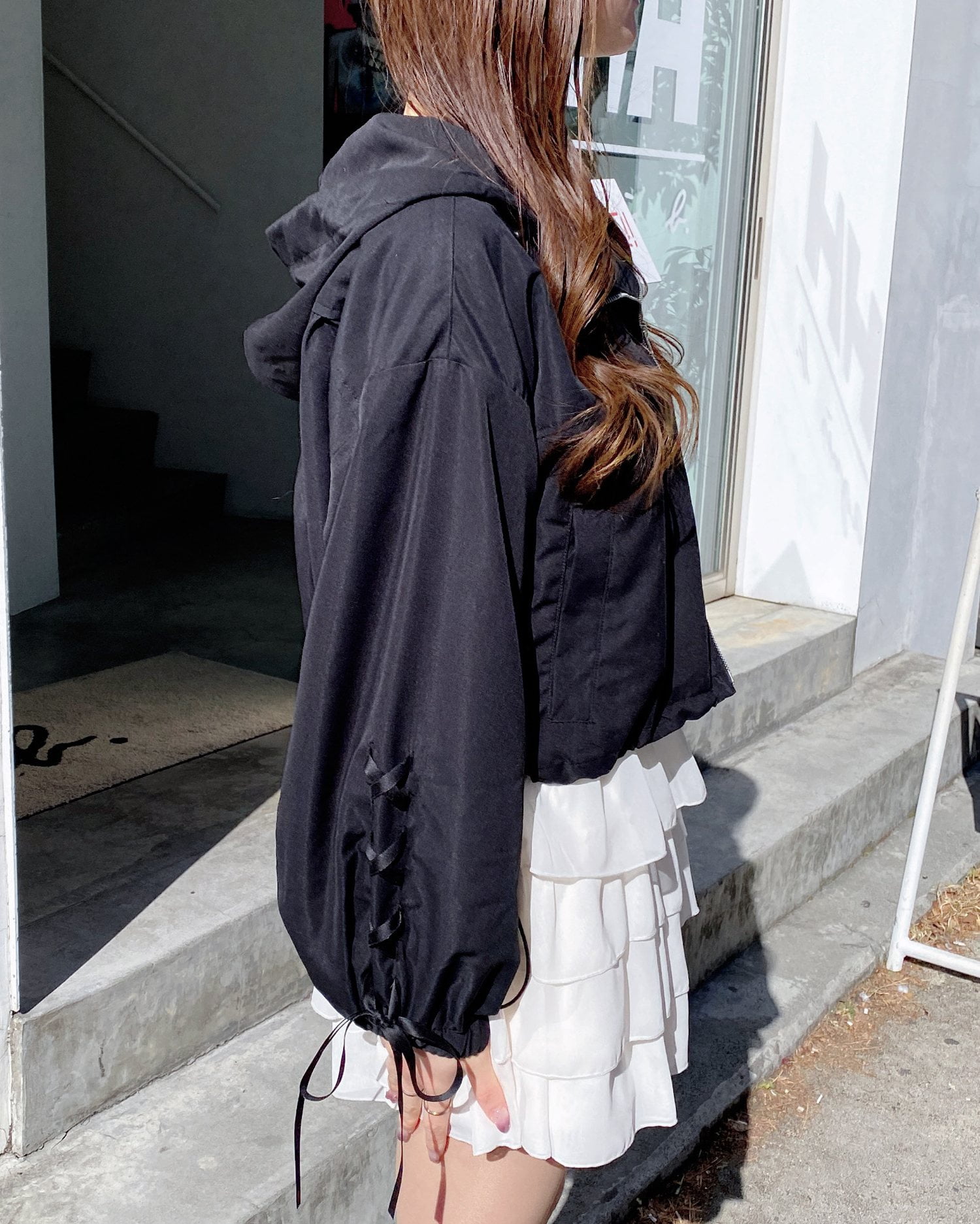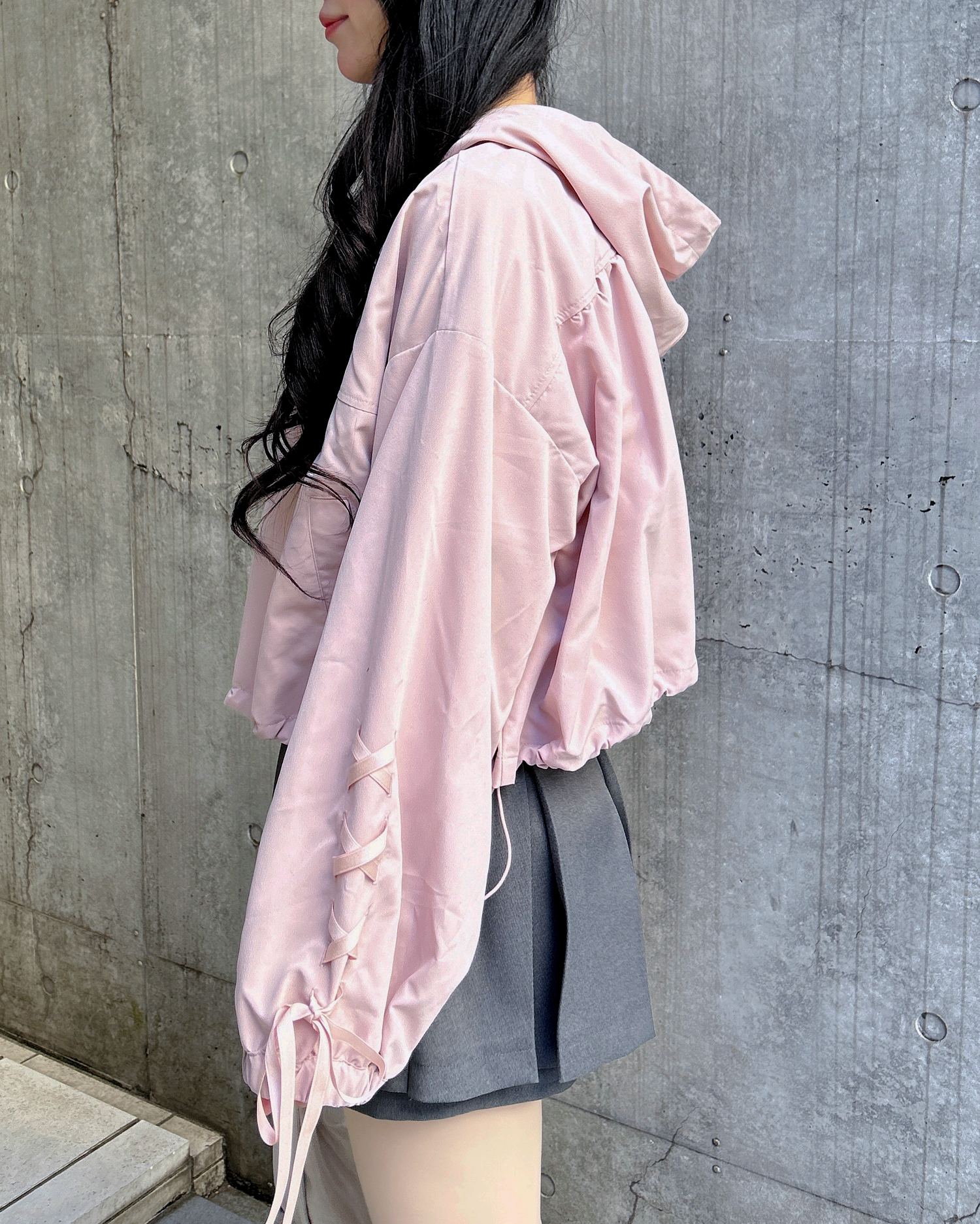 【袖のレースアップがかわいい♡クロップド丈マウンテンパーカー】