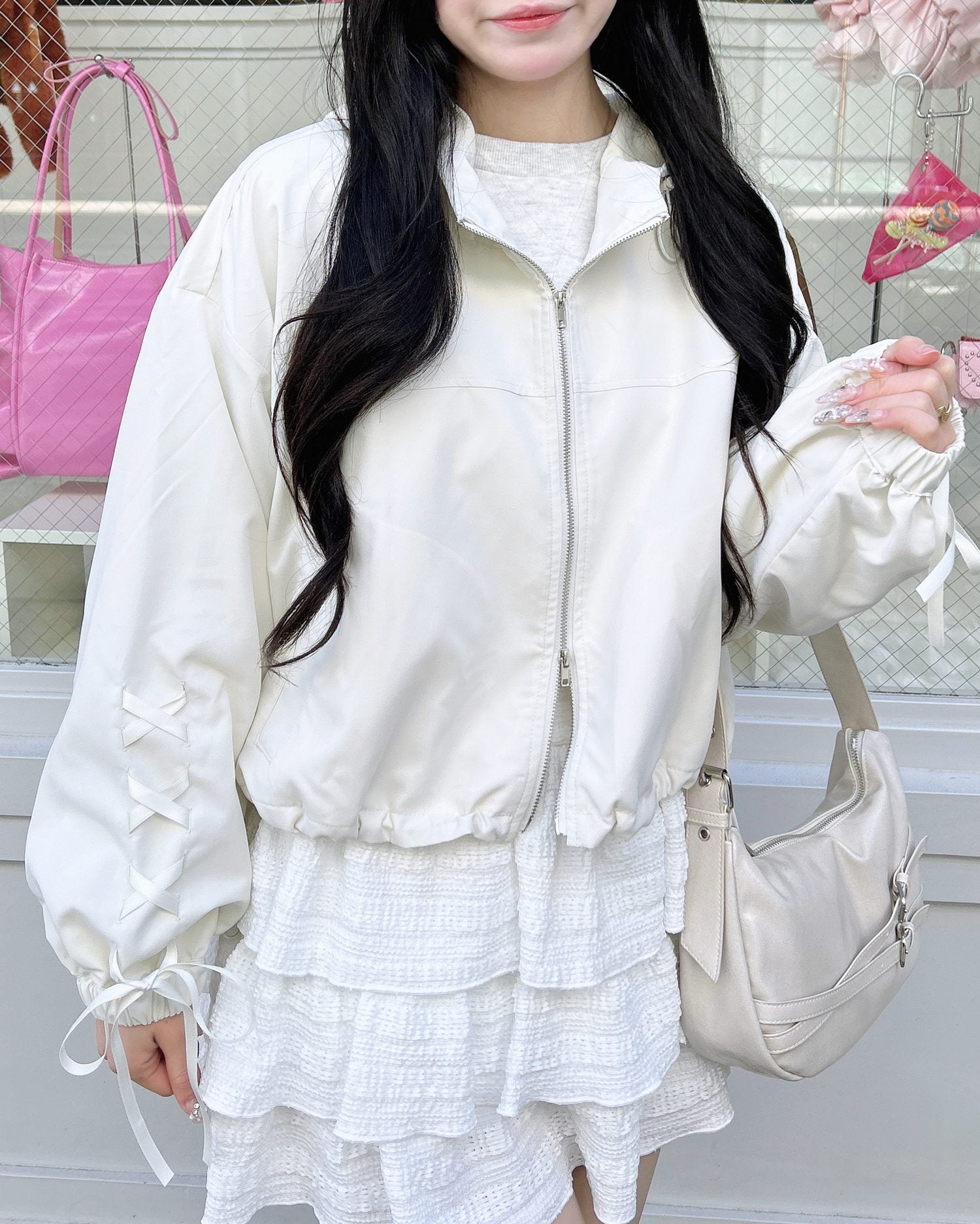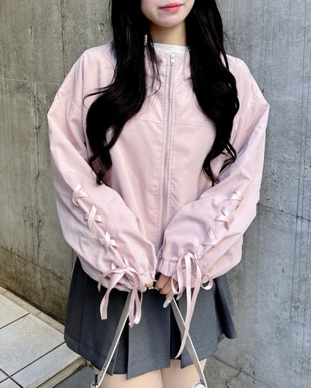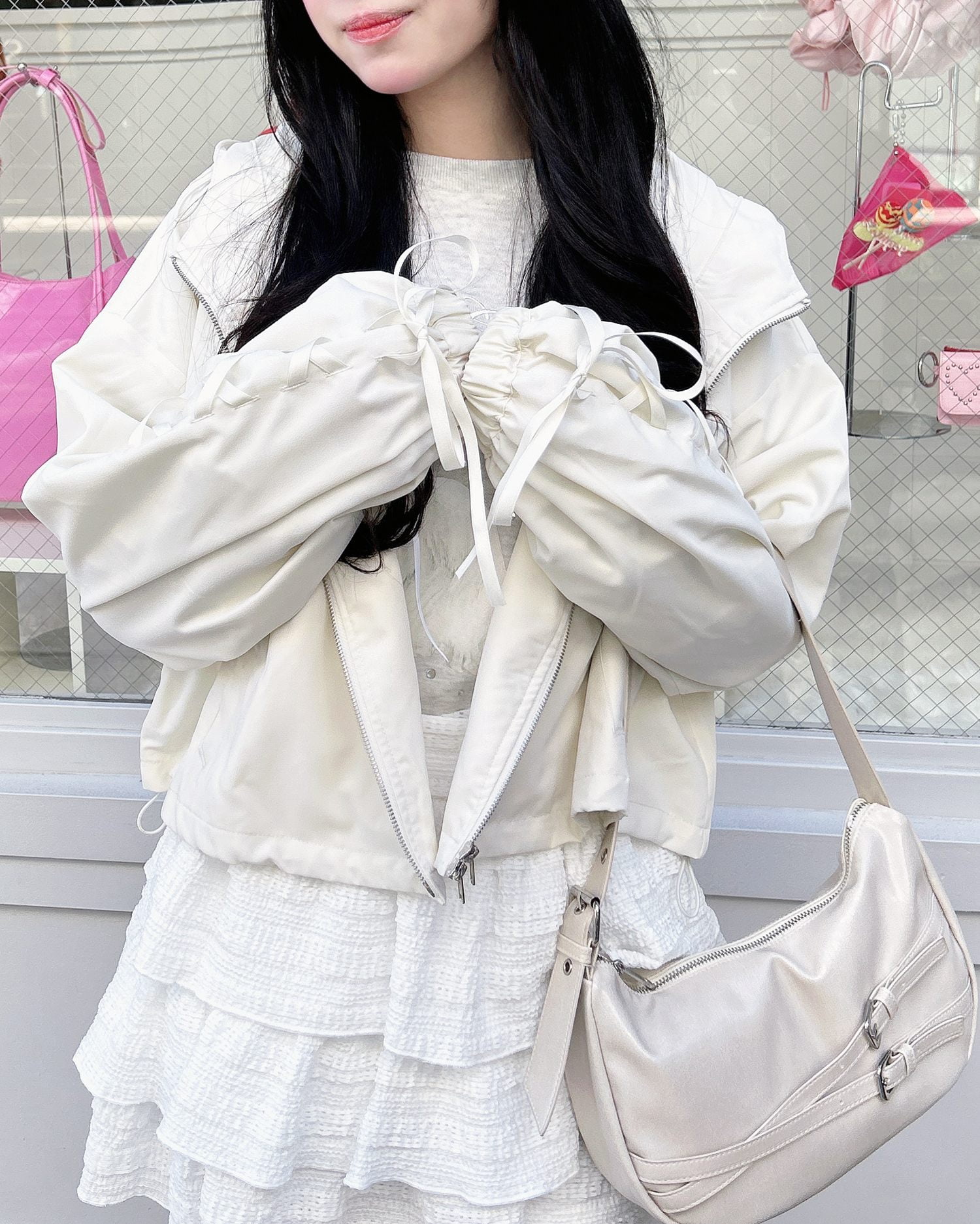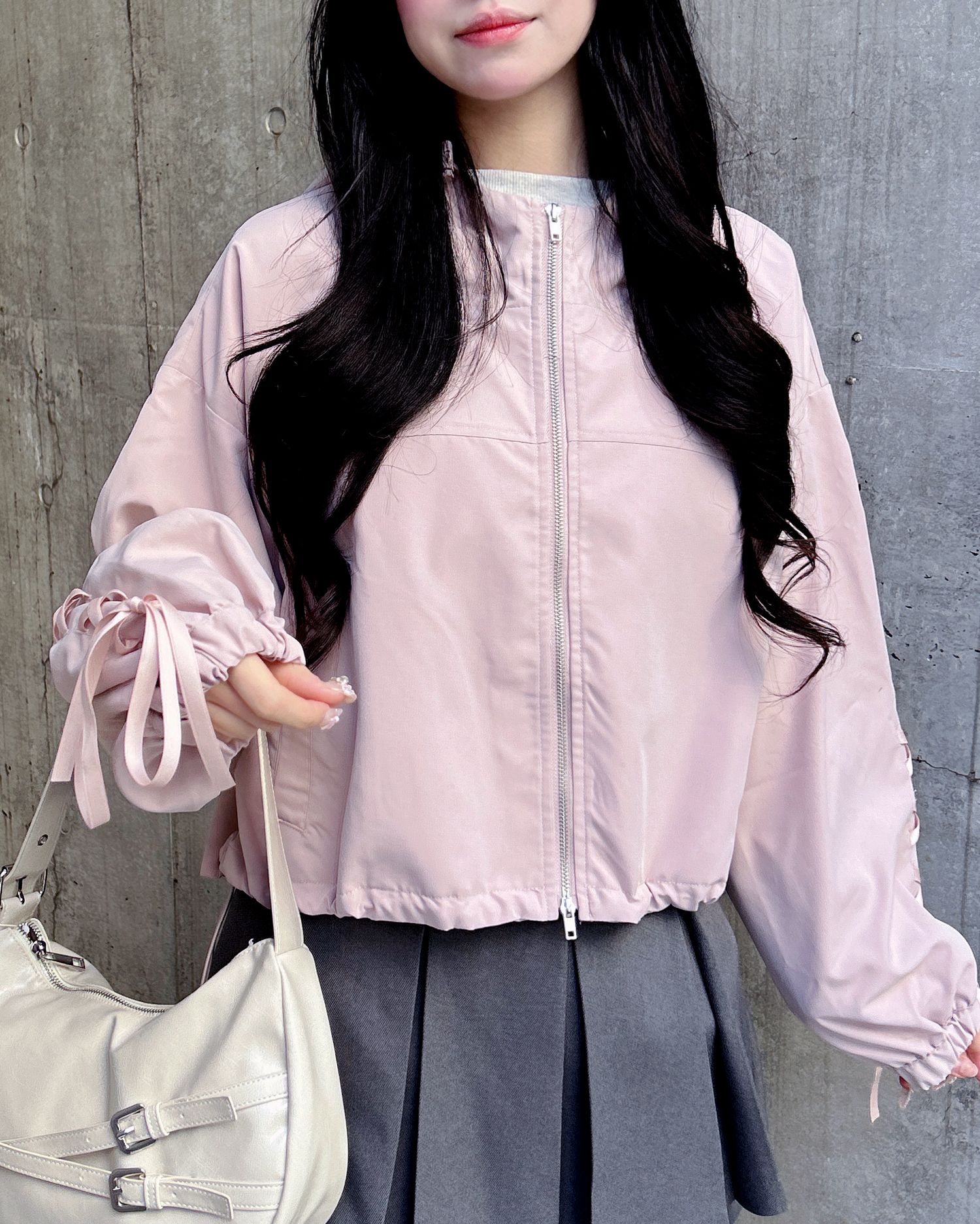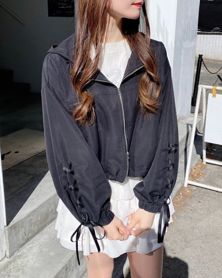 【袖のレースアップがかわいい♡クロップド丈マウンテンパーカー】
