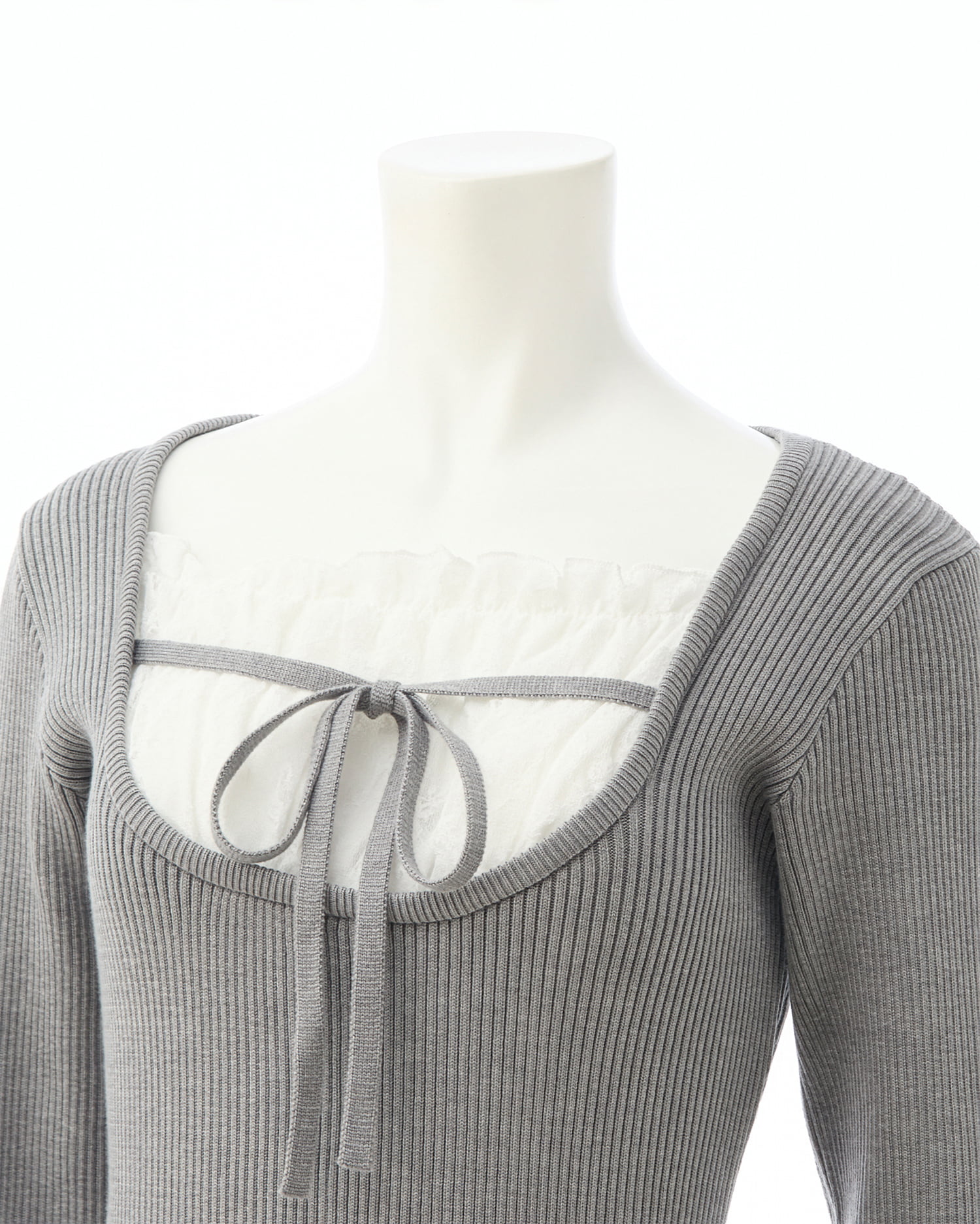ドッキングされた胸元のレースが可愛らしいワンピース。