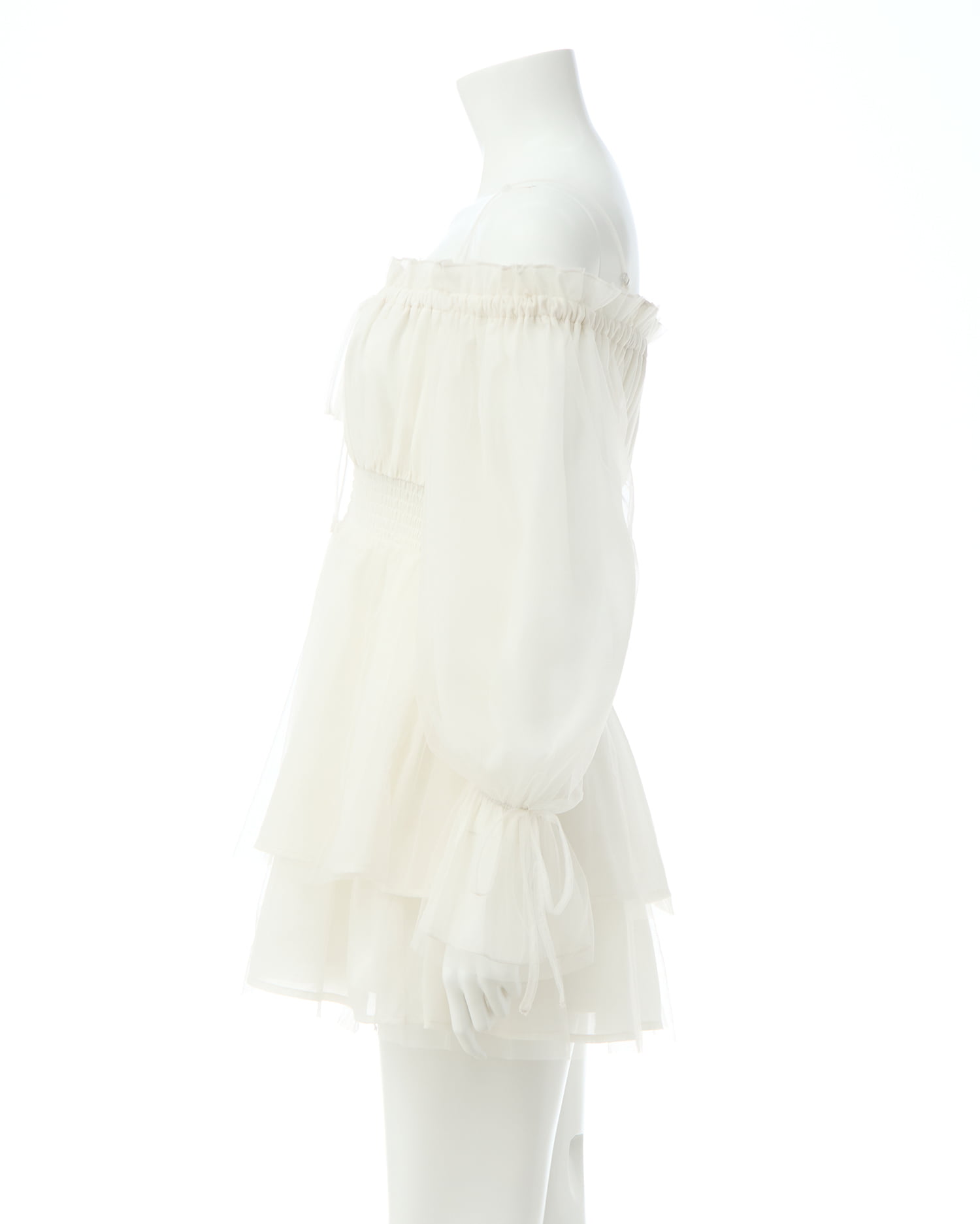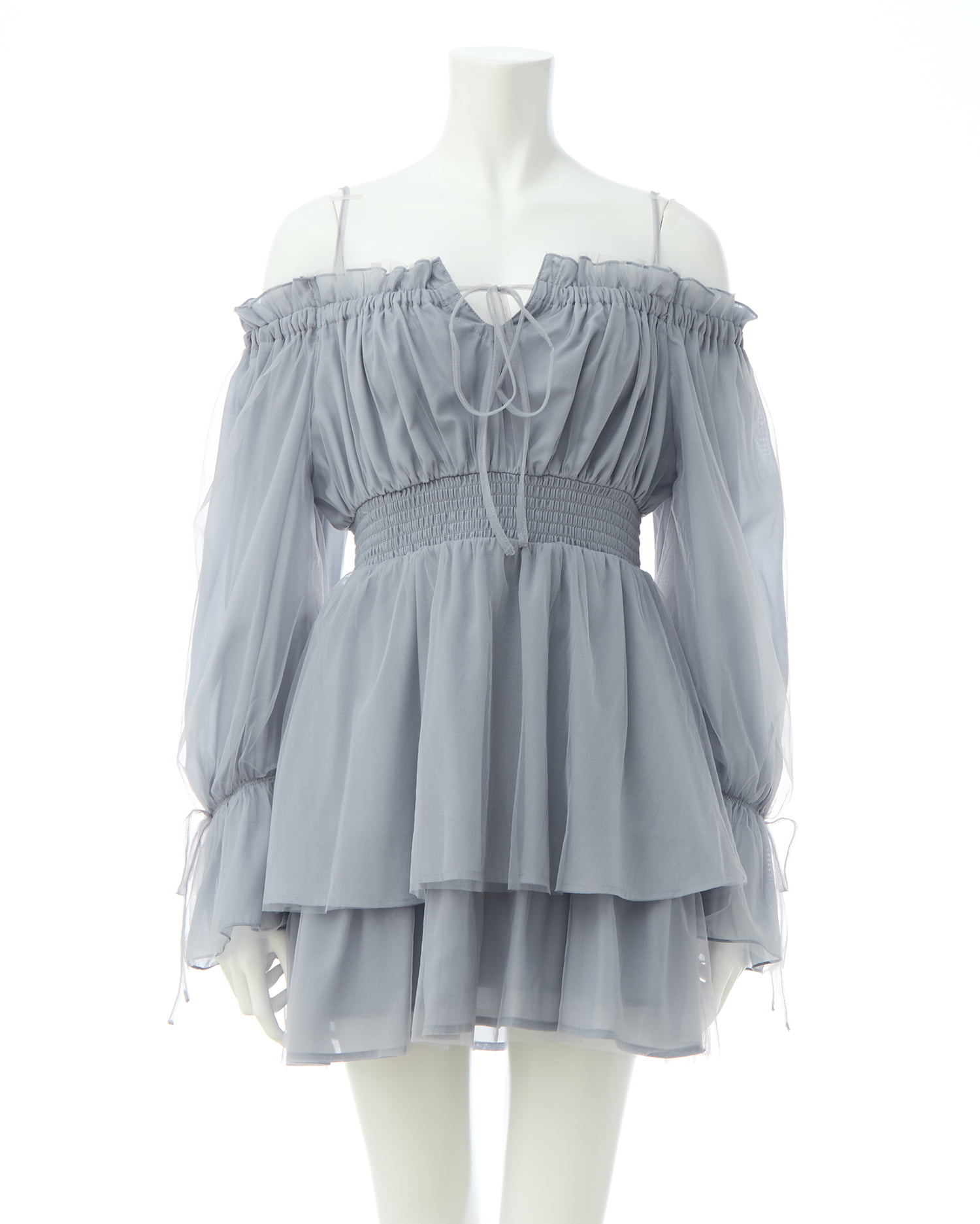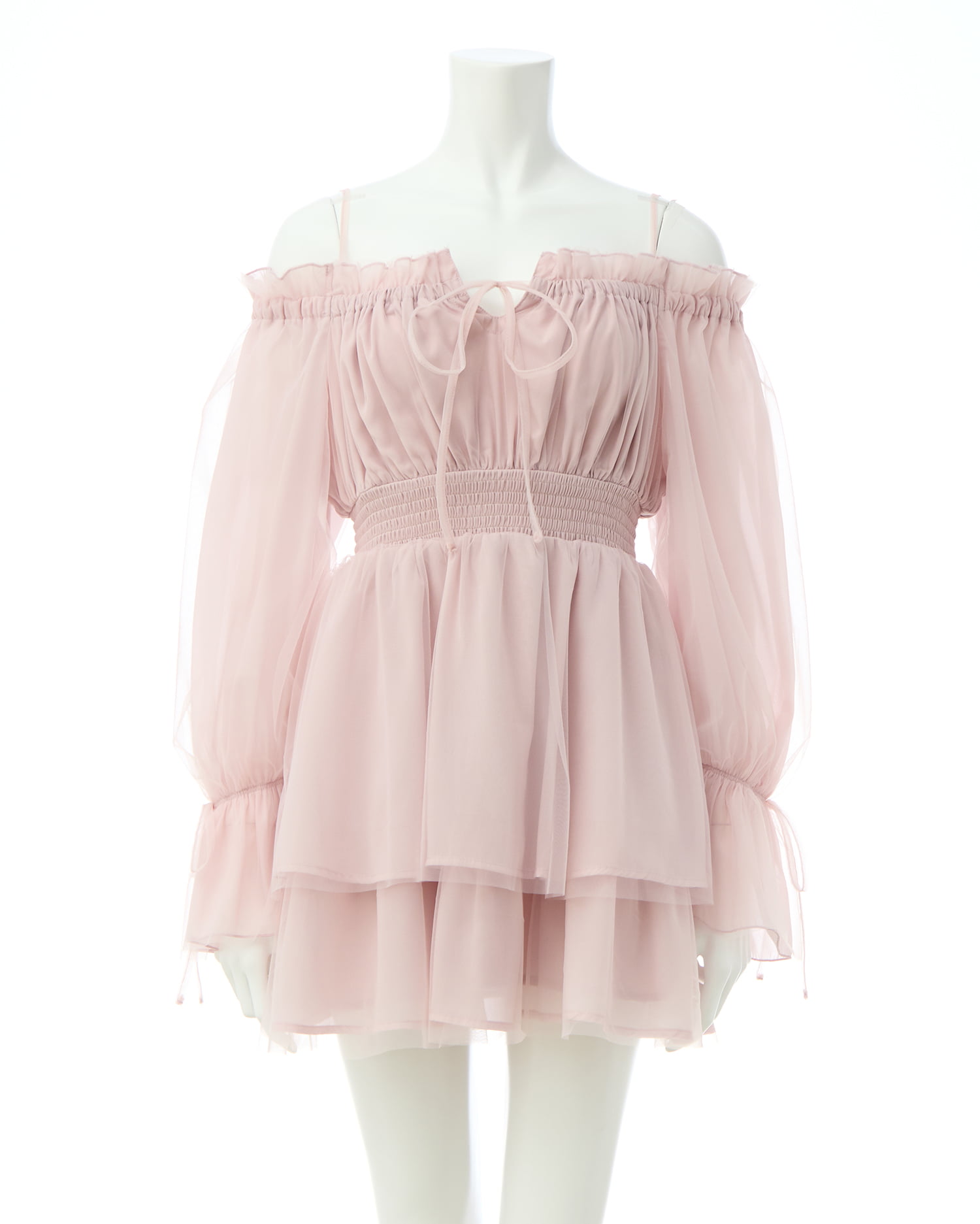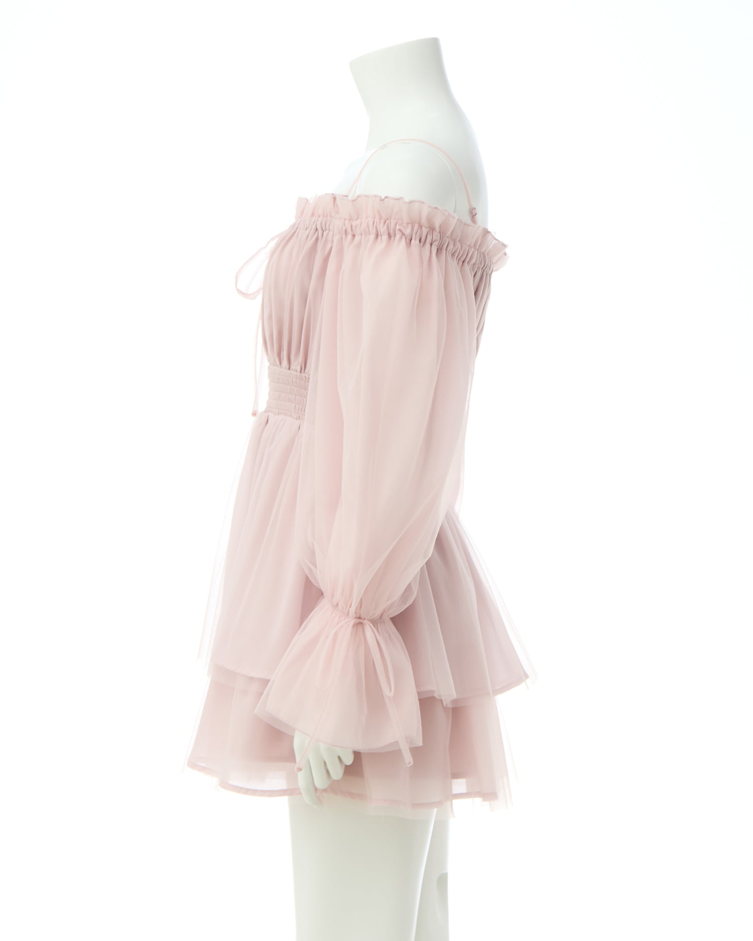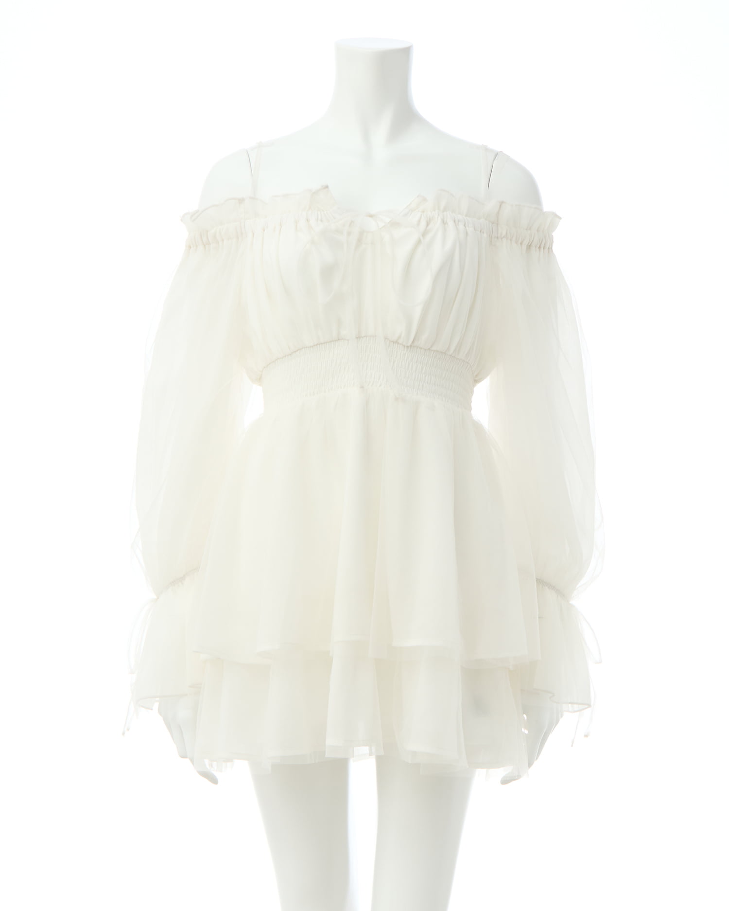 フェミニン&キュートな総チュールのミニ丈ワンピース。