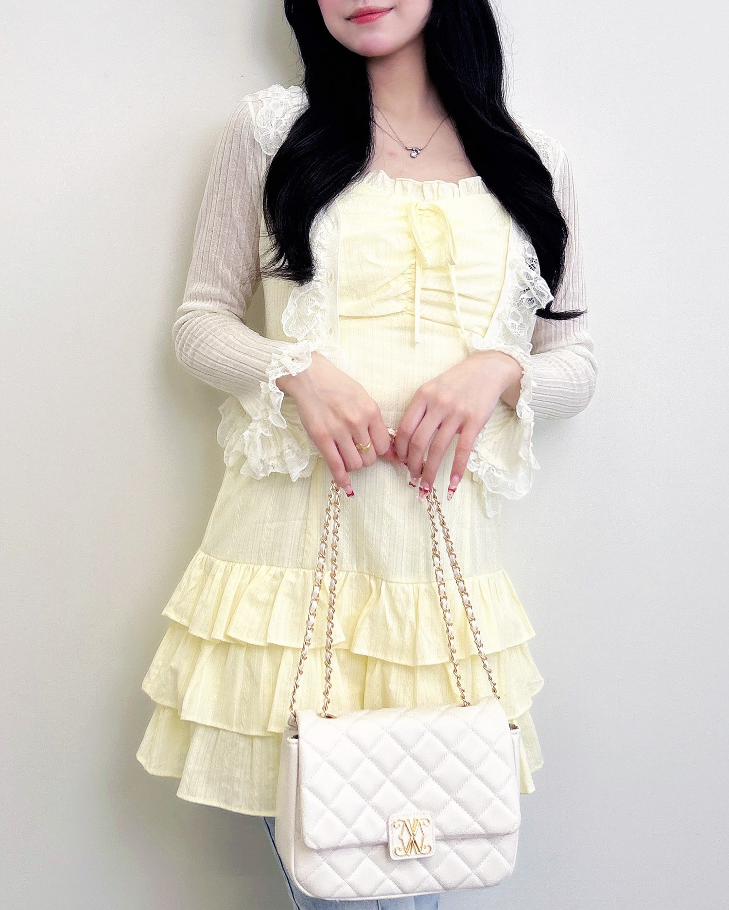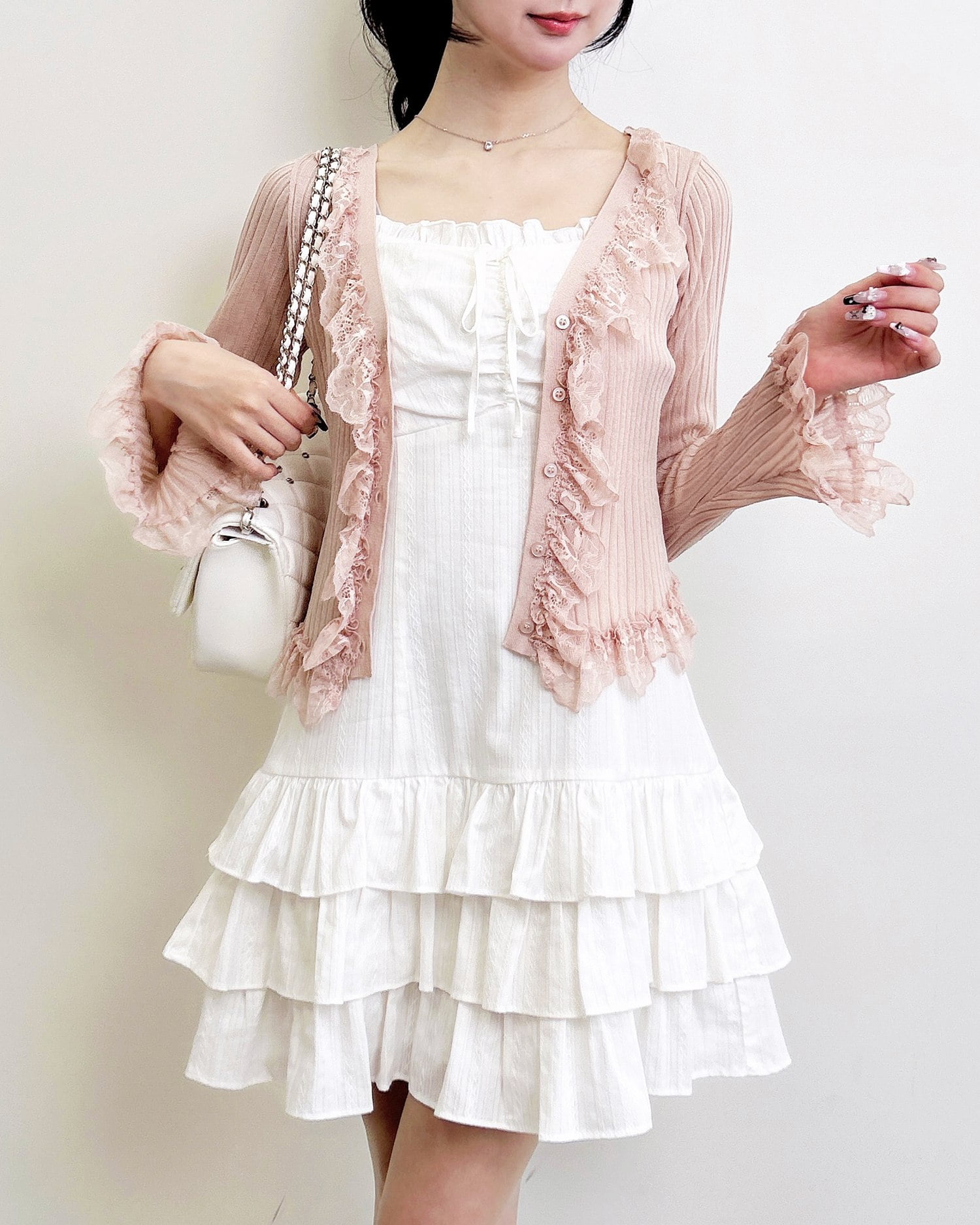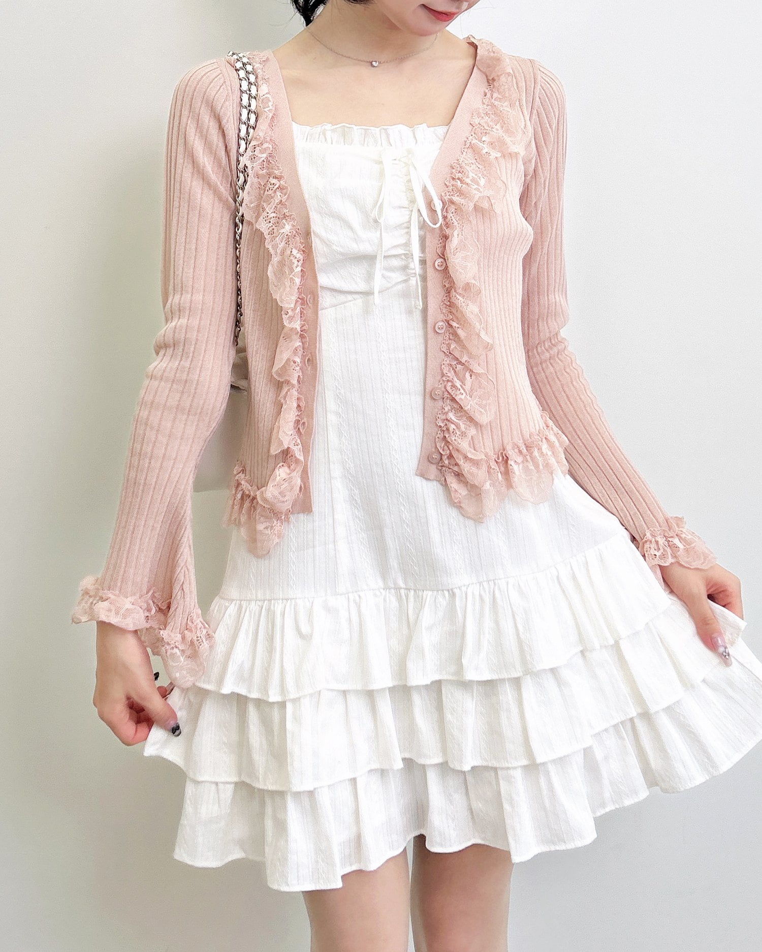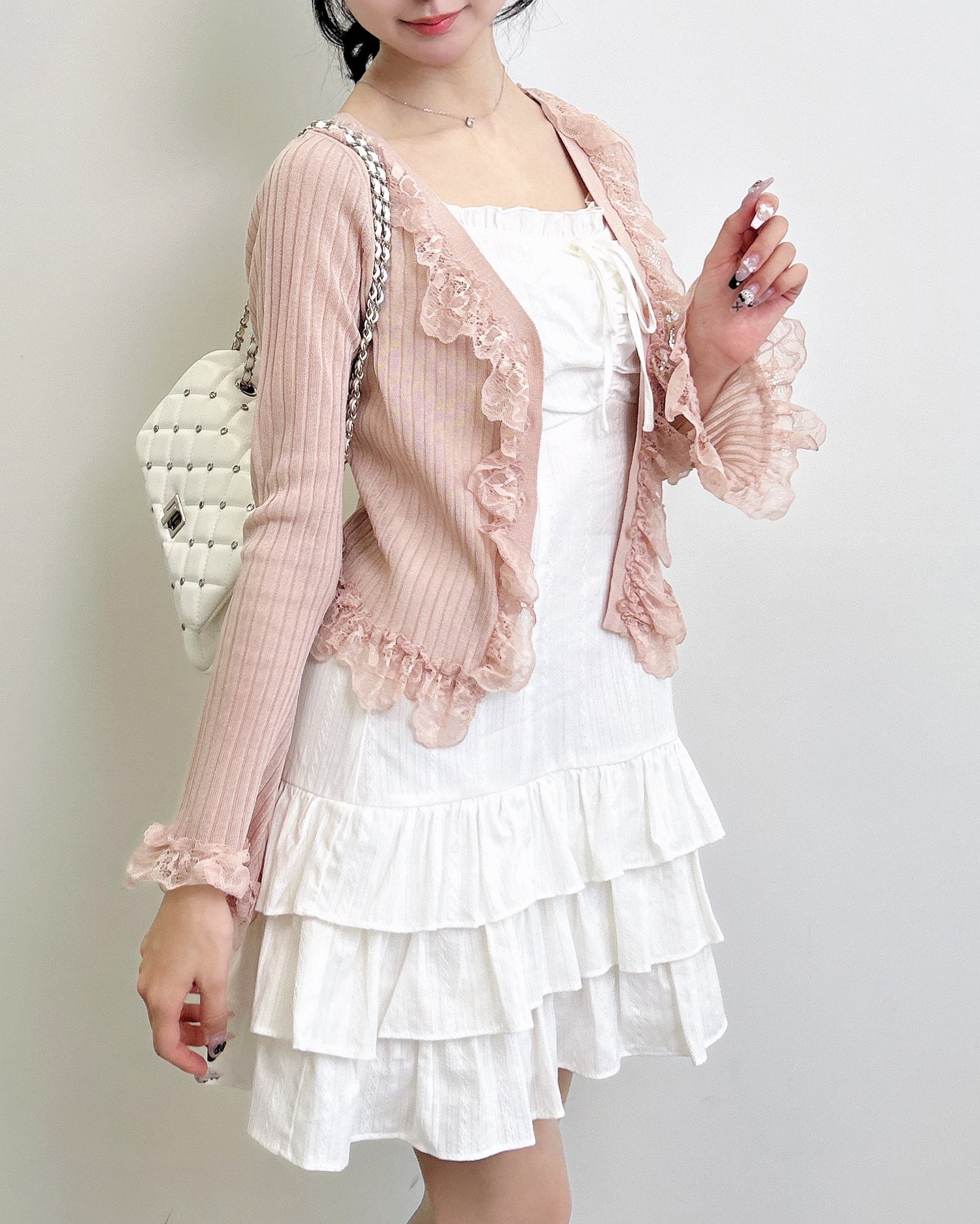上品でフェミニンな雰囲気を引き立てます。