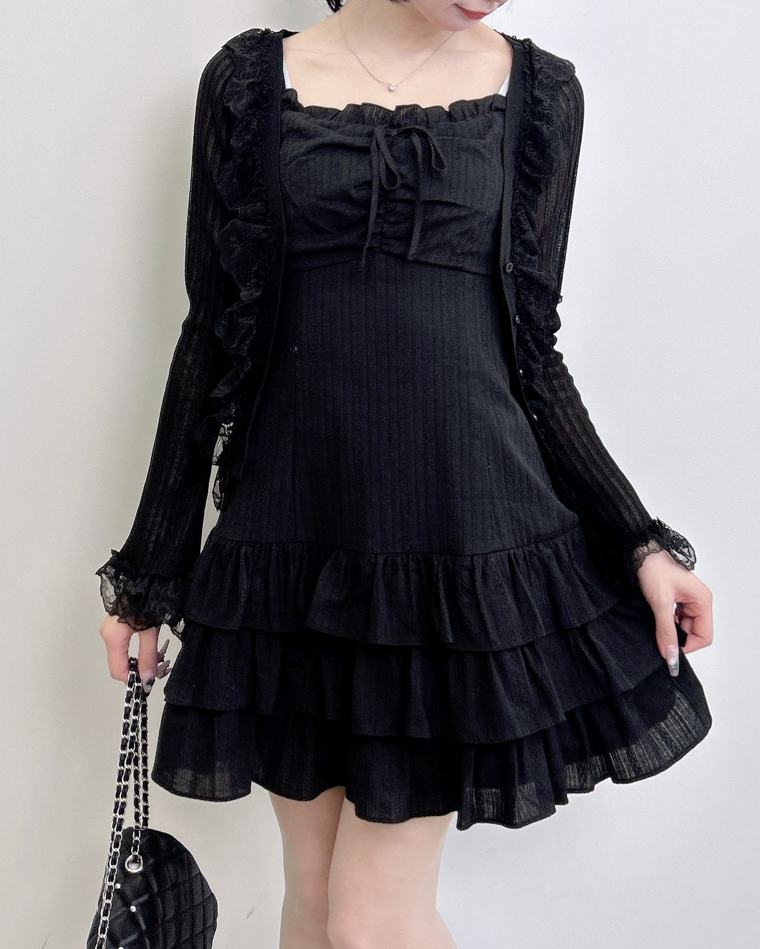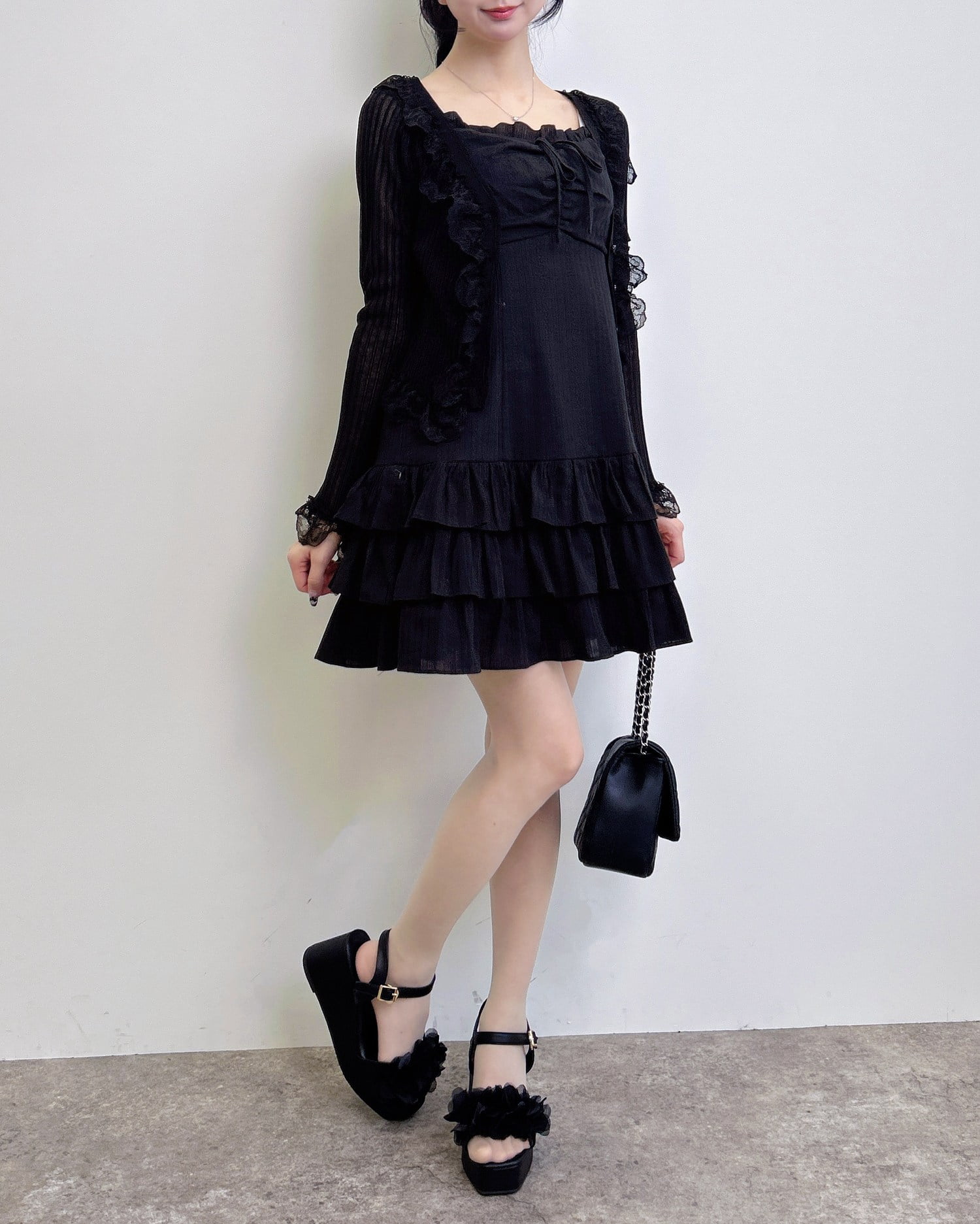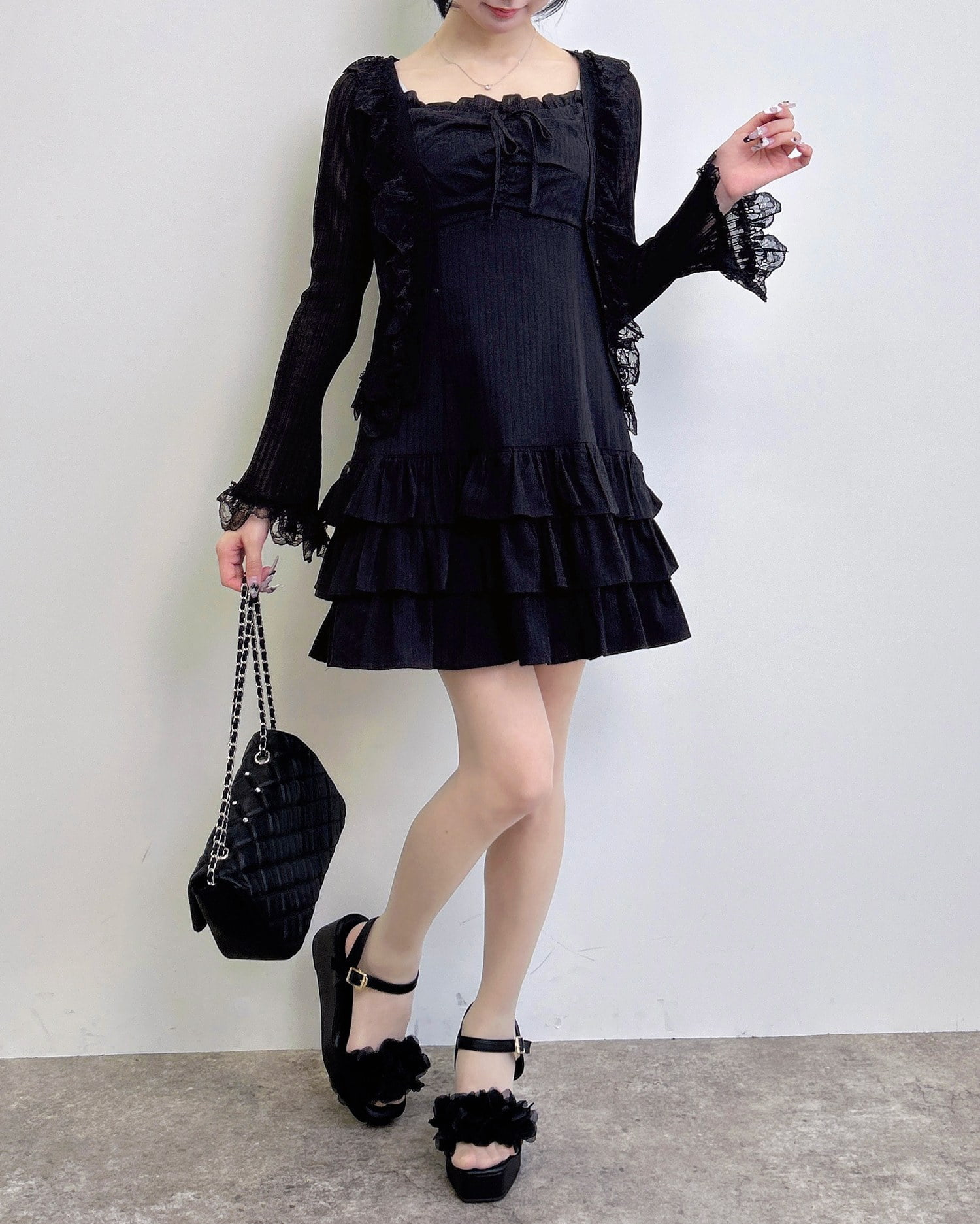 動くたびに揺れるティアードシルエットが