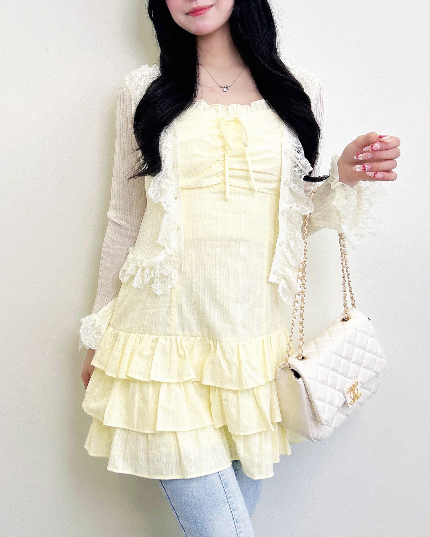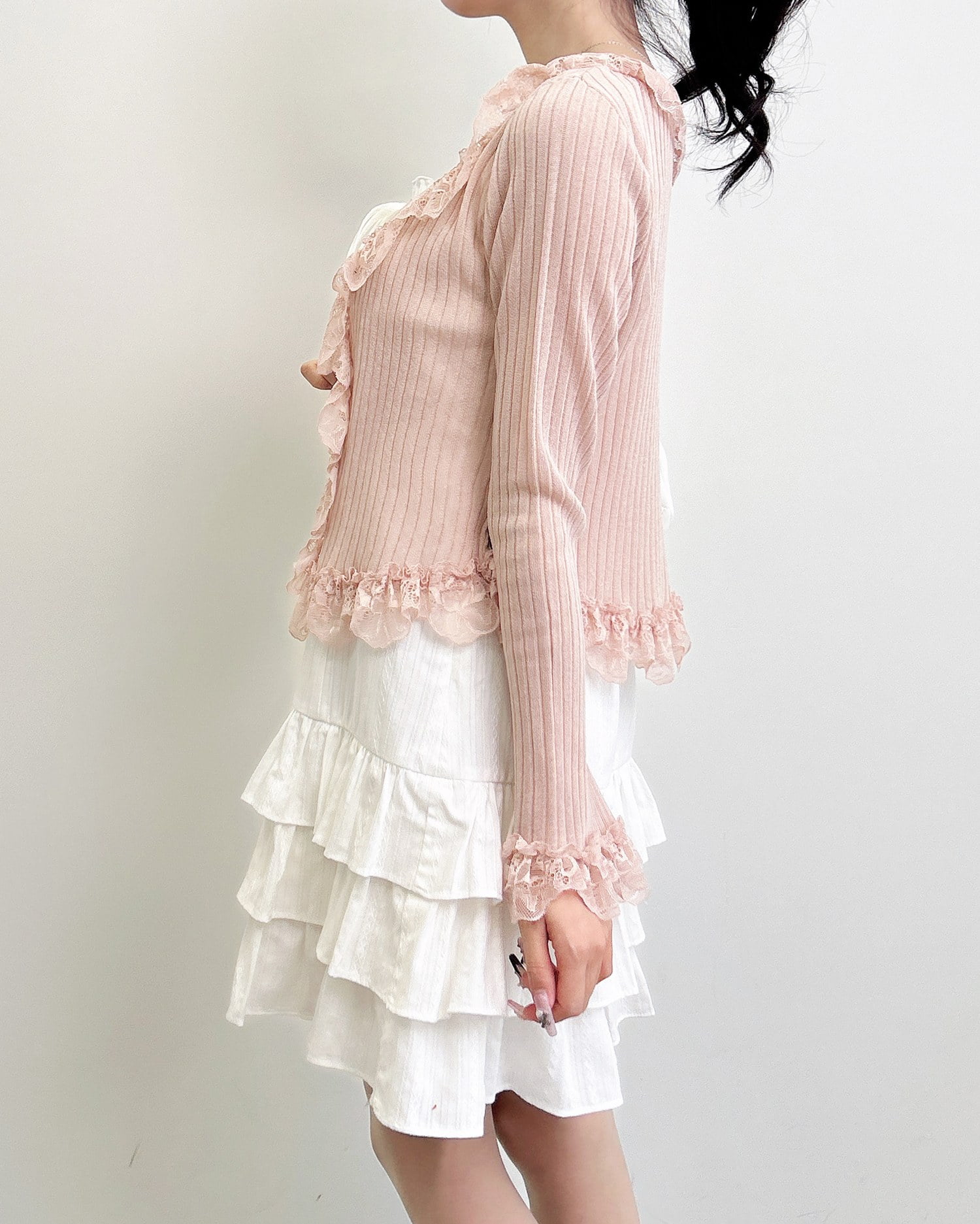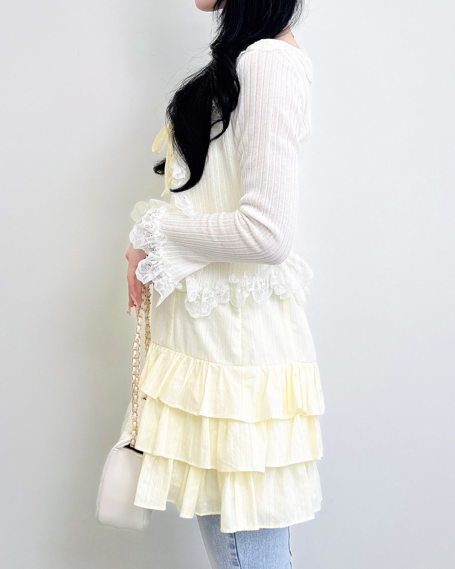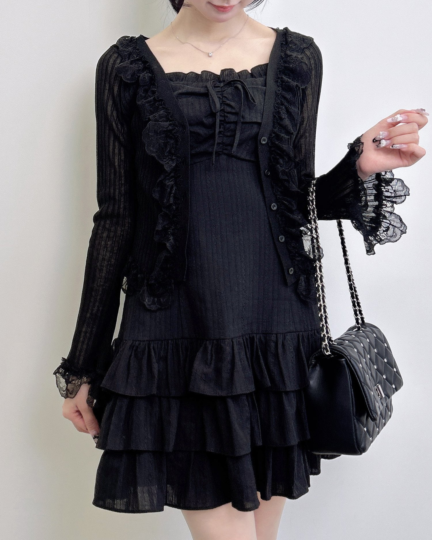 動くたびに揺れるティアードシルエットが