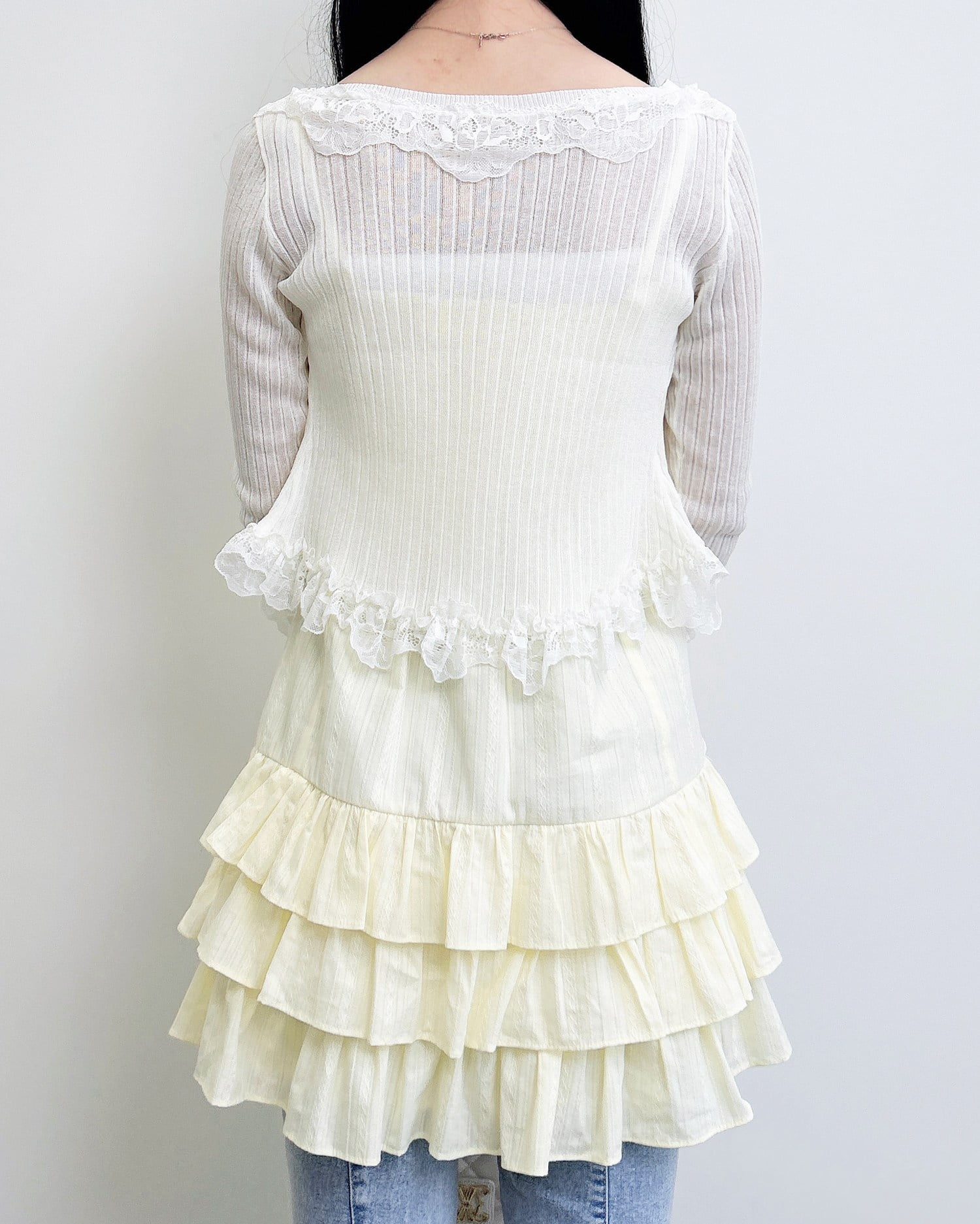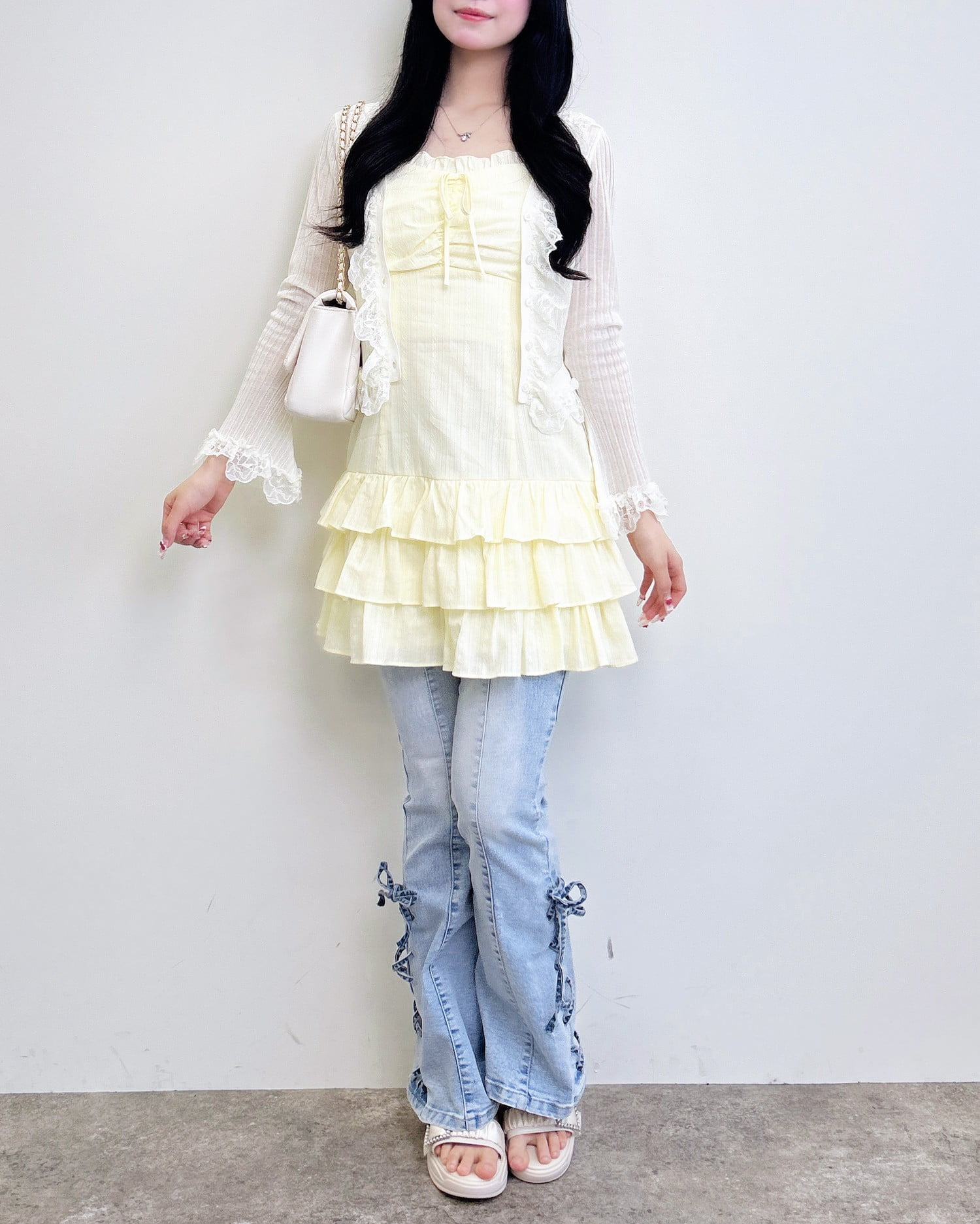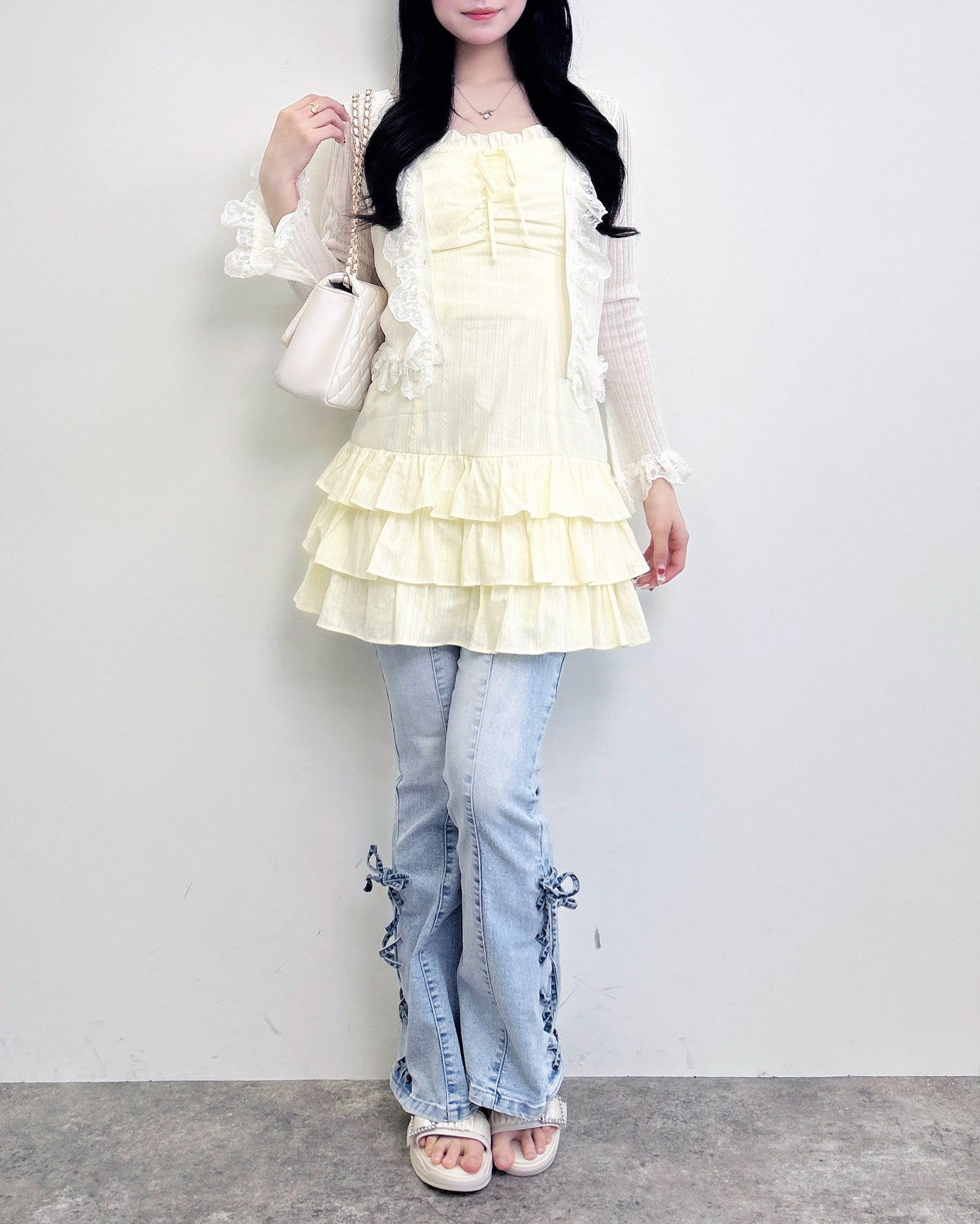 フレアデニムを合わせたレイヤードコーデにすれば