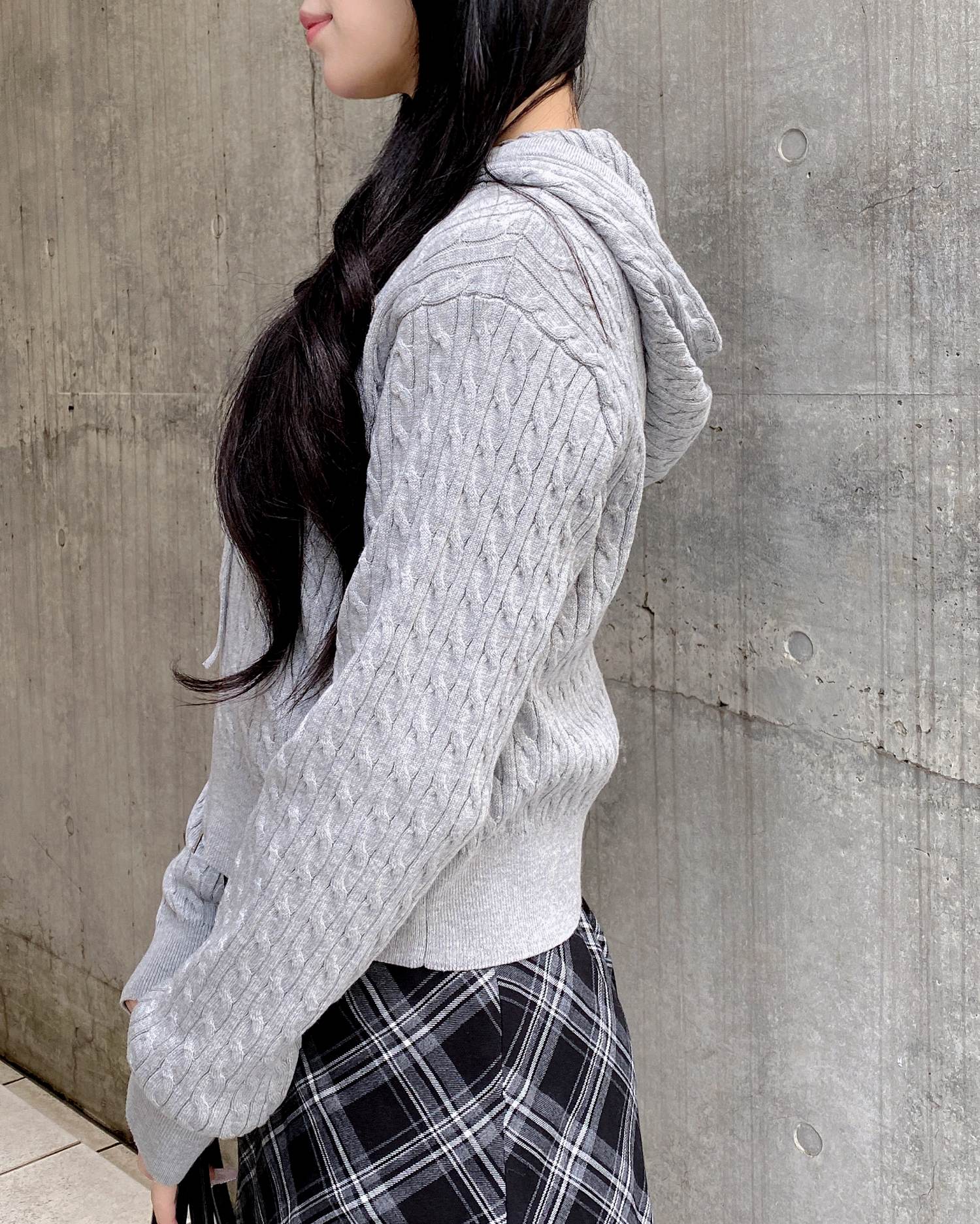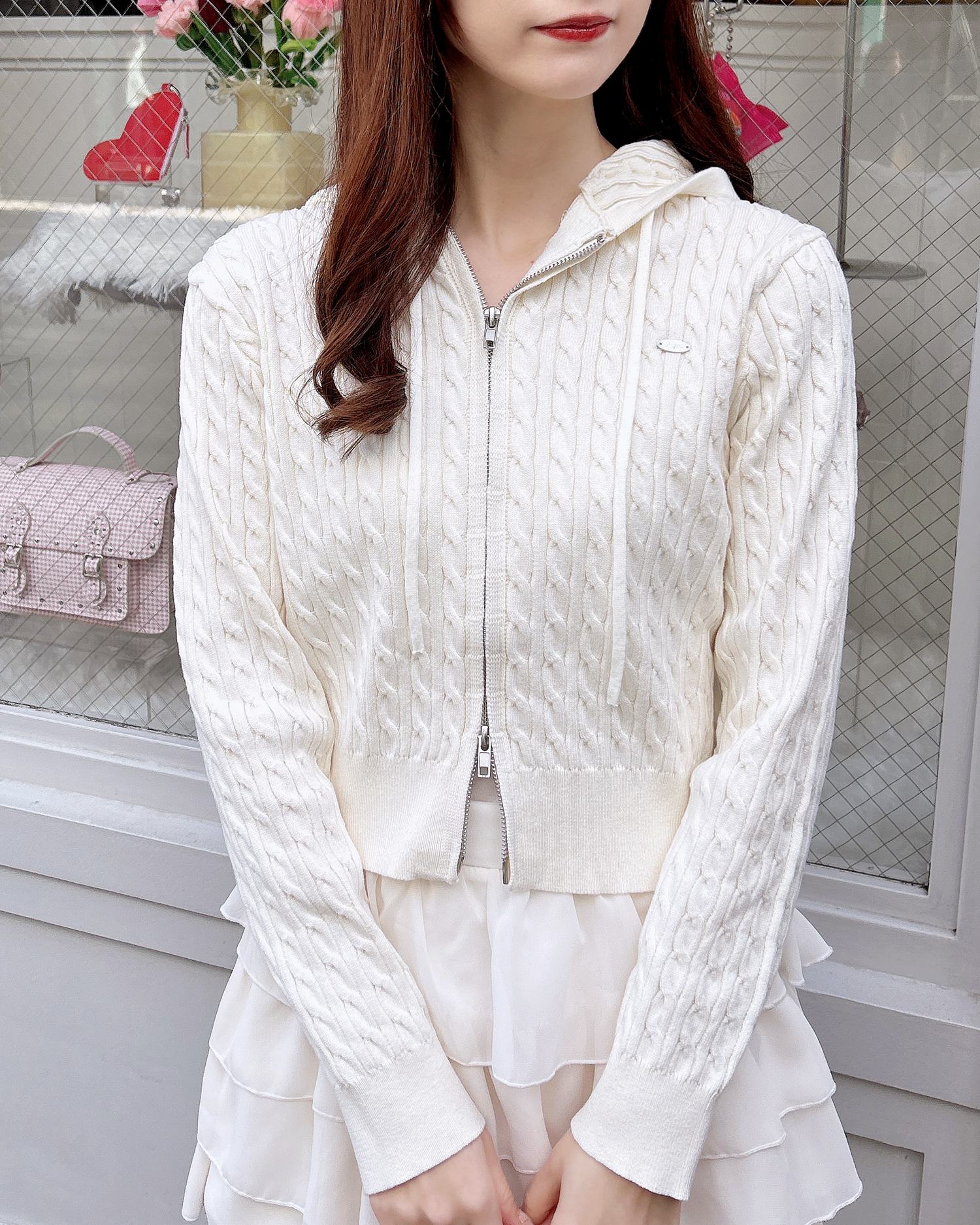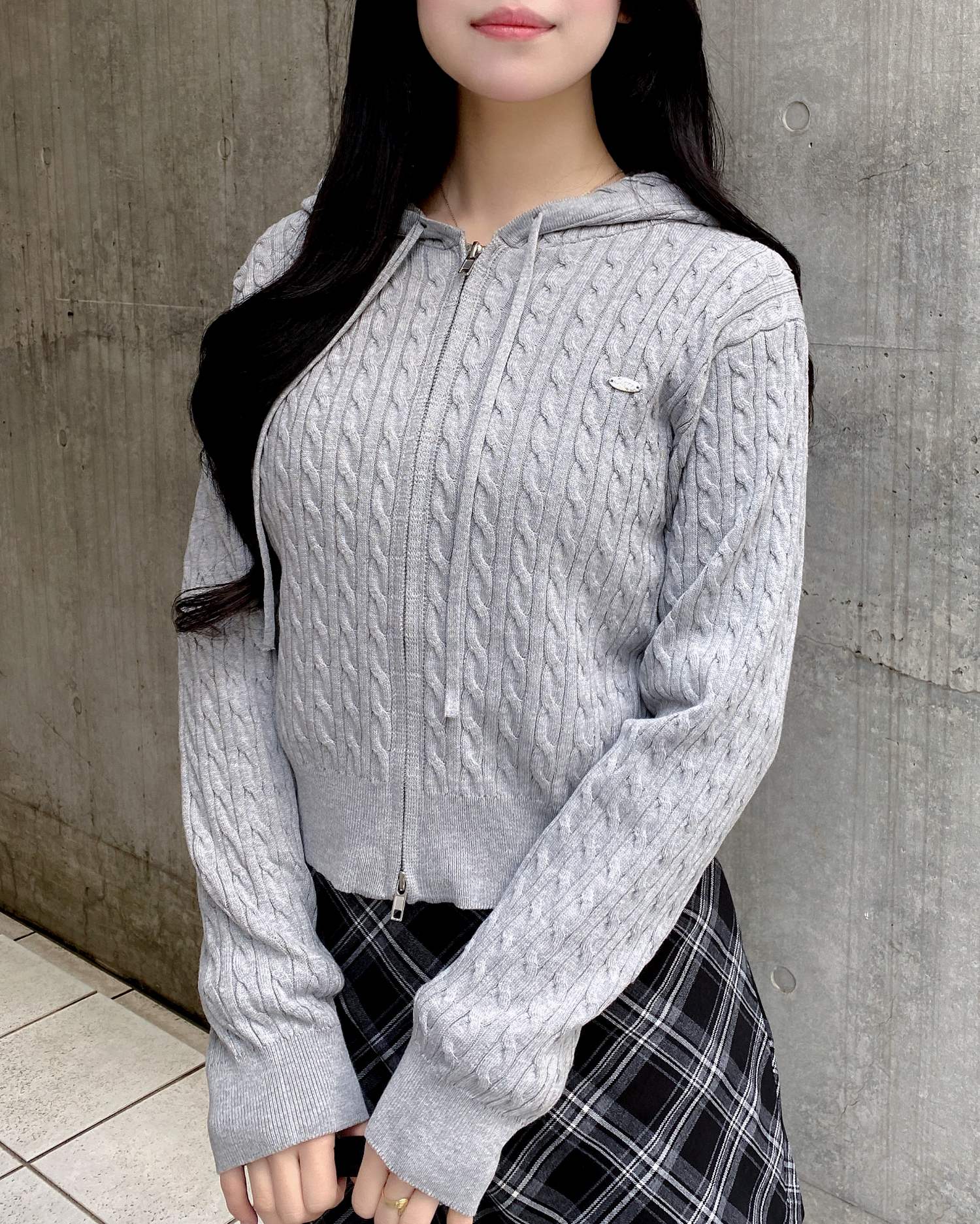 【ケーブル編みが可愛すぎる♡プレート付きニットパーカー】