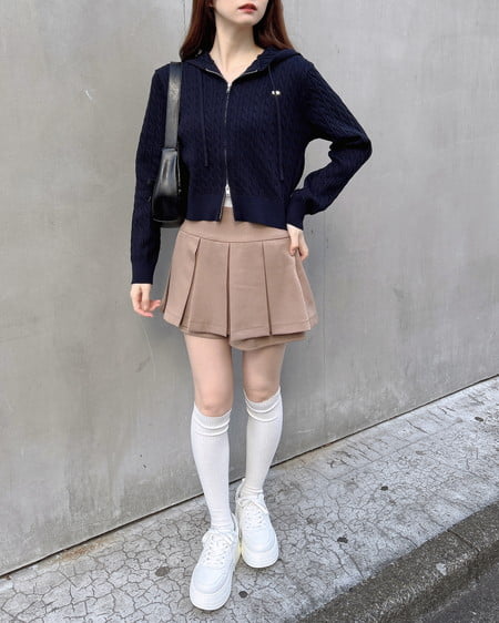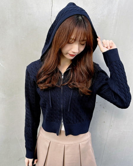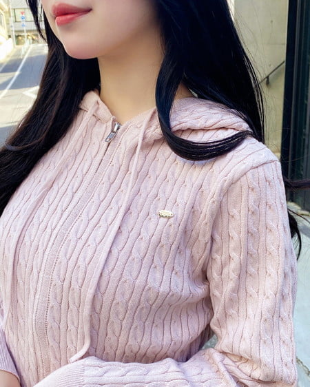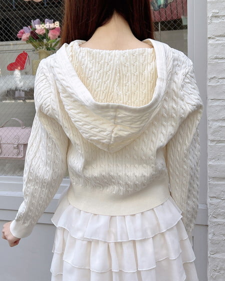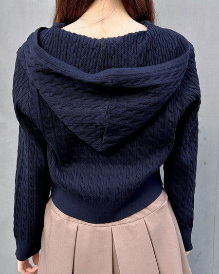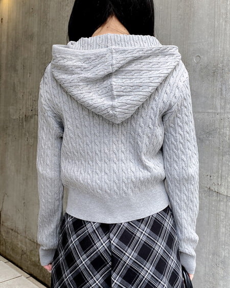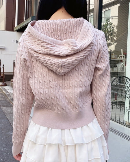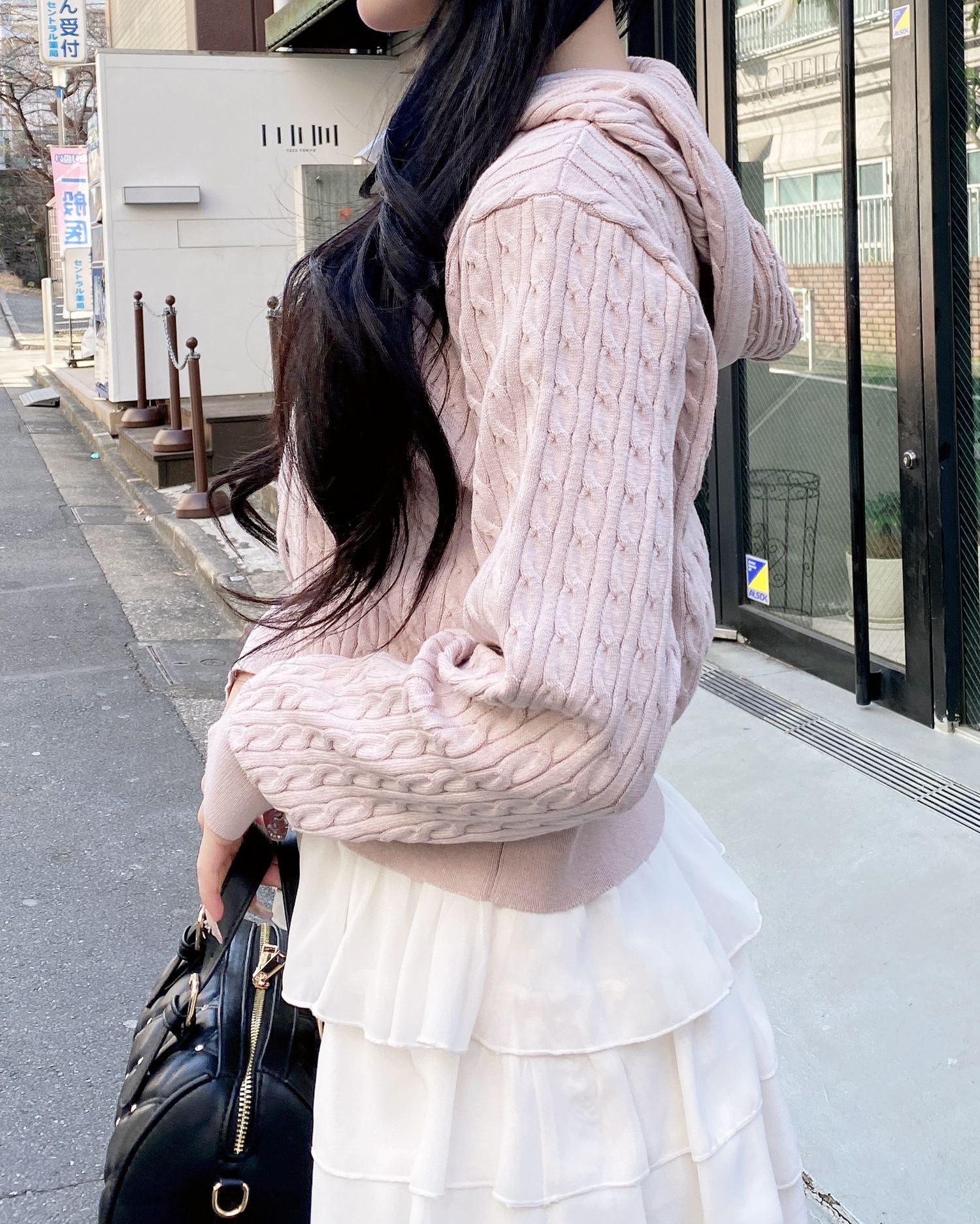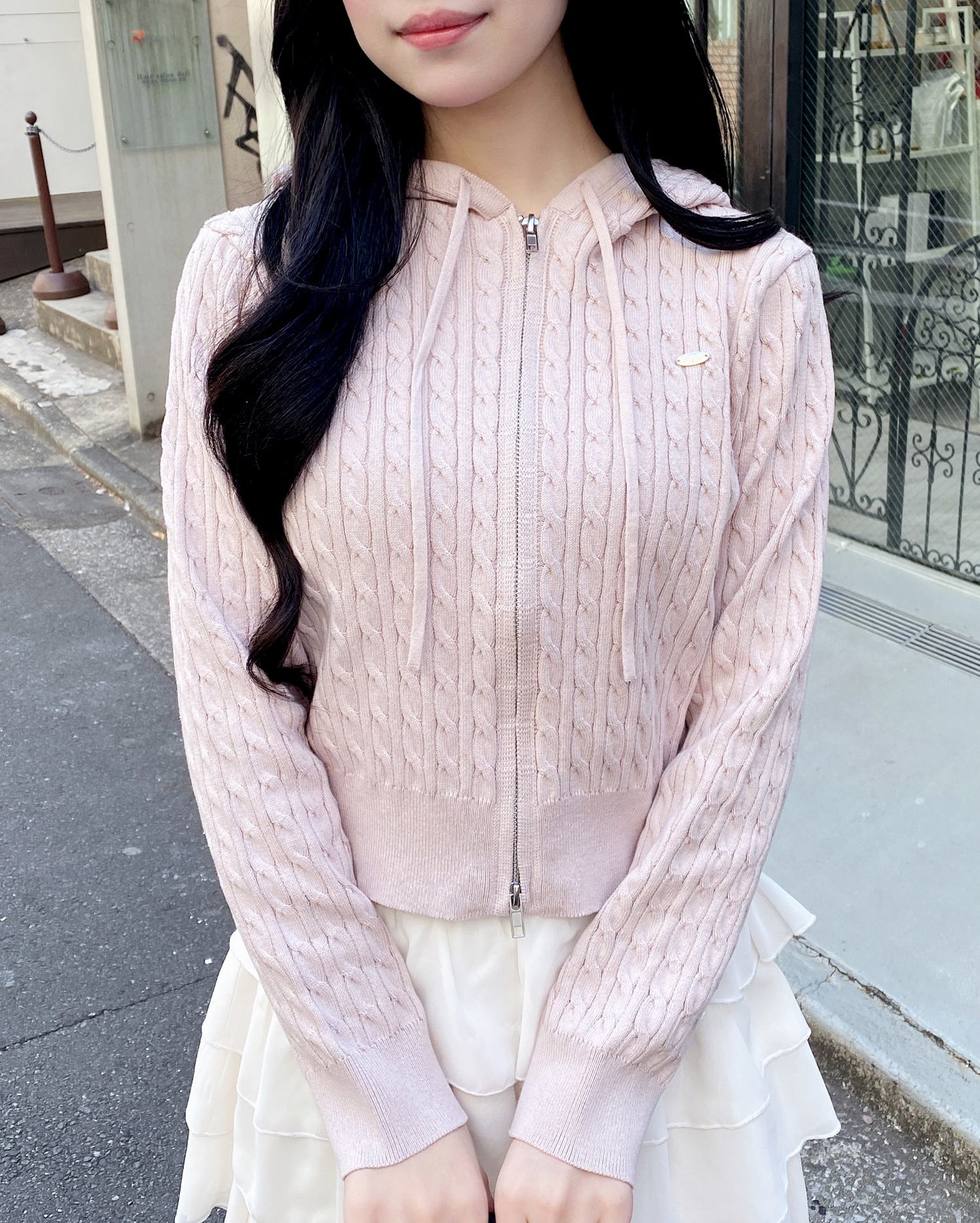 【ケーブル編みが可愛すぎる♡プレート付きニットパーカー】