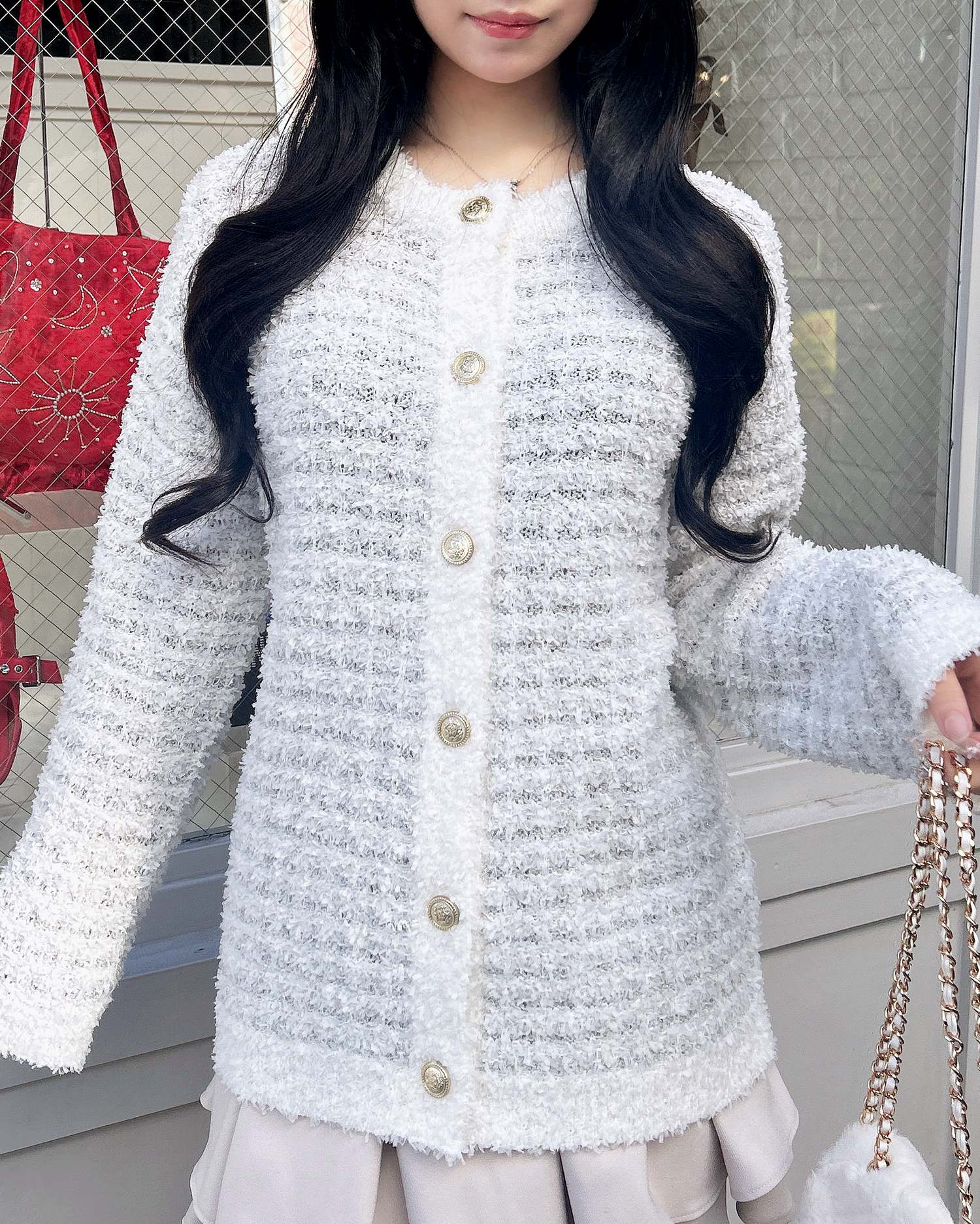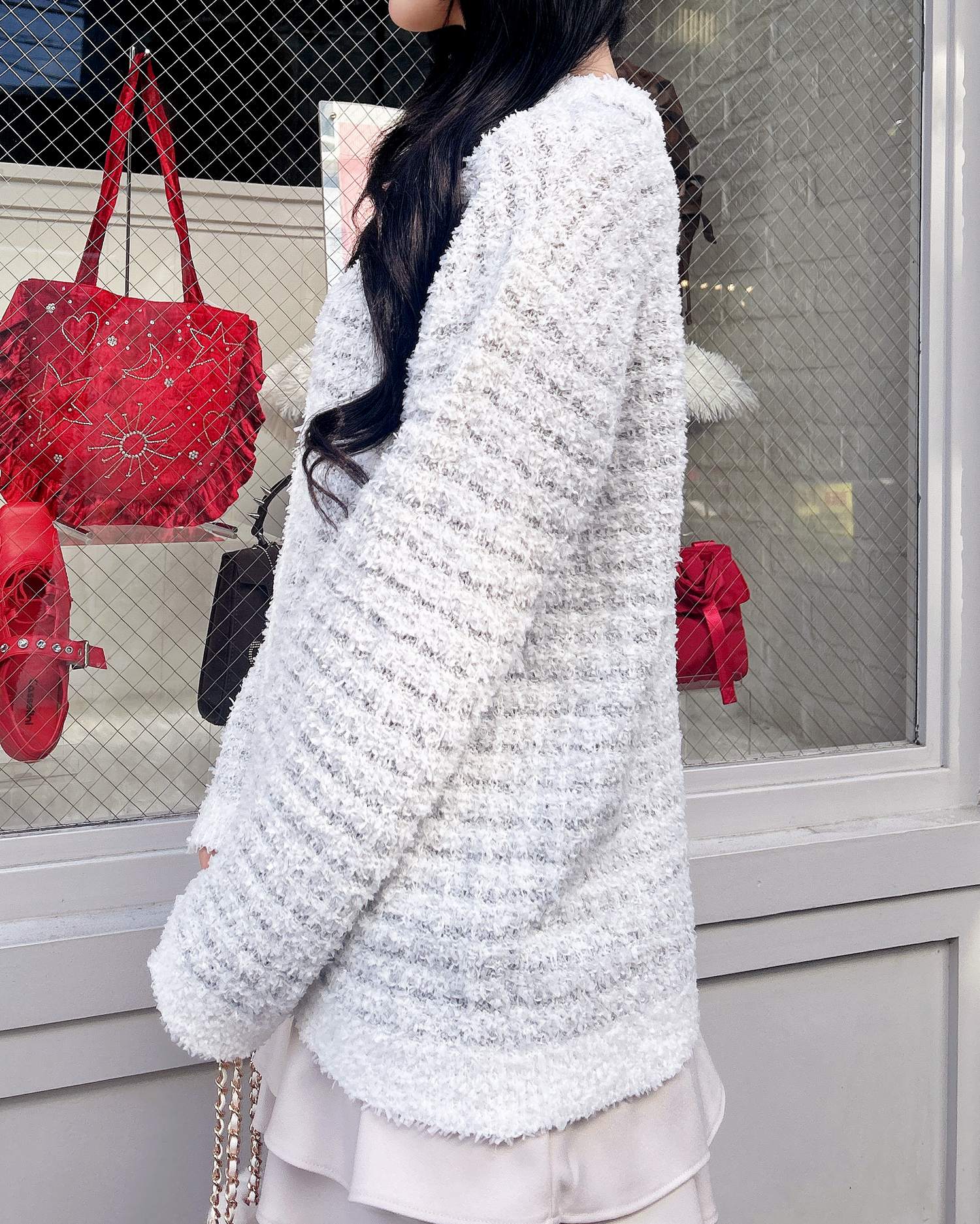 【キラキラのラメが華やかな印象のツイード調ニットカーディガン】