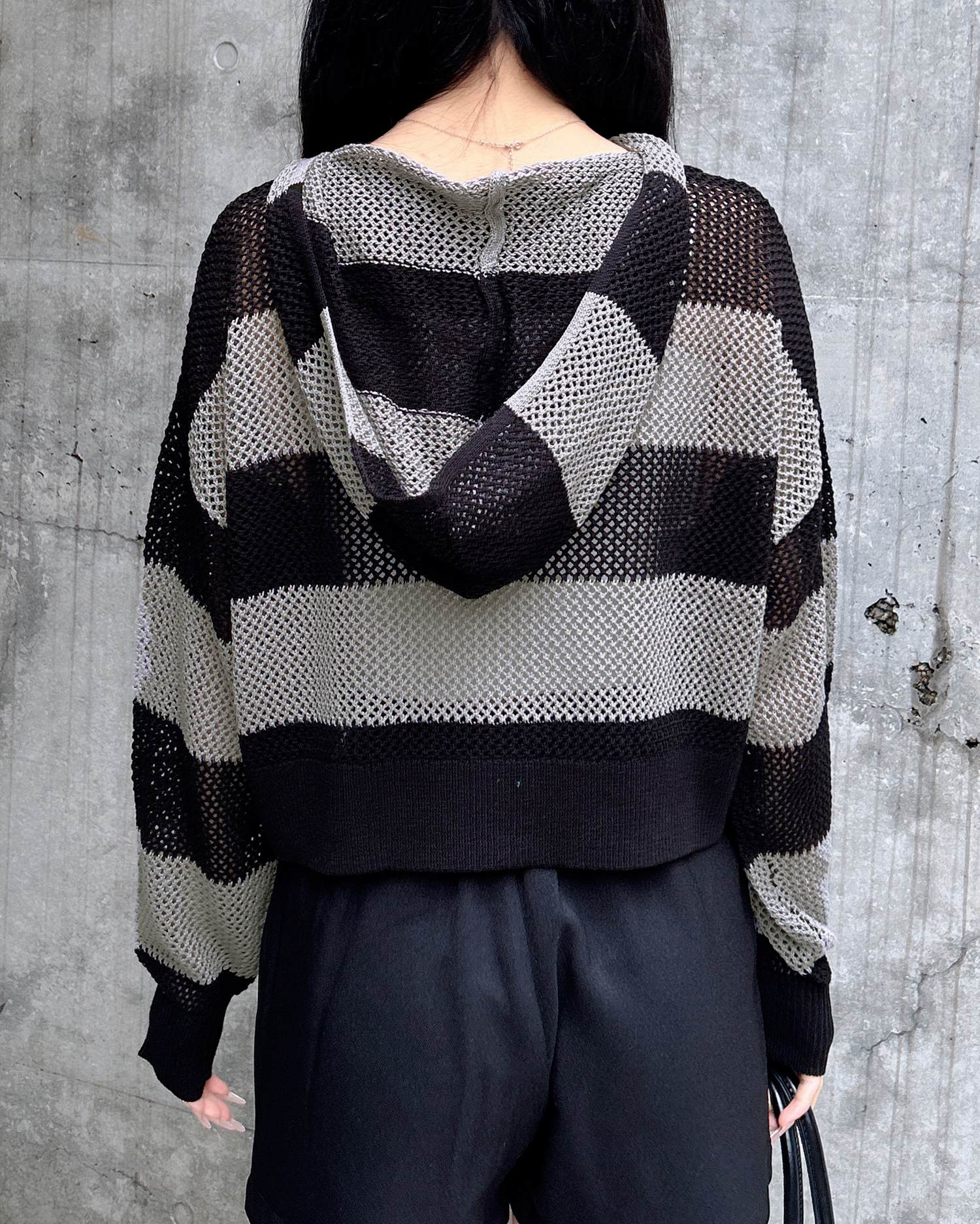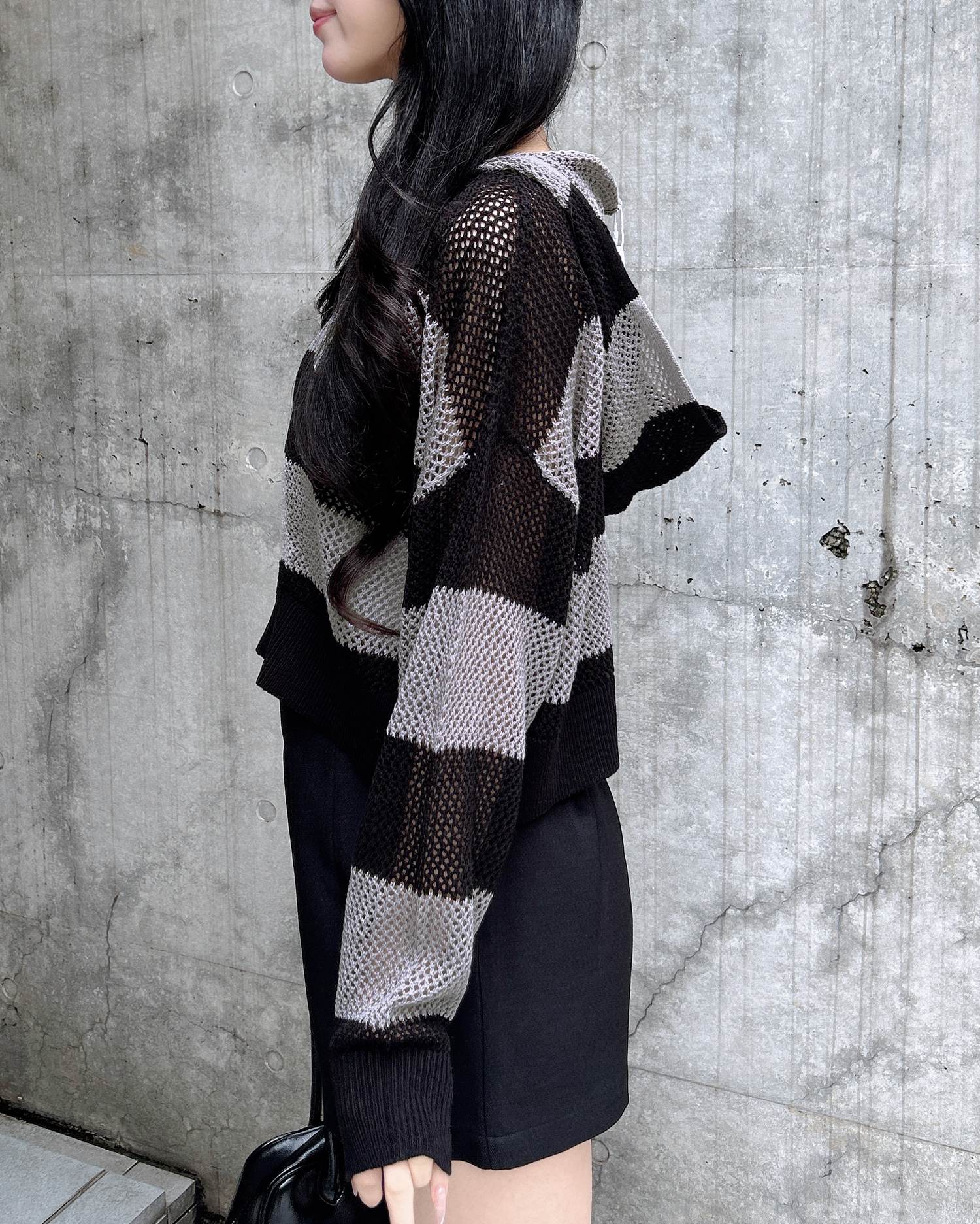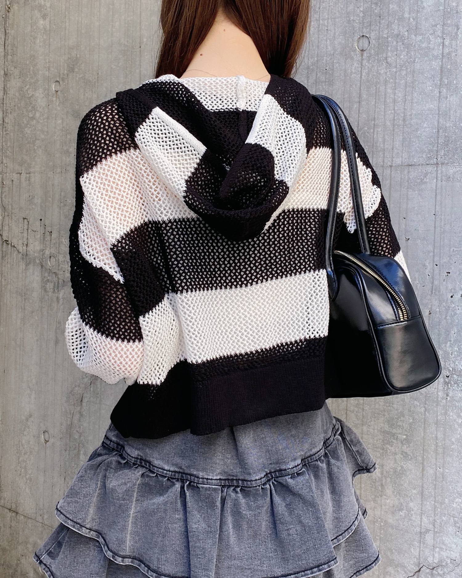 インパクト抜群のボーダー柄メッシュパーカーでトレンドライクに。
