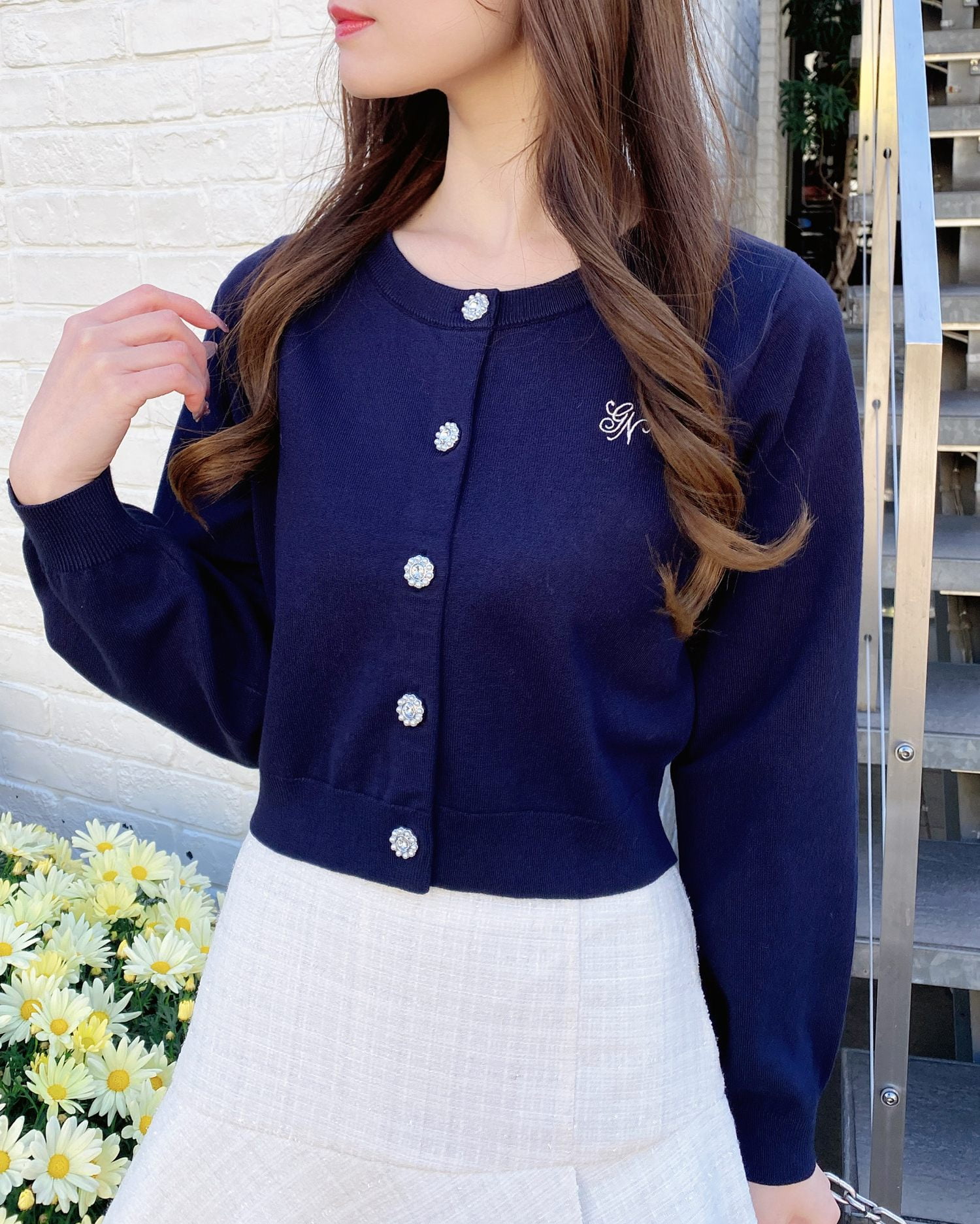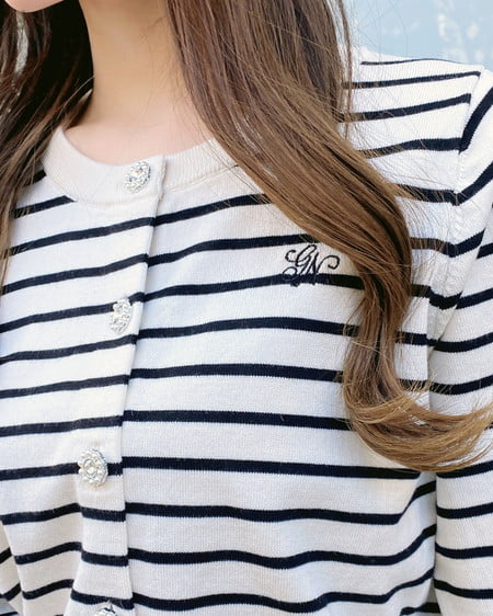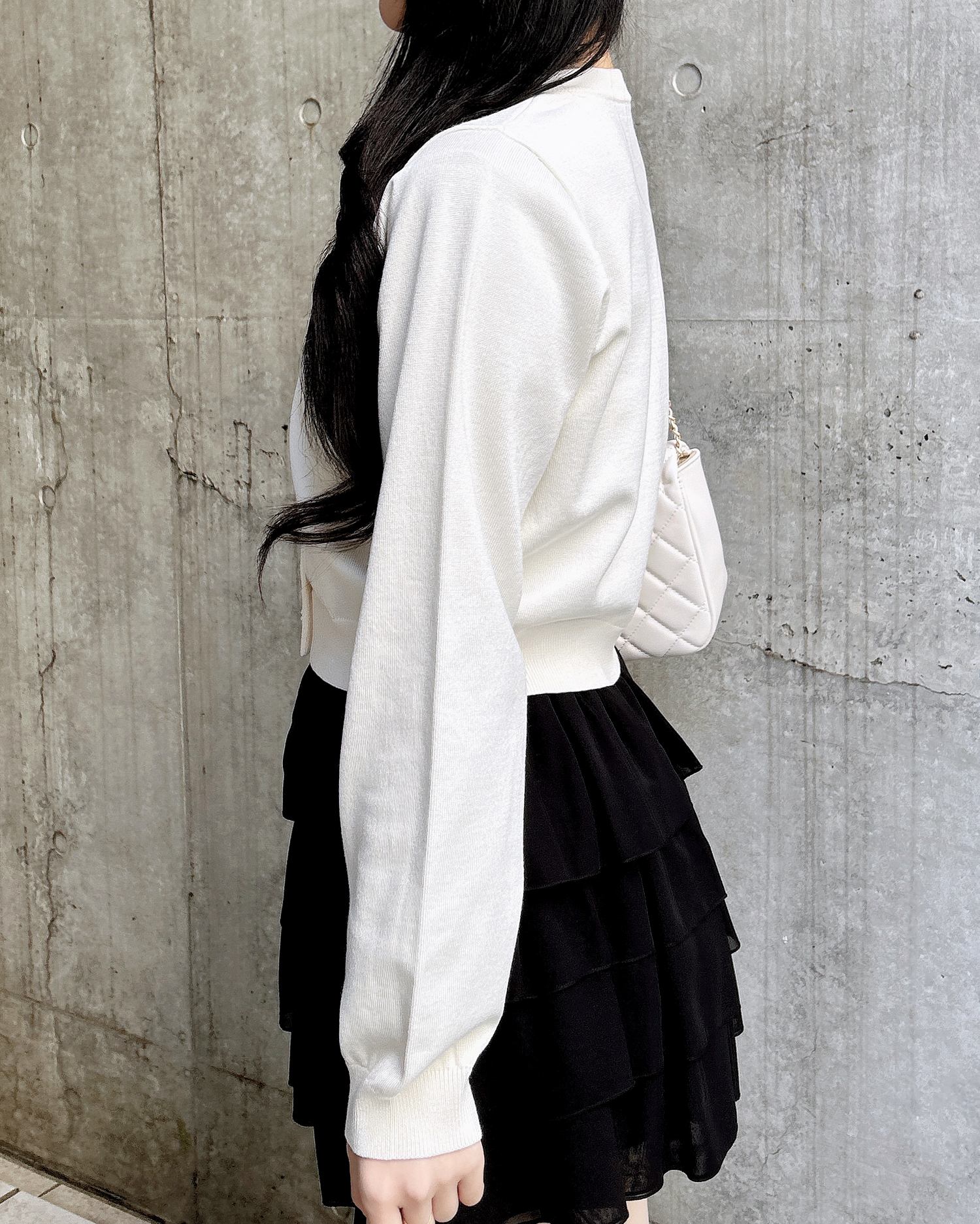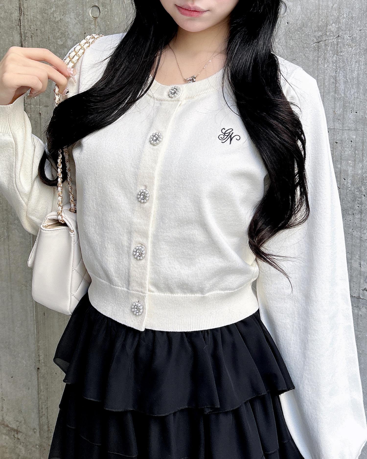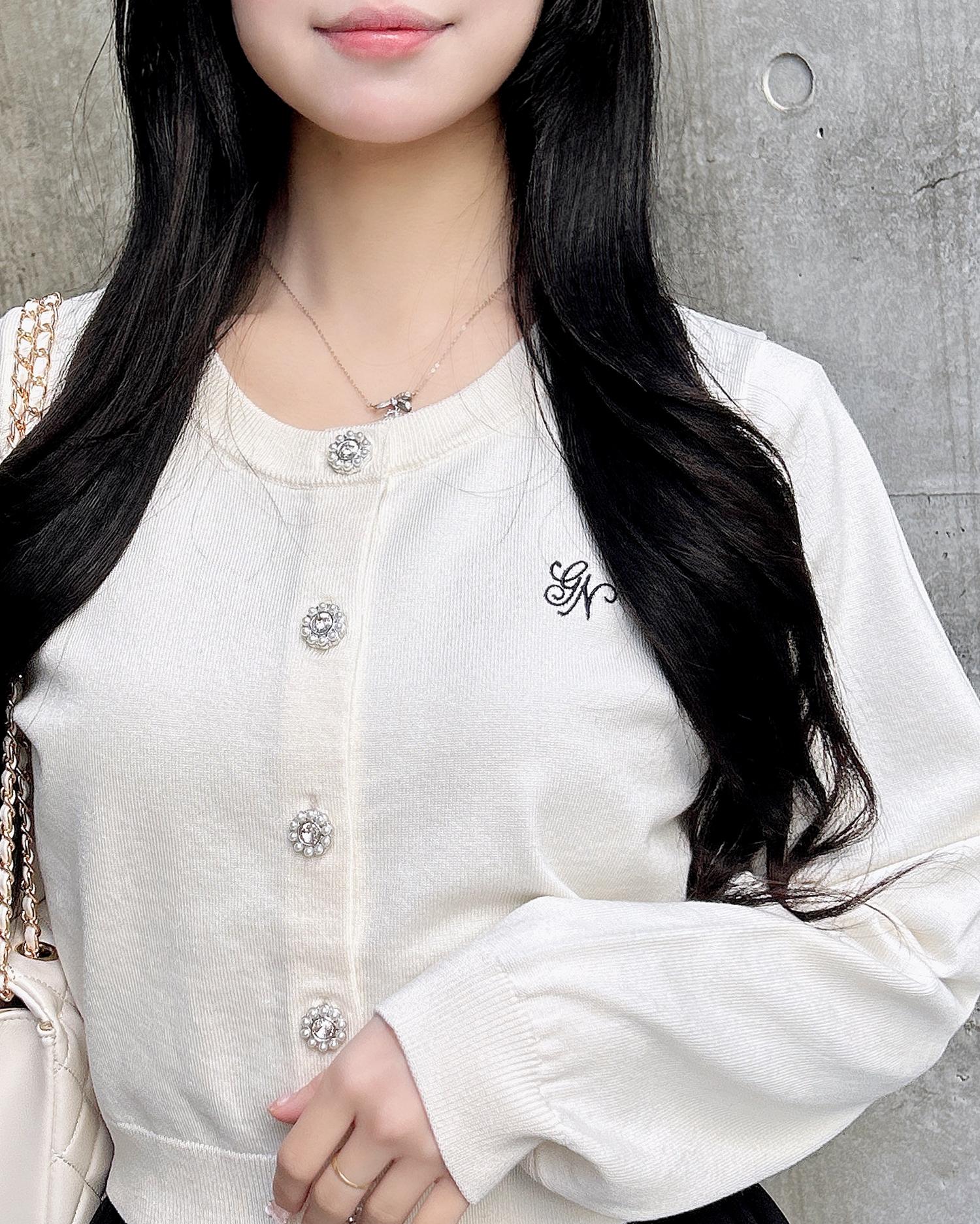 ビジューのボタンが華やかな印象を演出してくれるアイテムです。