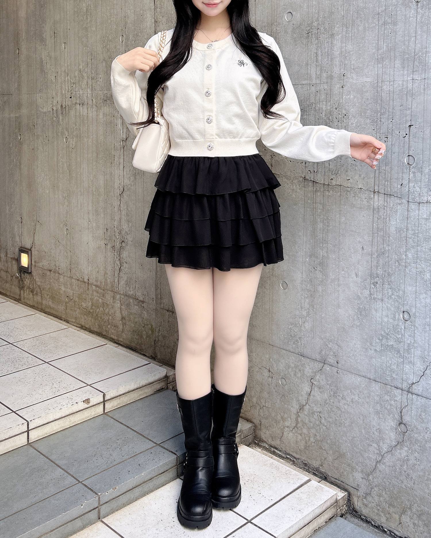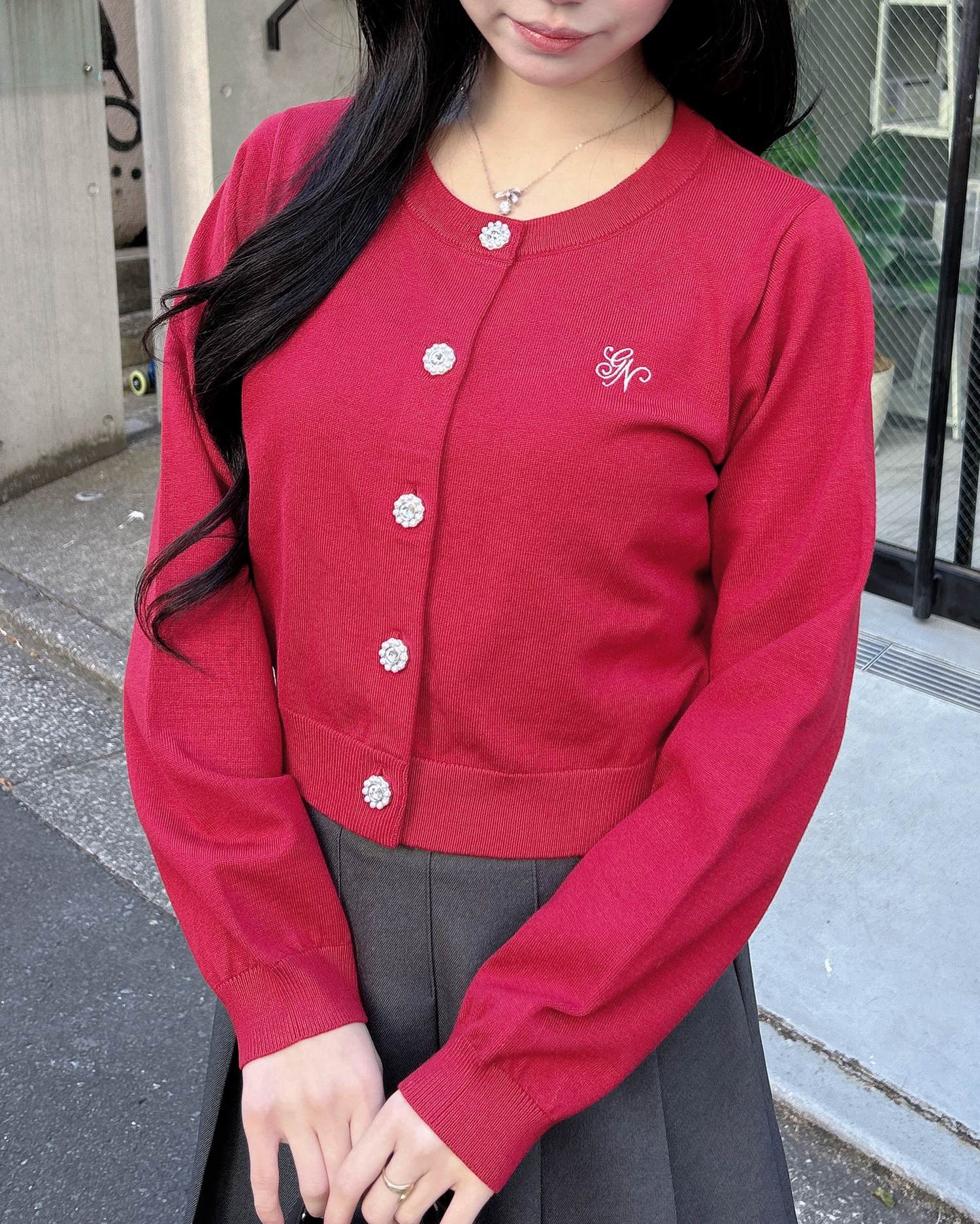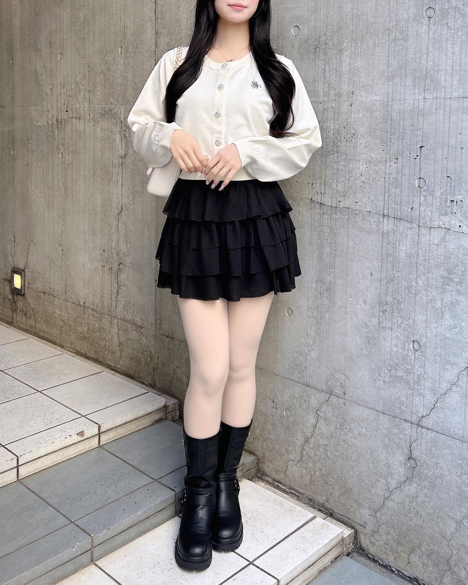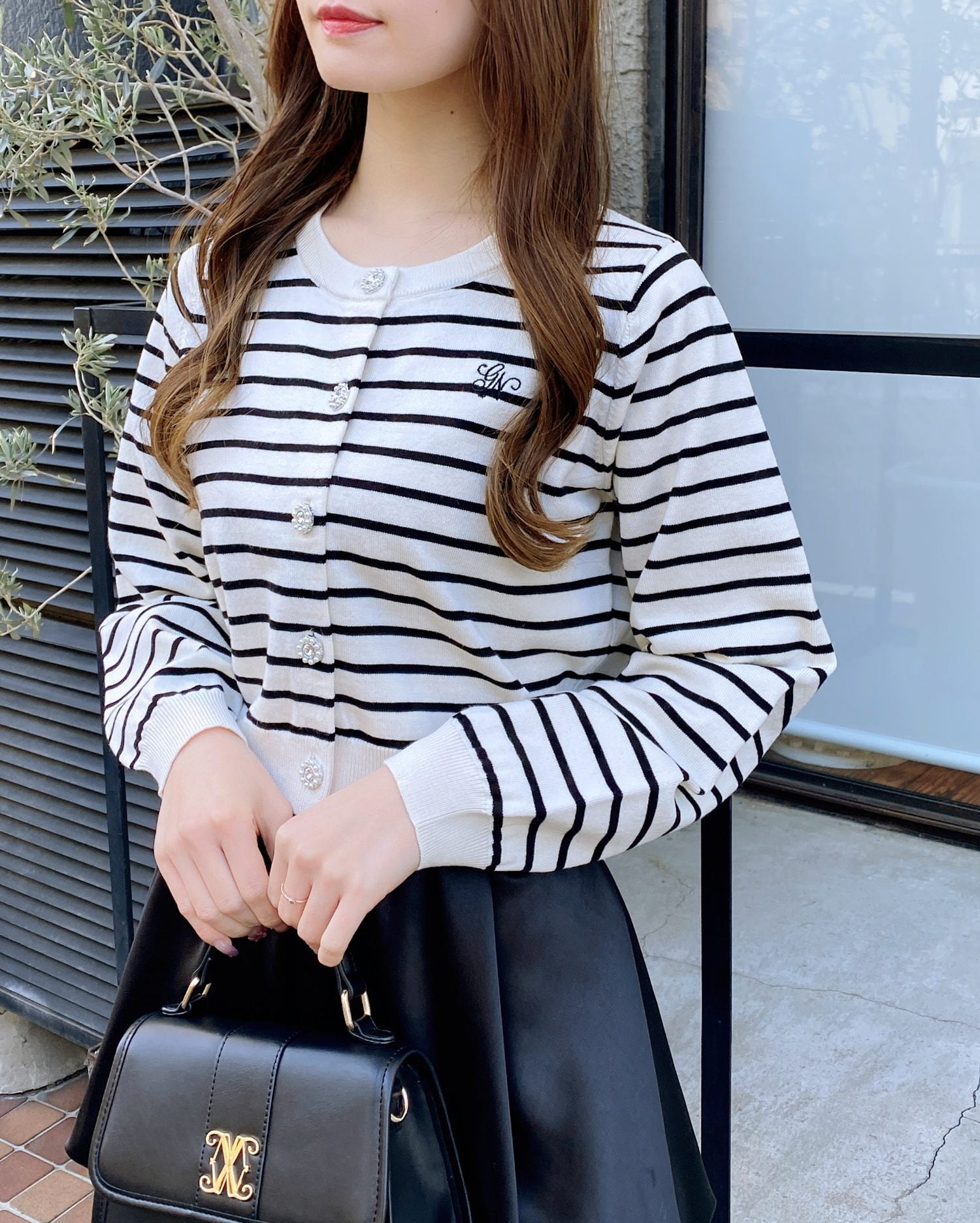 ビジューのボタンが華やかな印象を演出してくれるアイテムです。