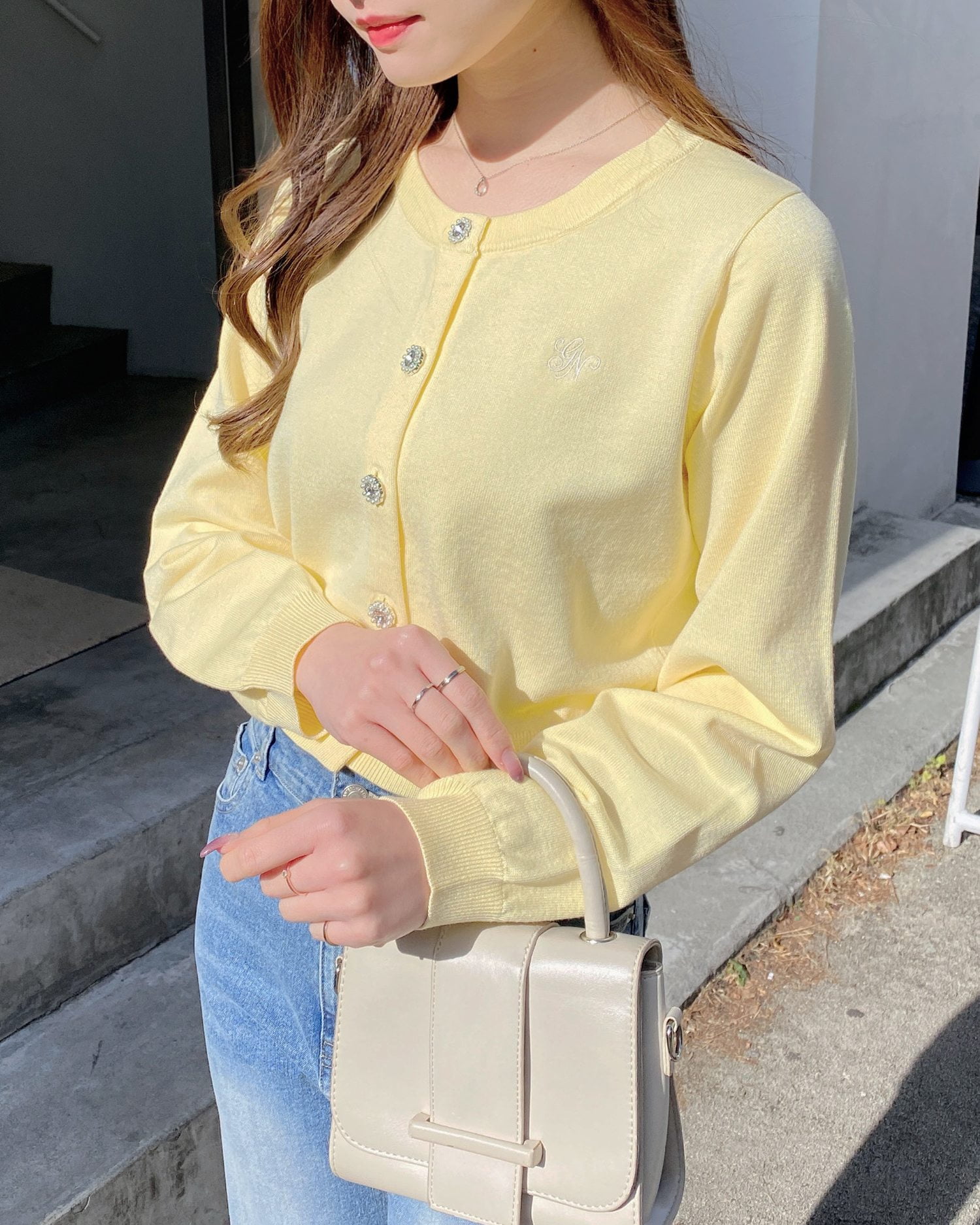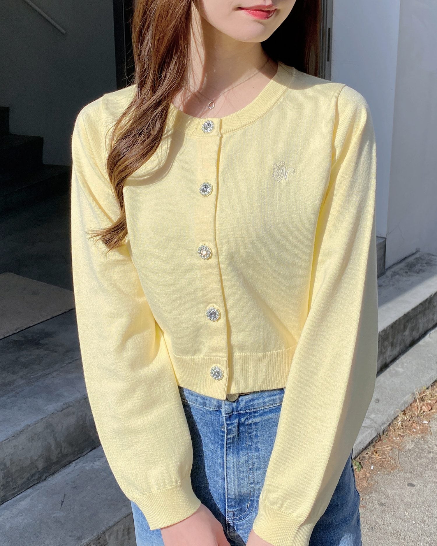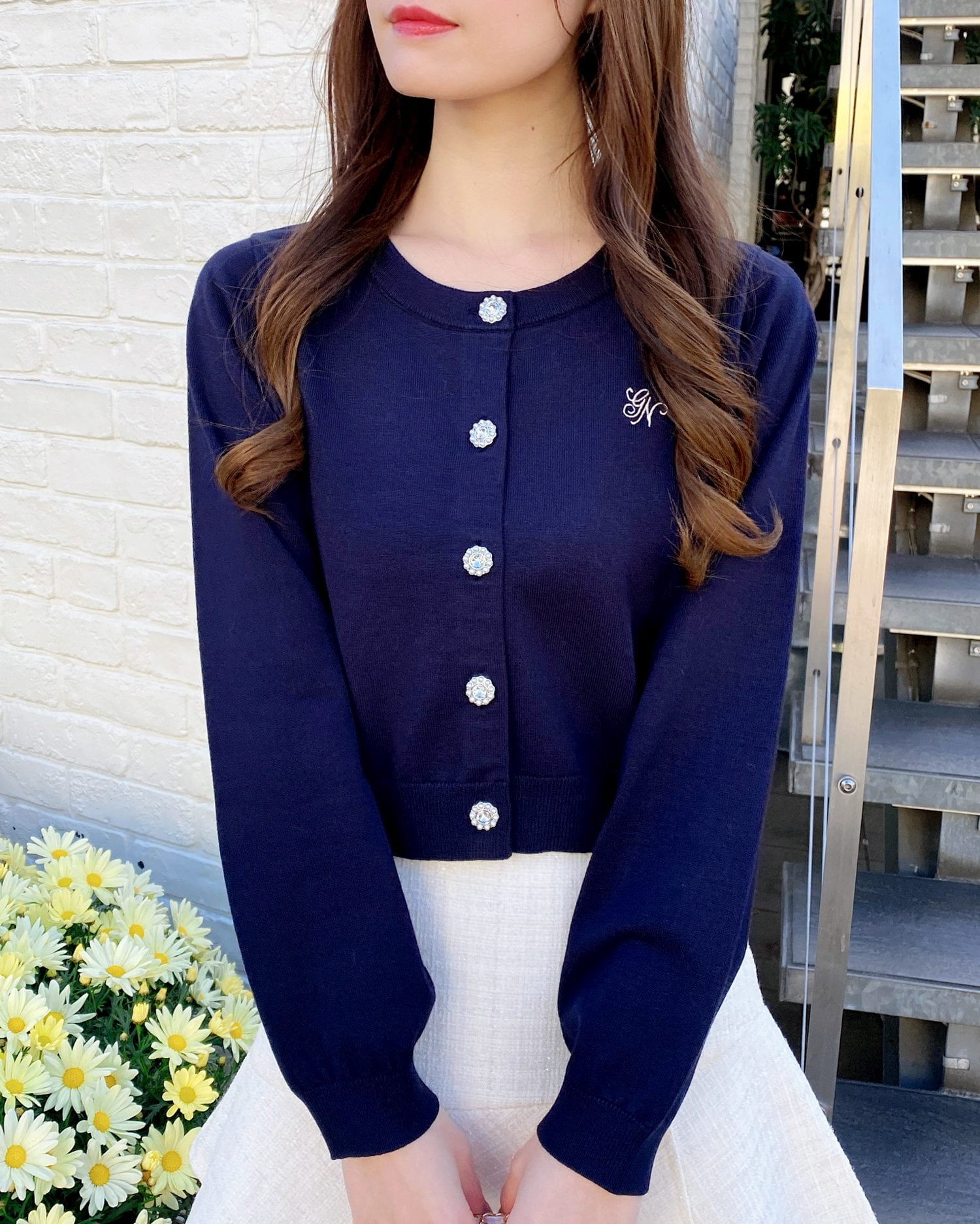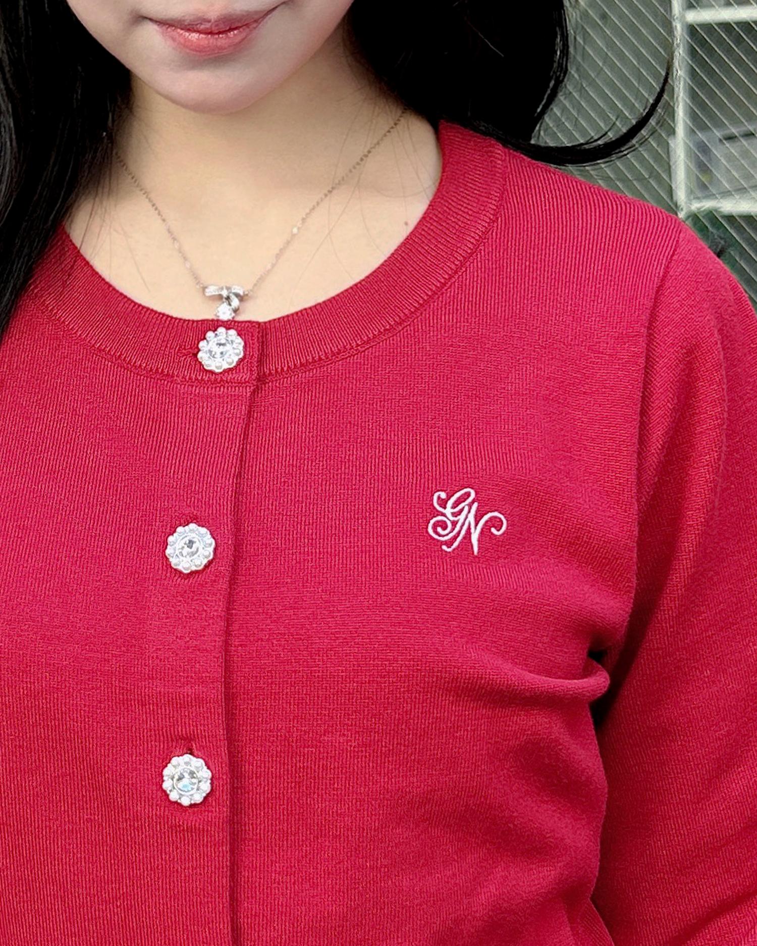 【ビジューボタンが華やかなニットカーディガン】