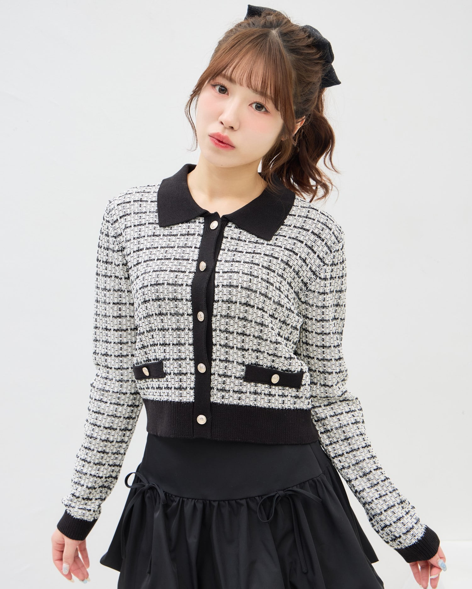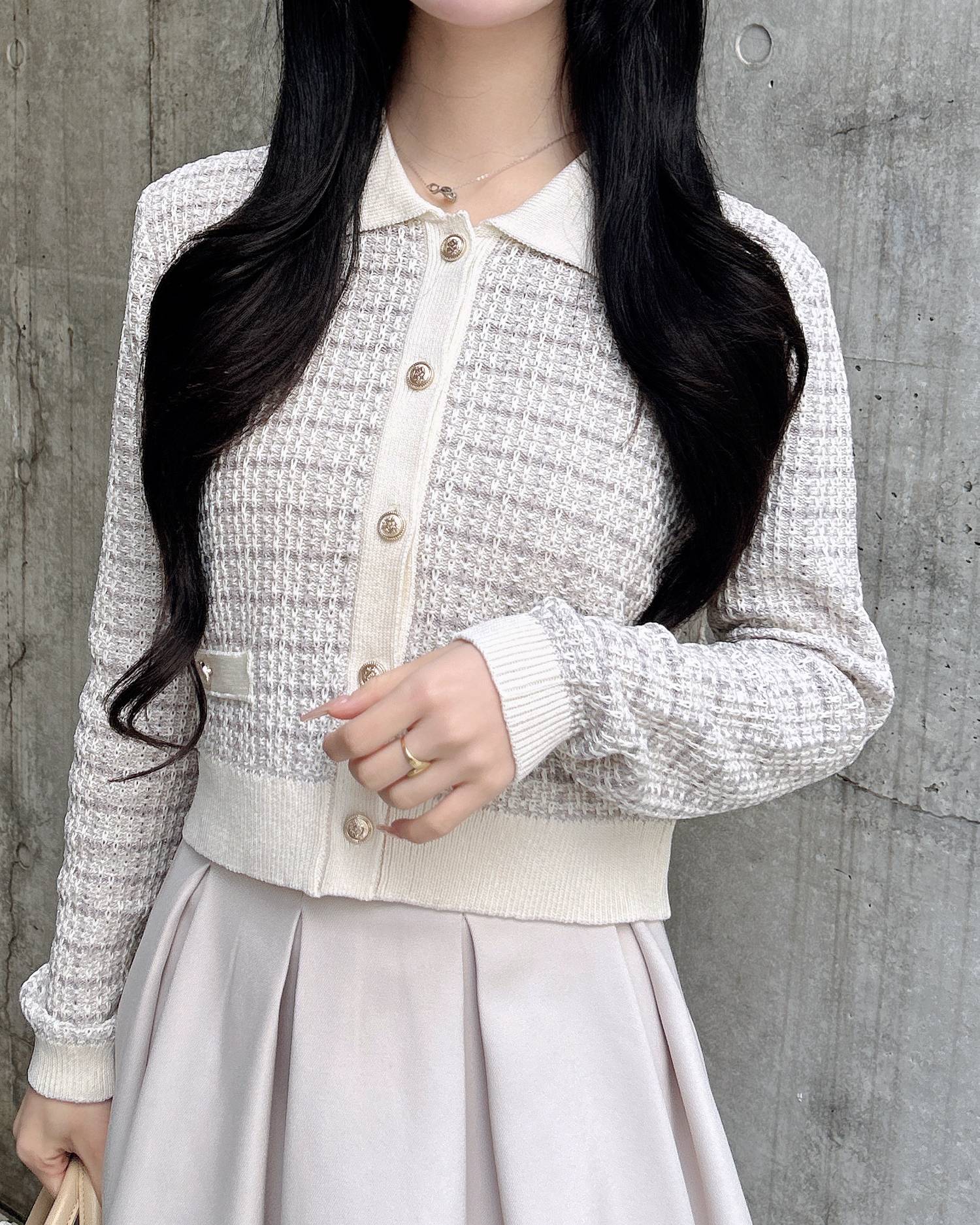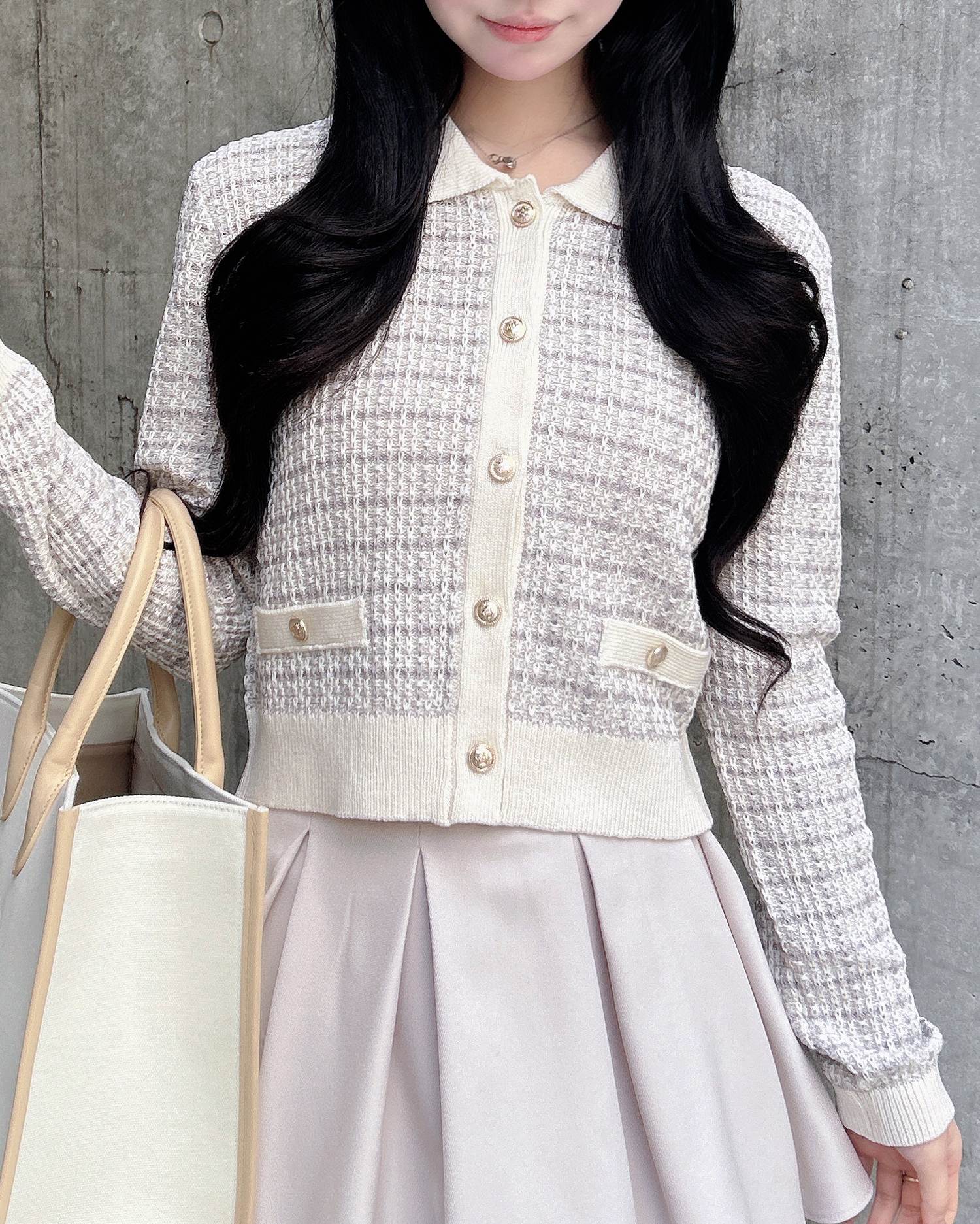 【クラシカルで上品な印象のツイードカーディガン】
