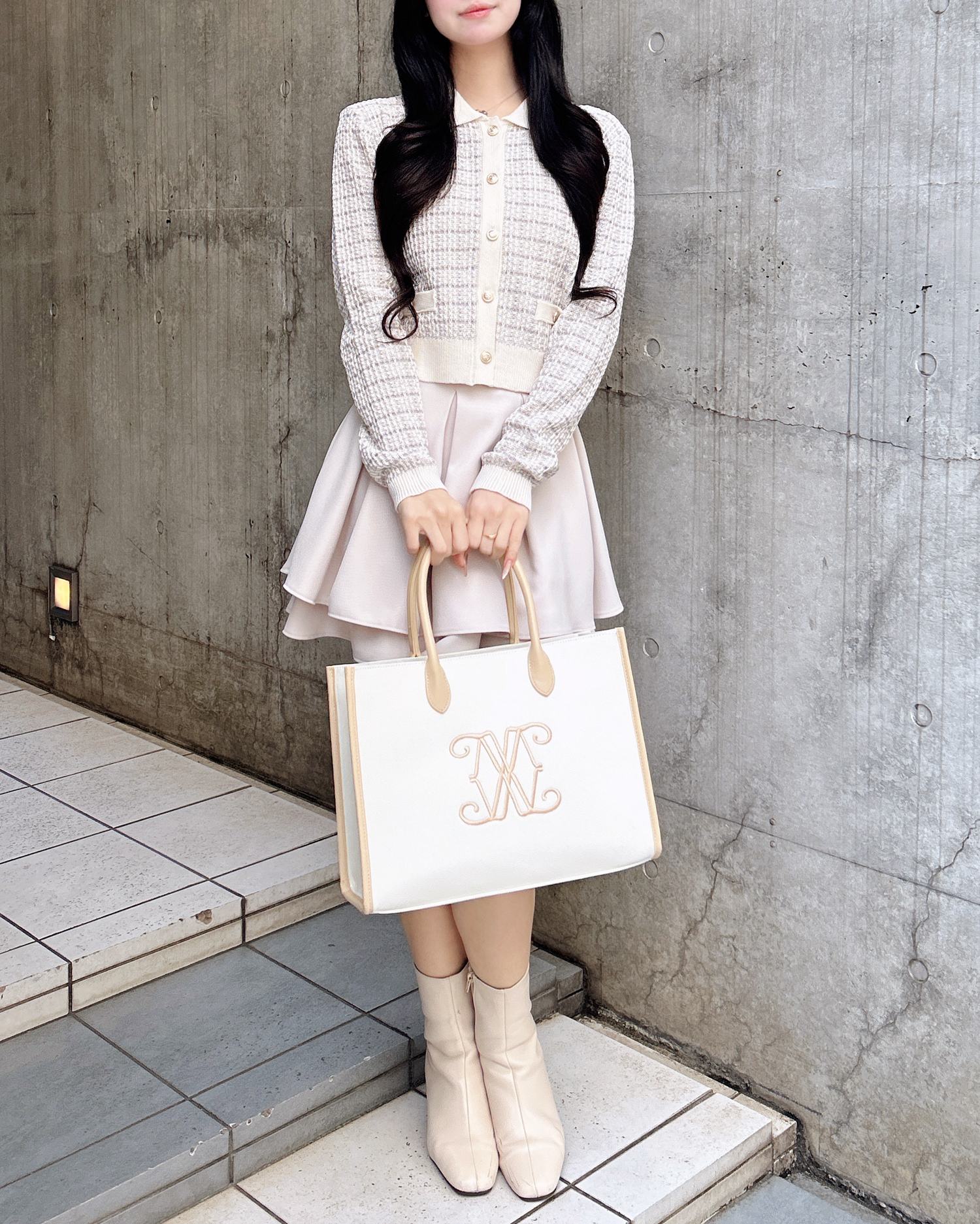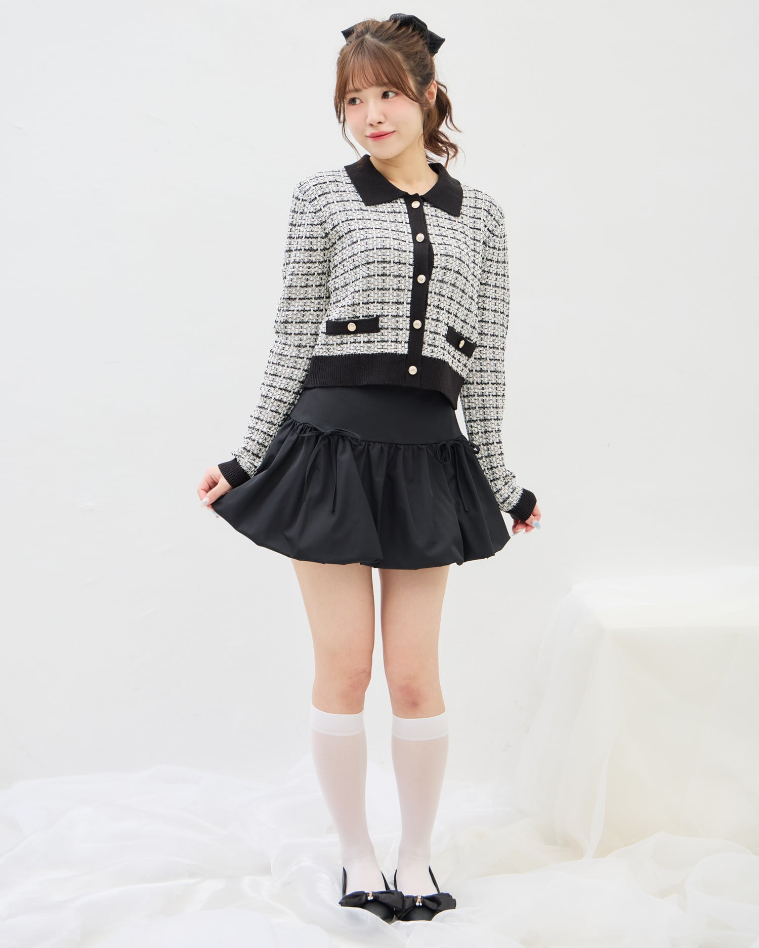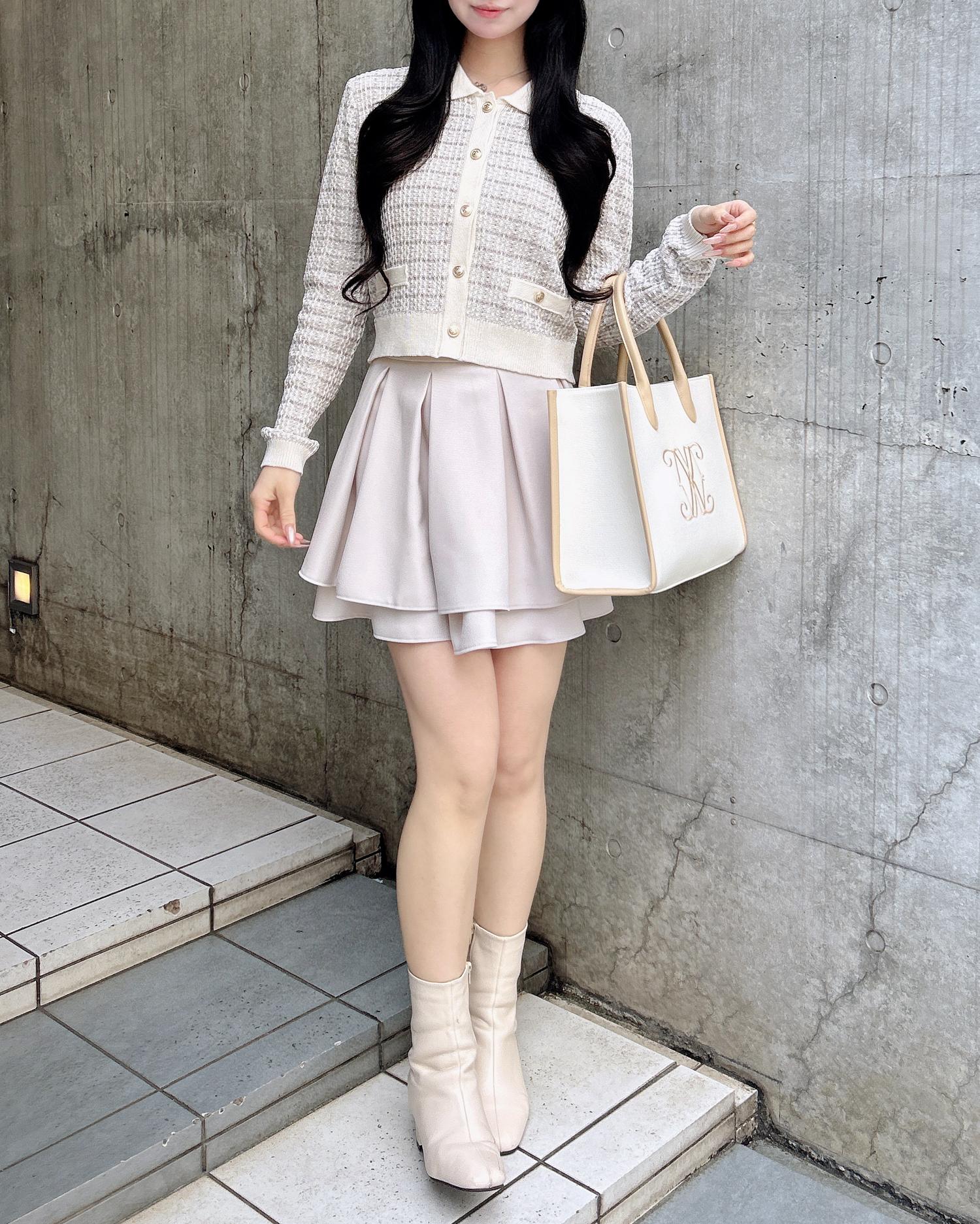 ミニスカートを合わせて大人ガーリーコーデに♡