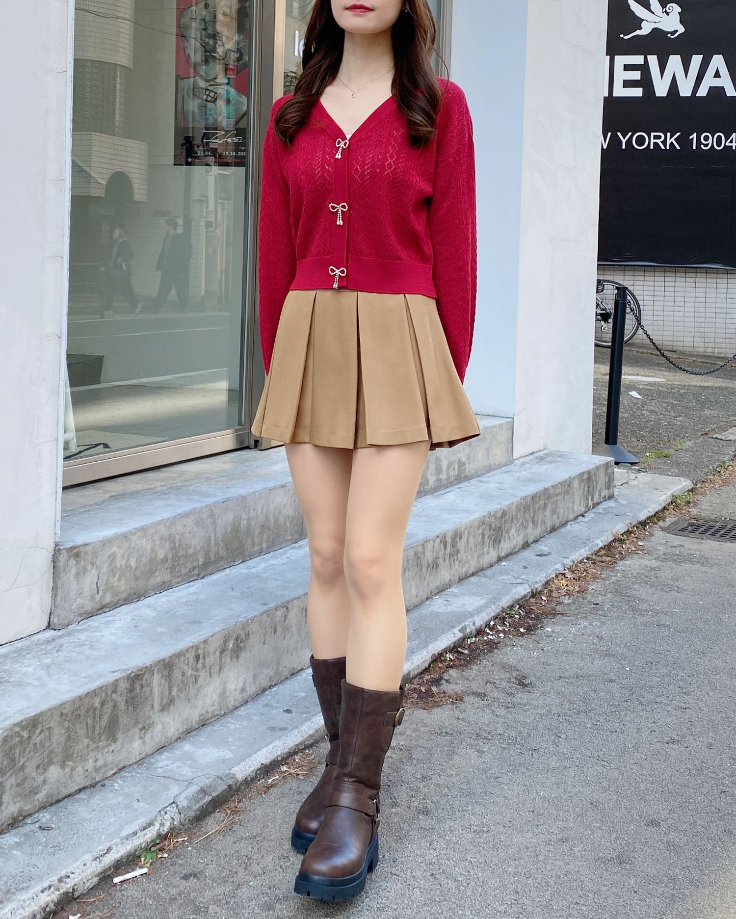 ミニスカートを合わせた王道ガーリーコーデもおすすめ◎