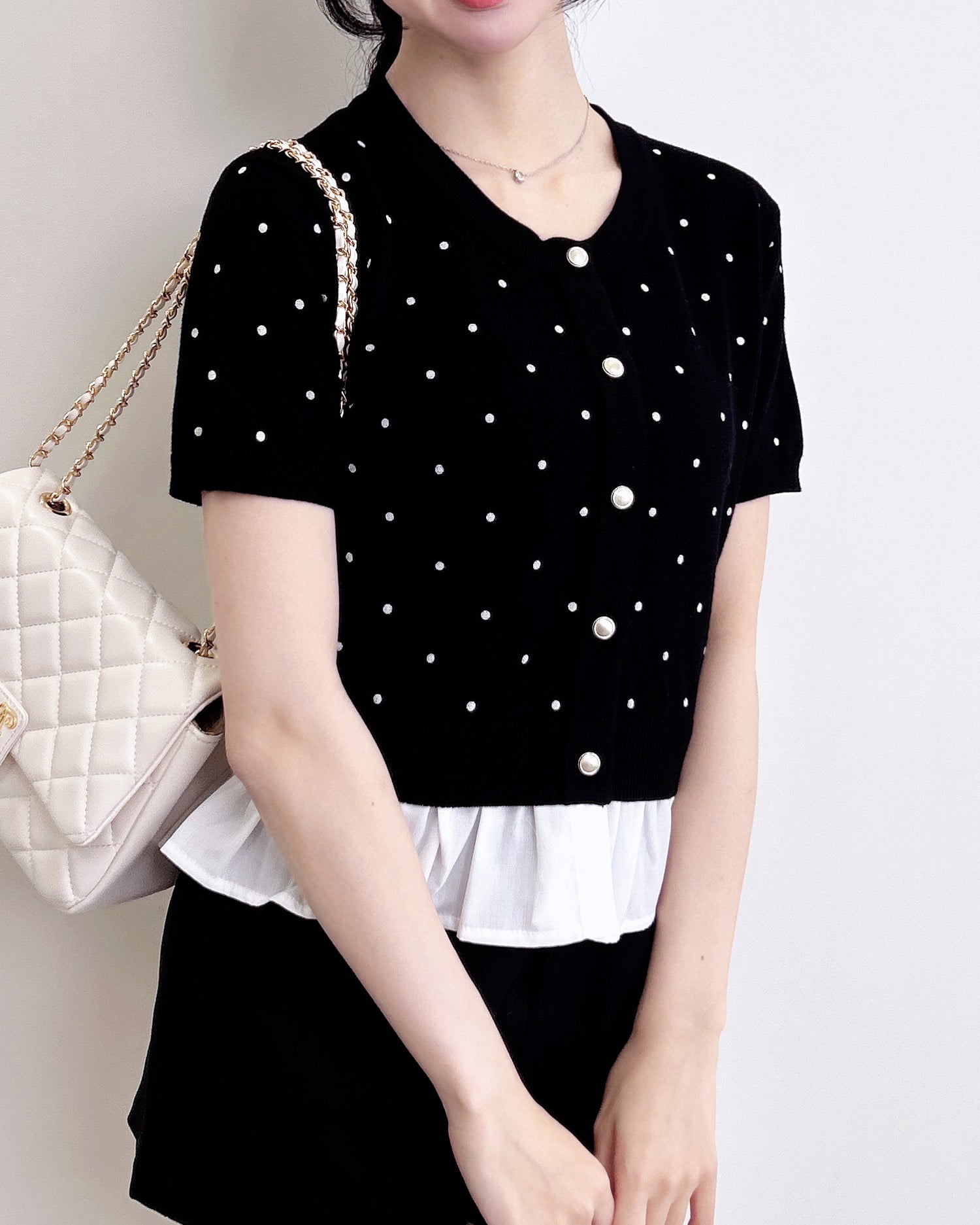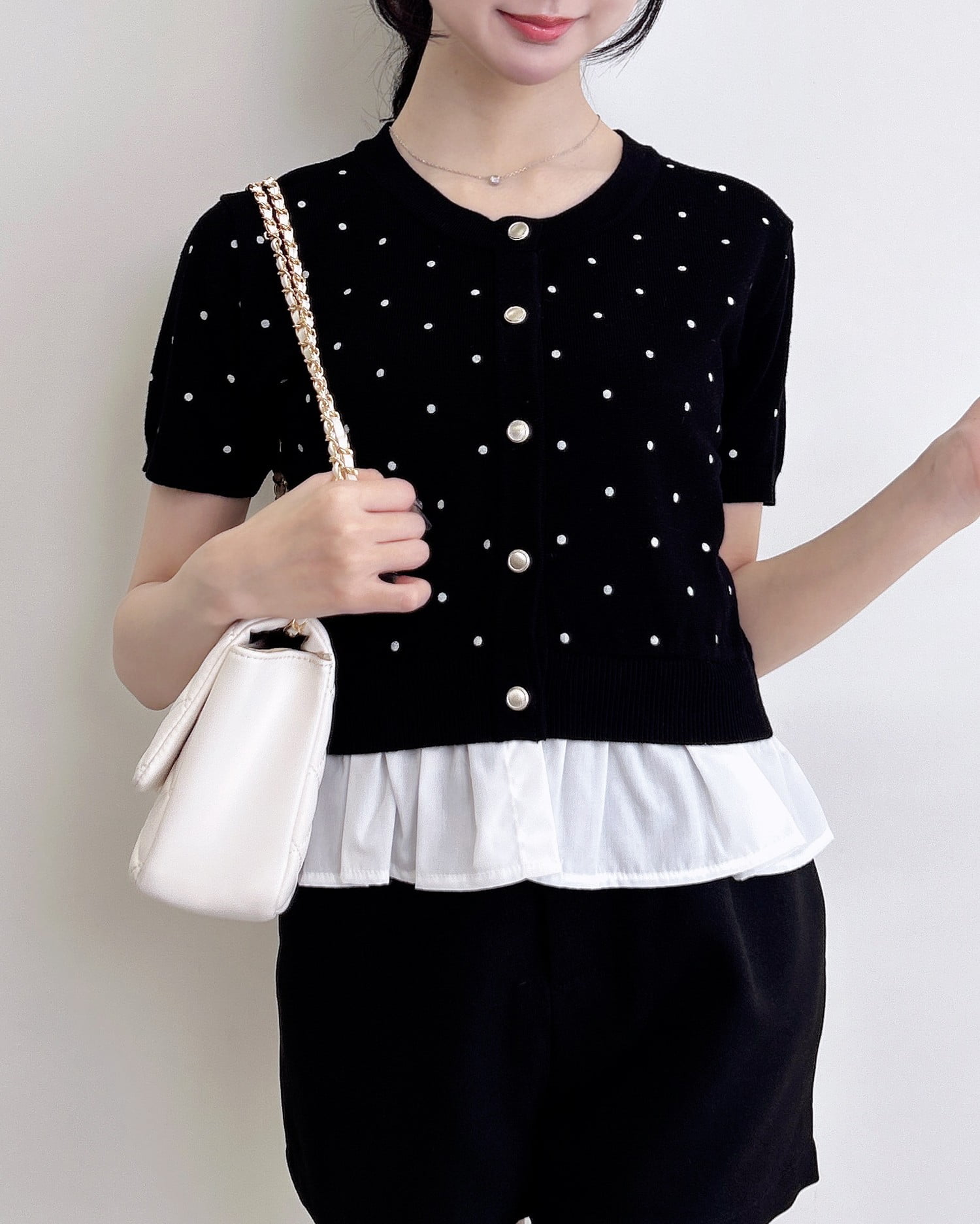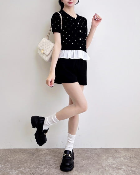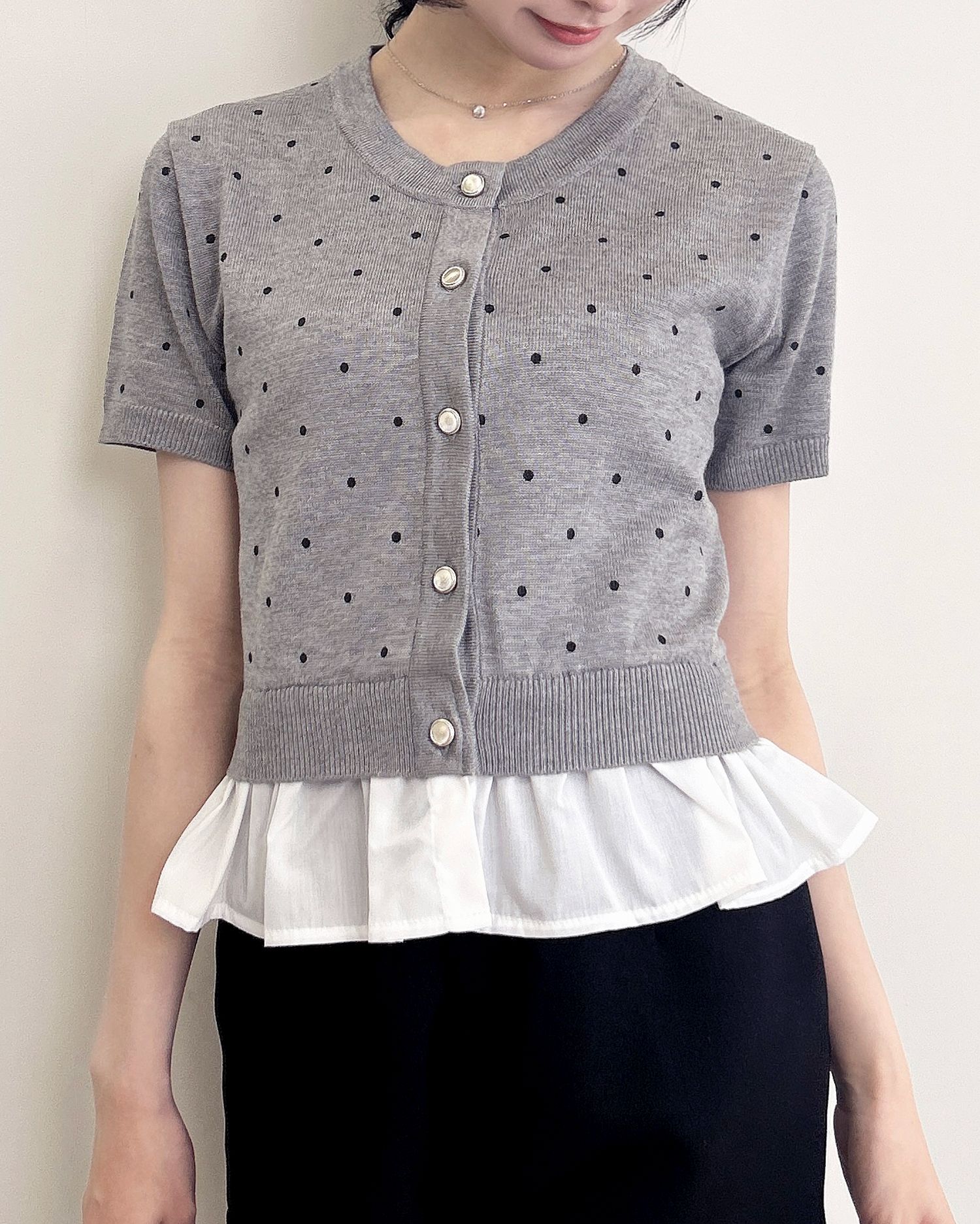 【さりげない甘さが可愛いレイヤード風トップス】