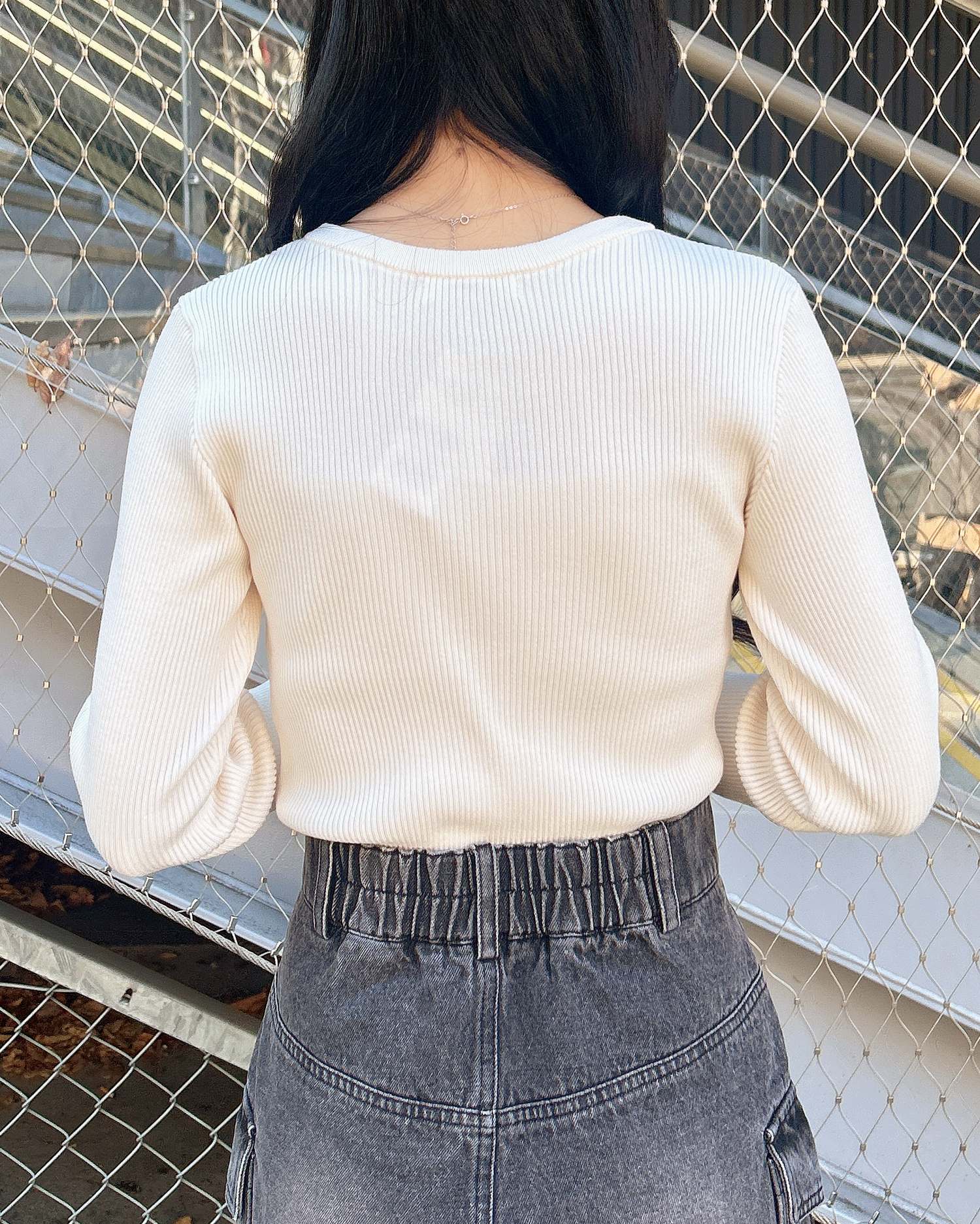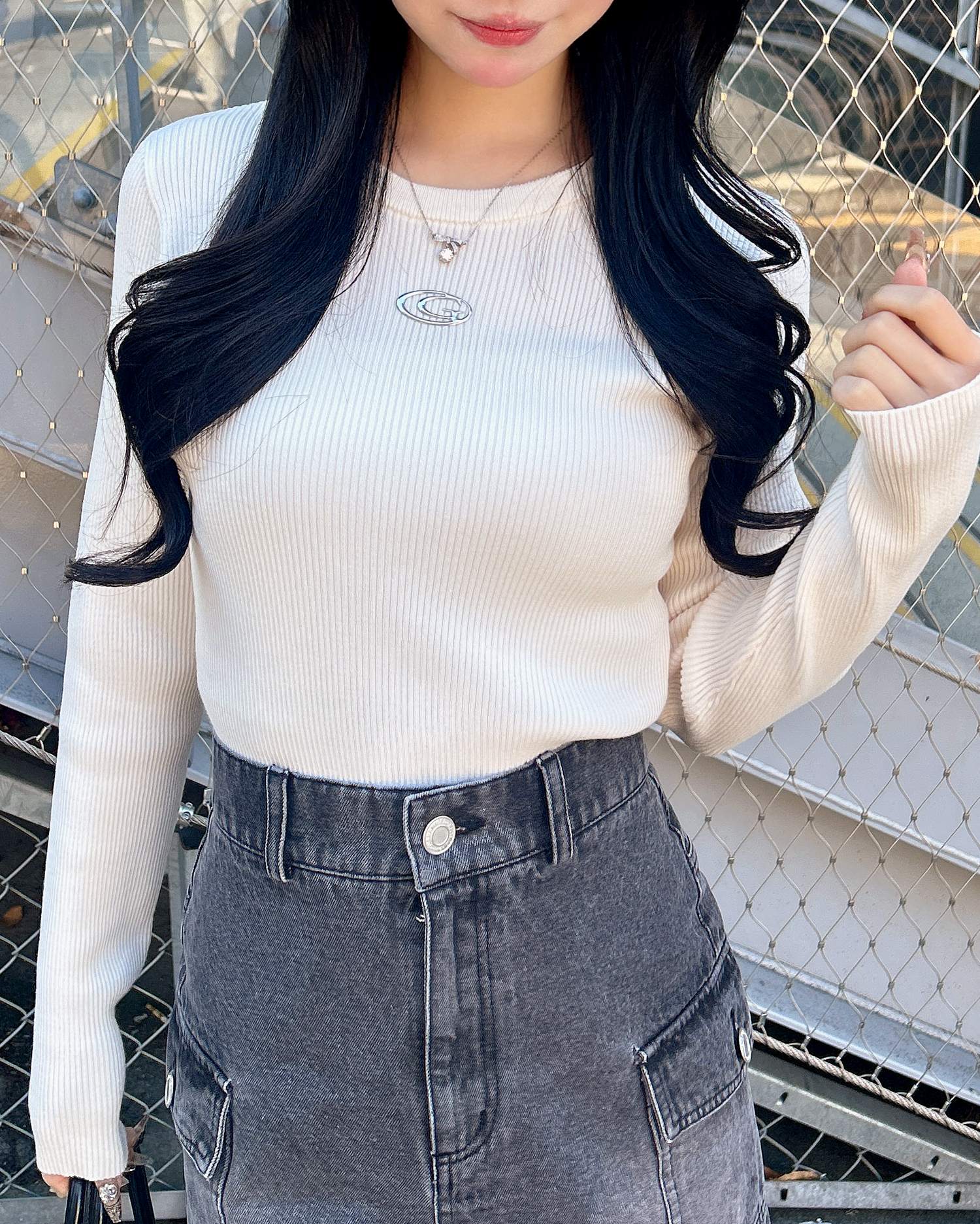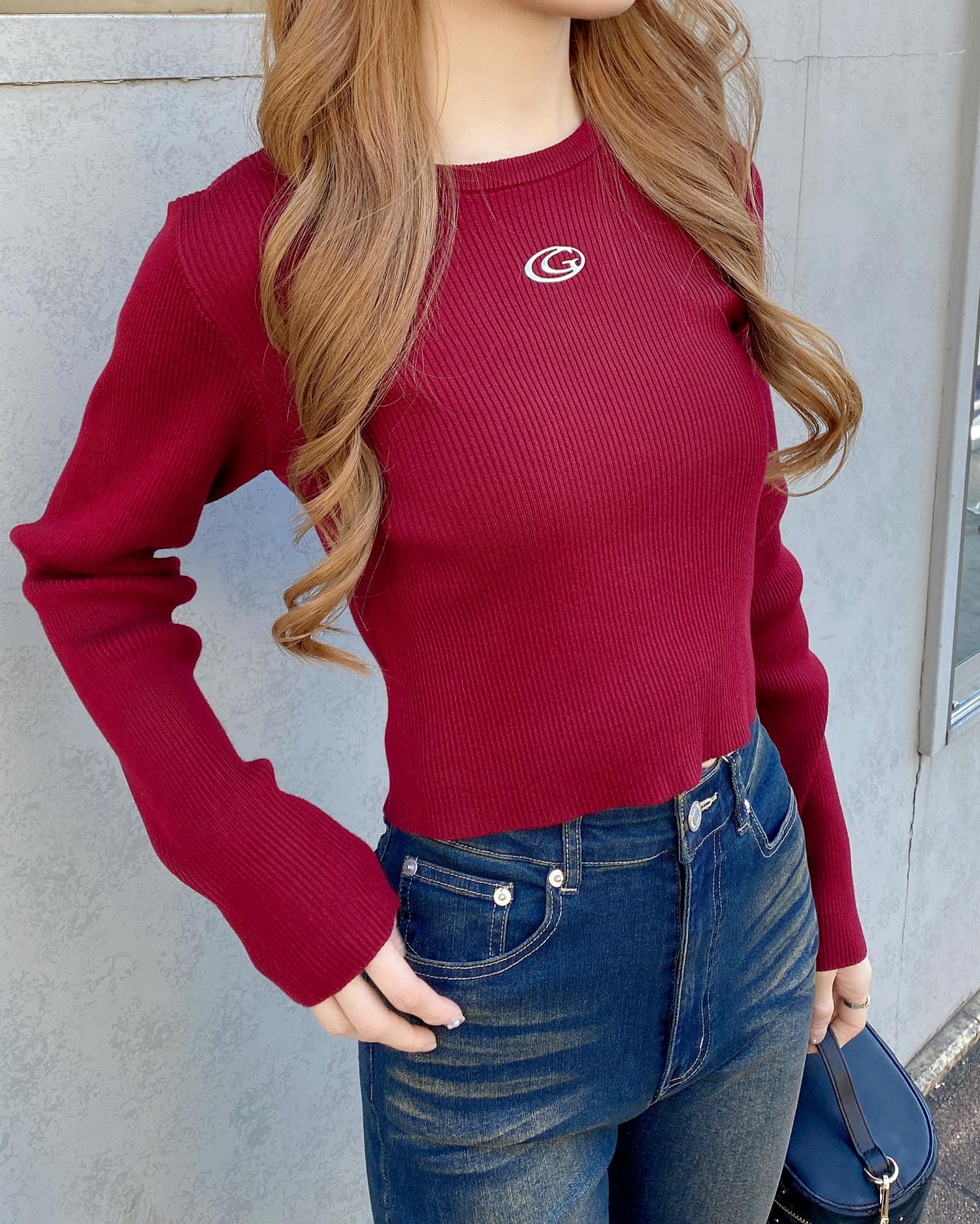 フロントにあしらったメタルプリントがポイントのリブニットです。