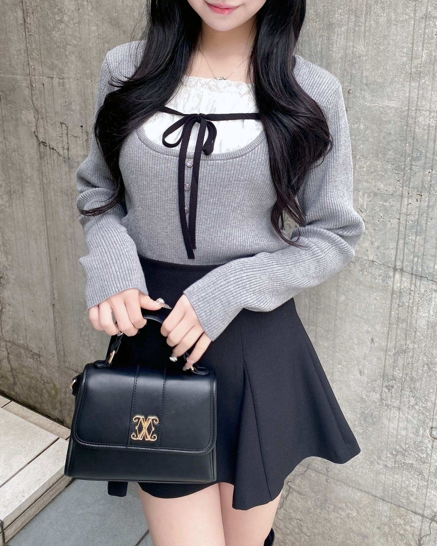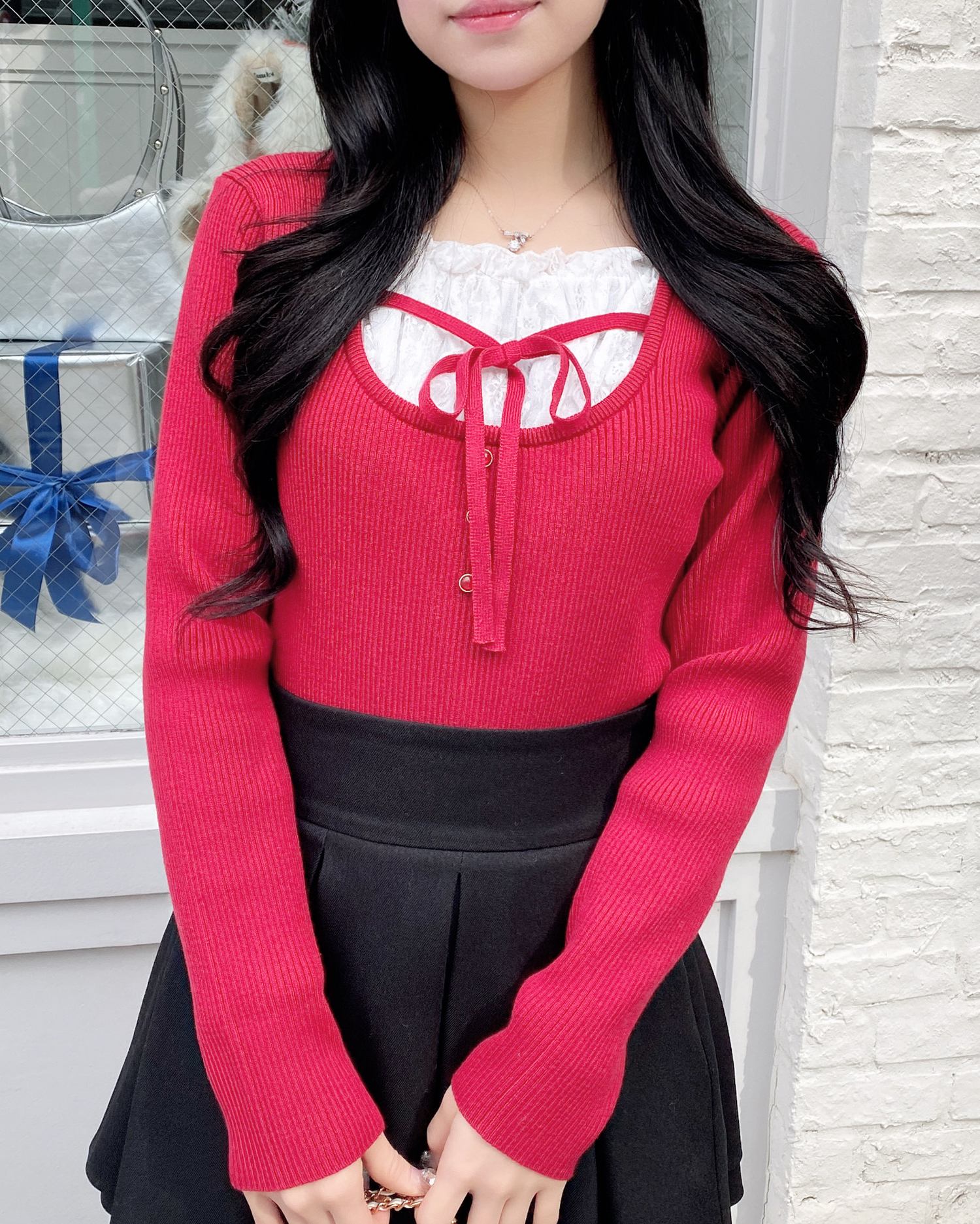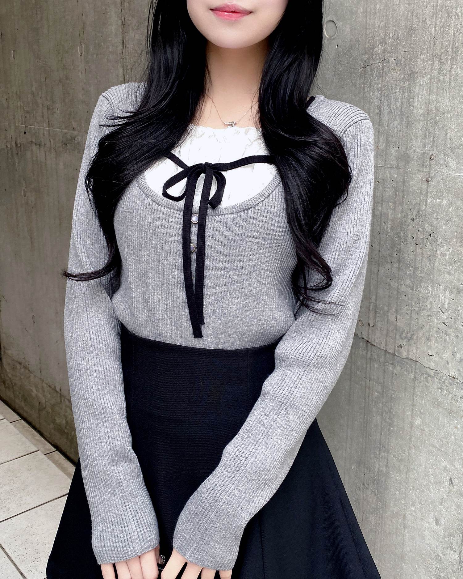 【胸元のレース×リボンがかわいい♡ドッキングニット】
