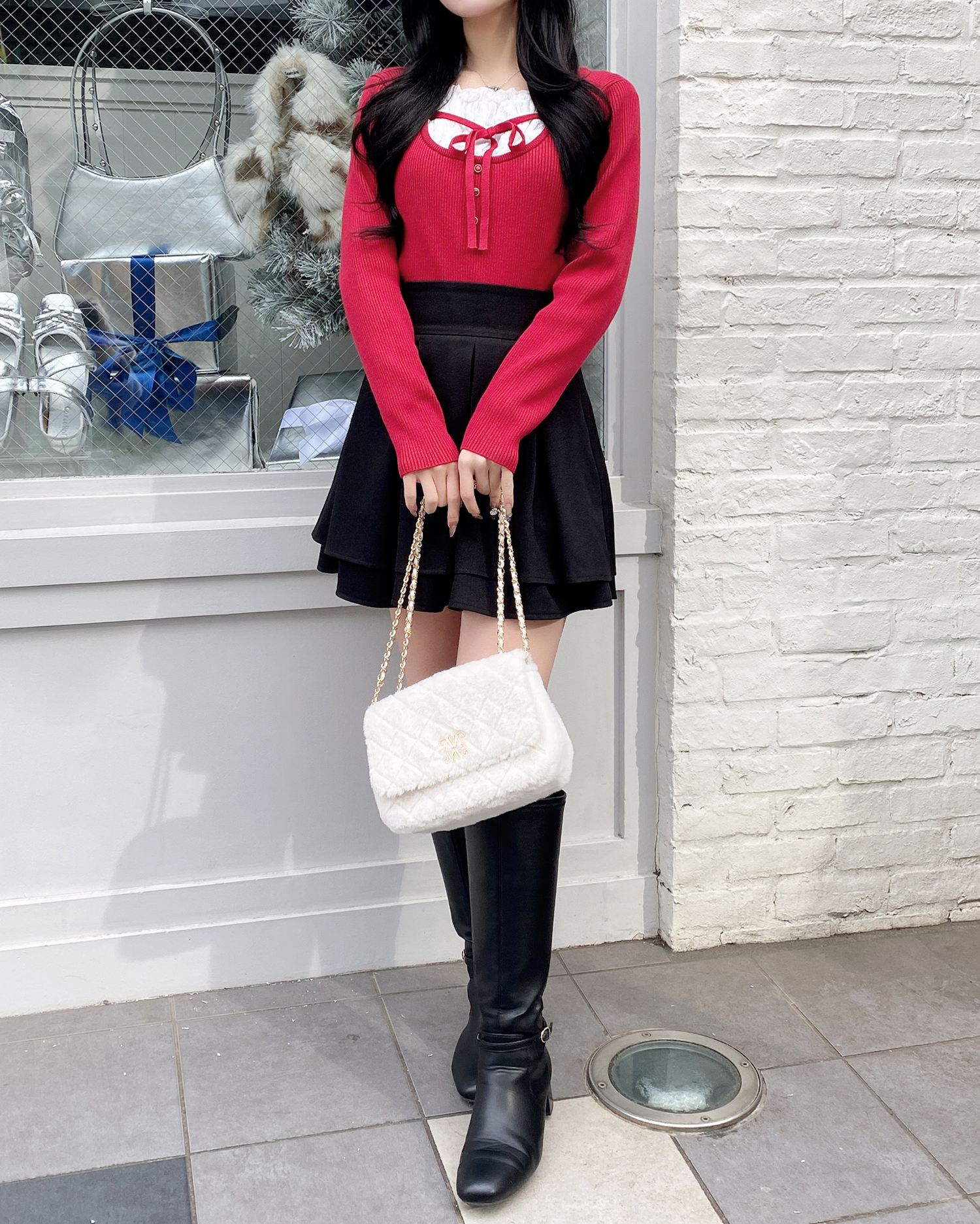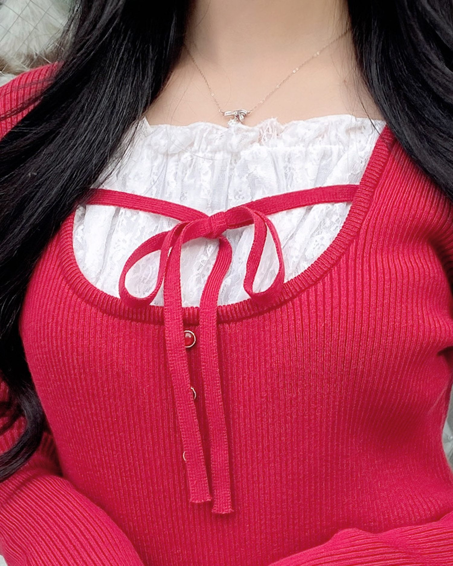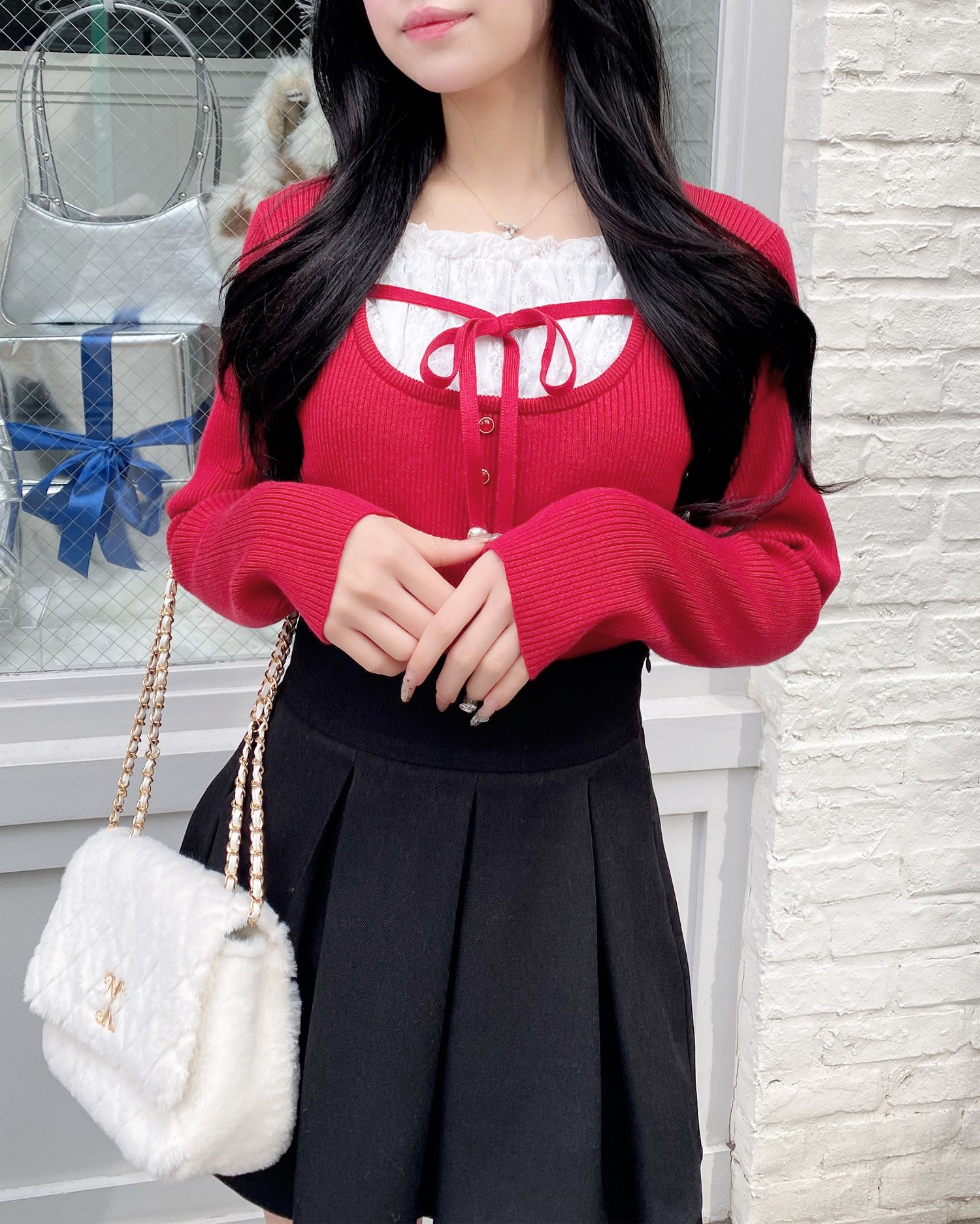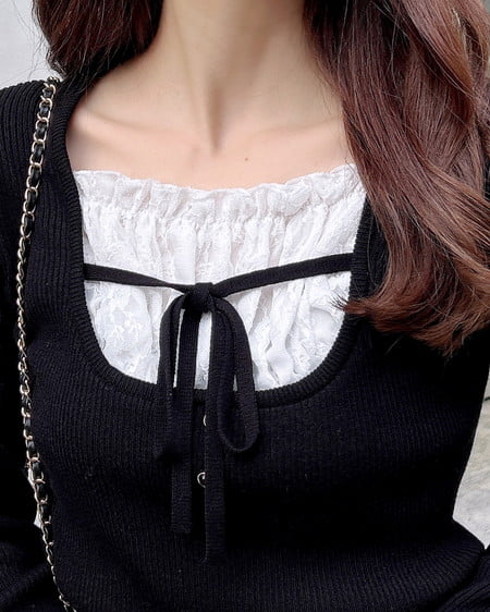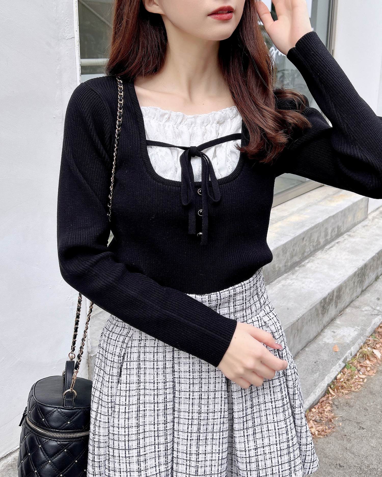 【胸元のレース×リボンがかわいい♡ドッキングニット】