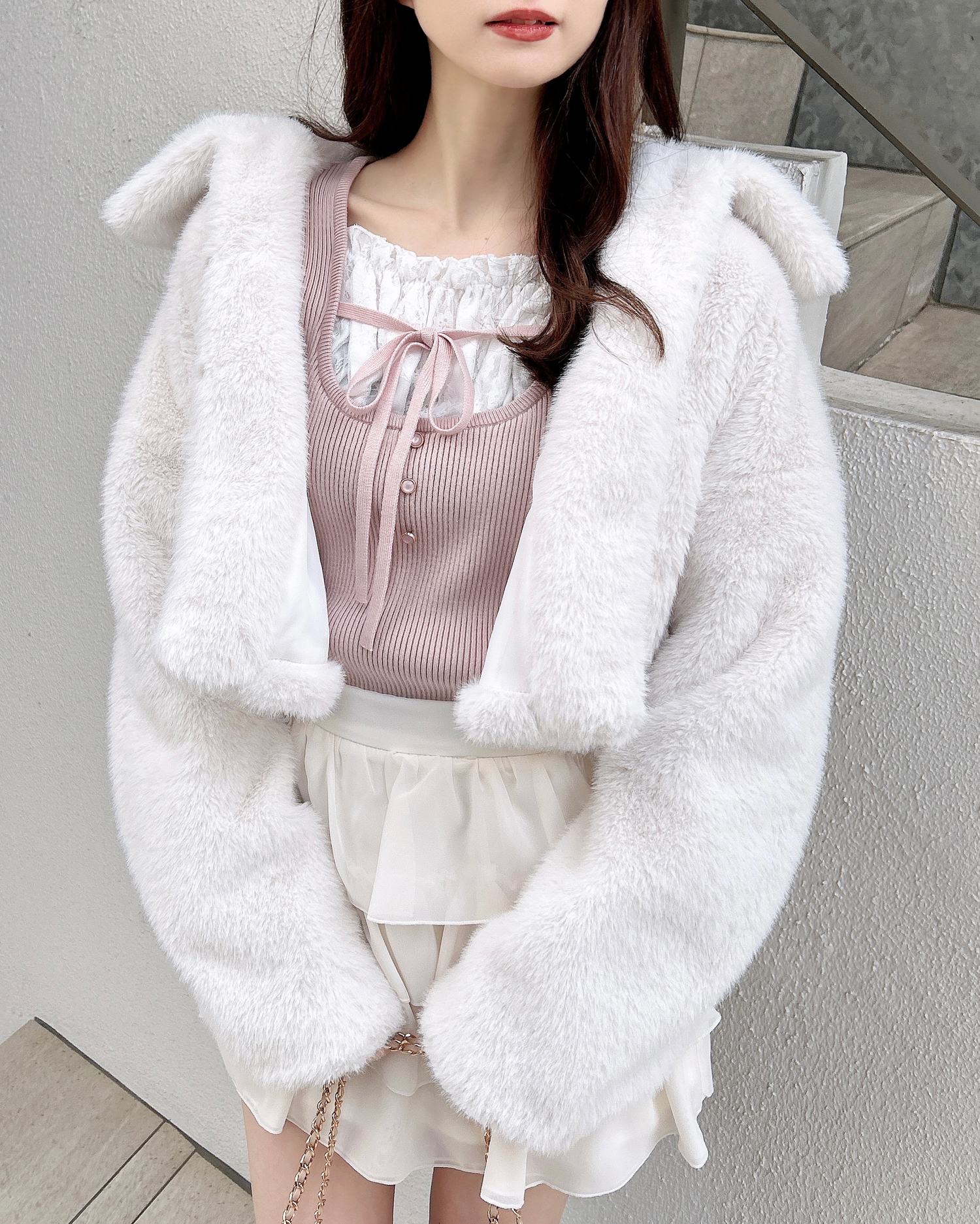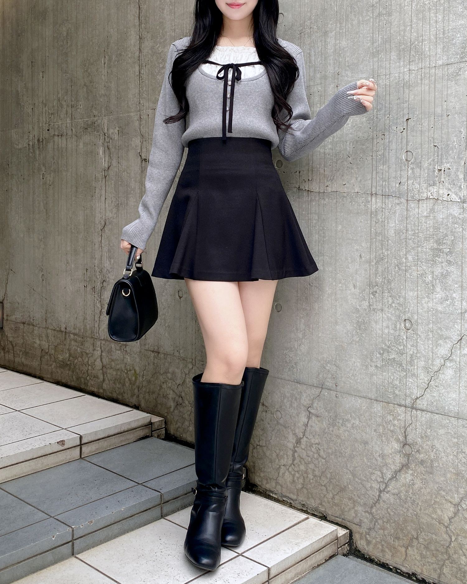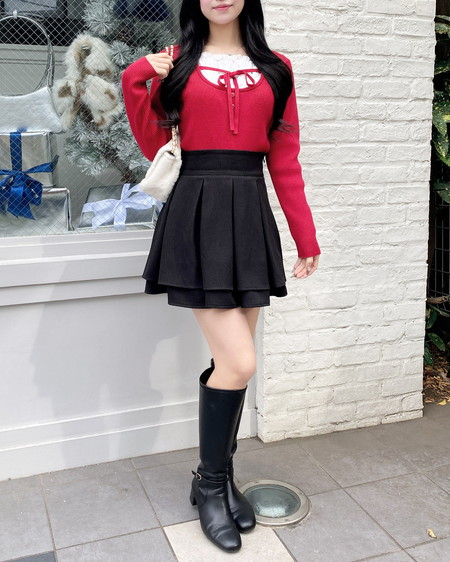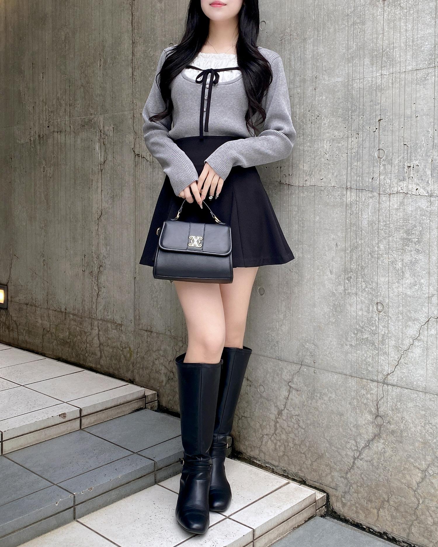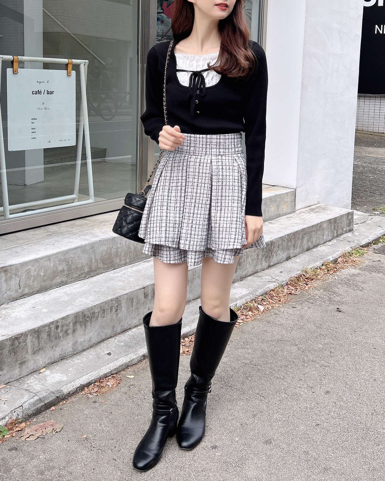ガーリーなデザインのアイテムなので、フリルやタックの入ったミニスカートとの相性は抜群!