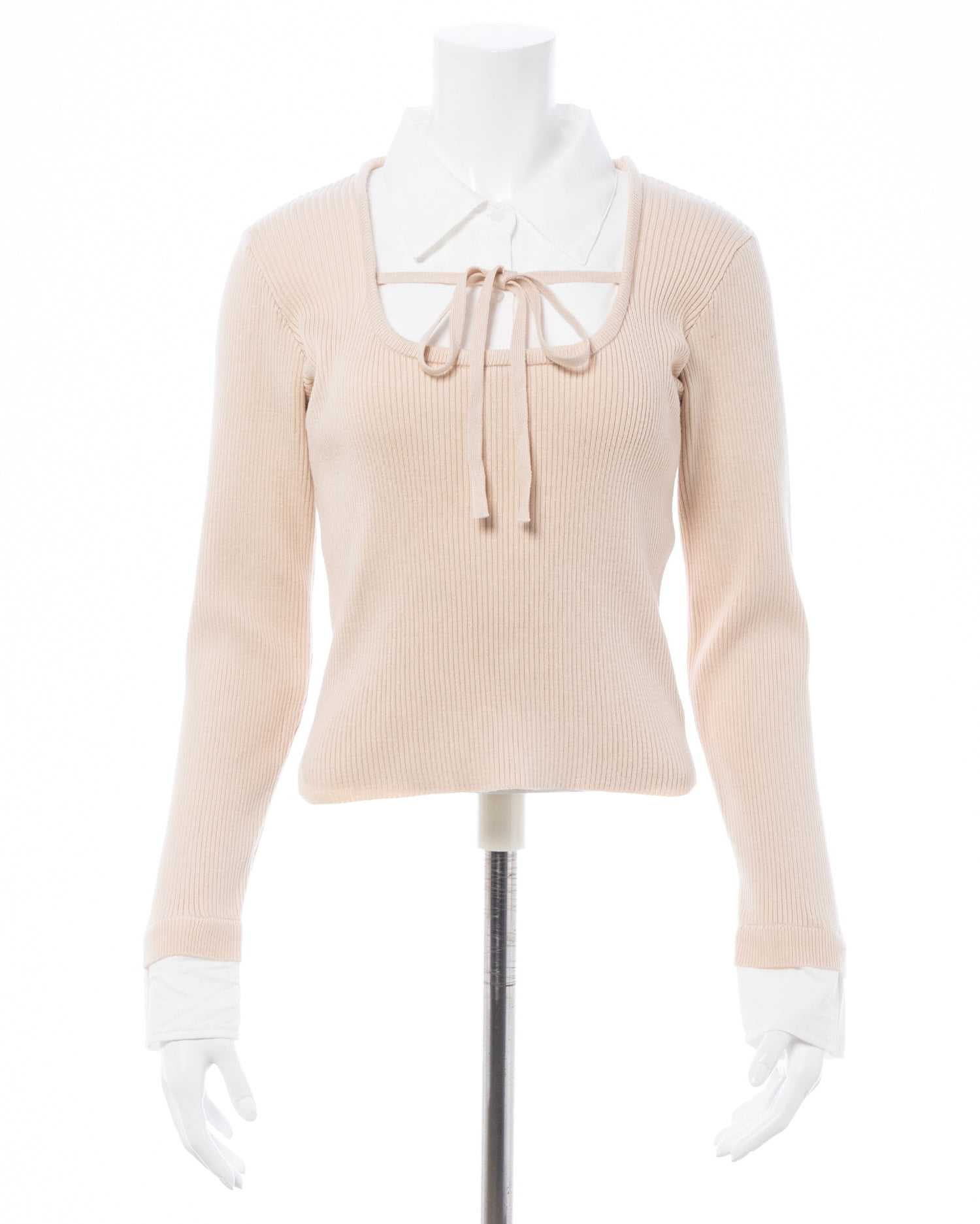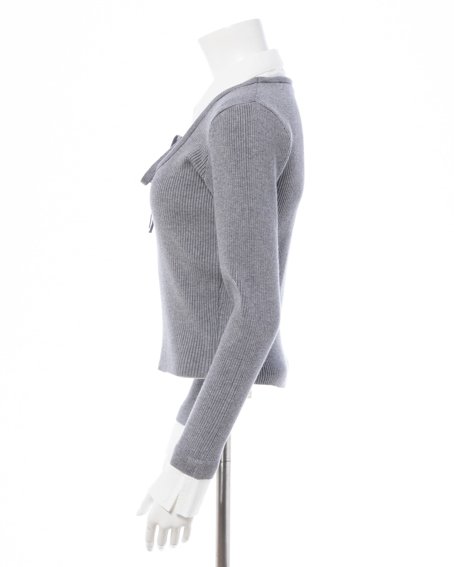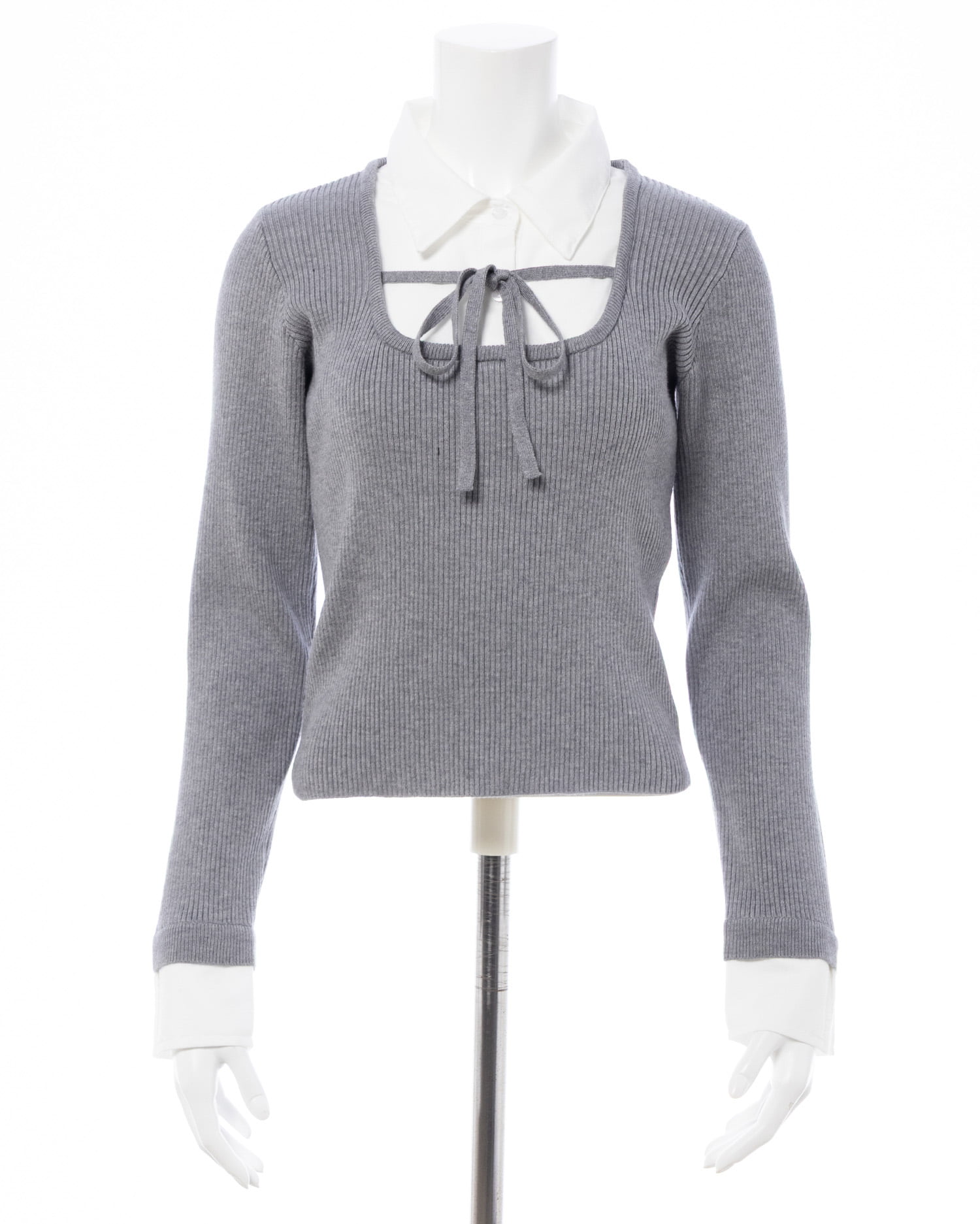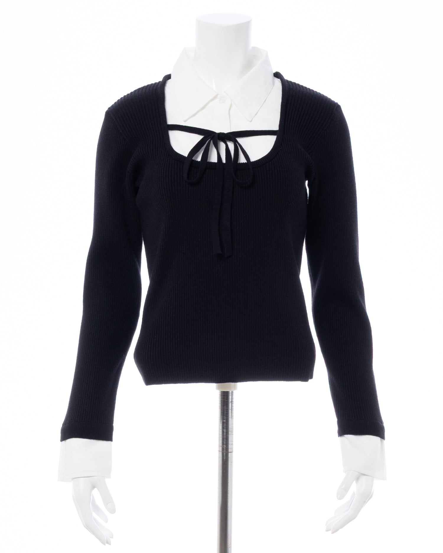 【シャツレイヤード風デザイン×胸元のリボンがかわいい♡ドッキングニット】