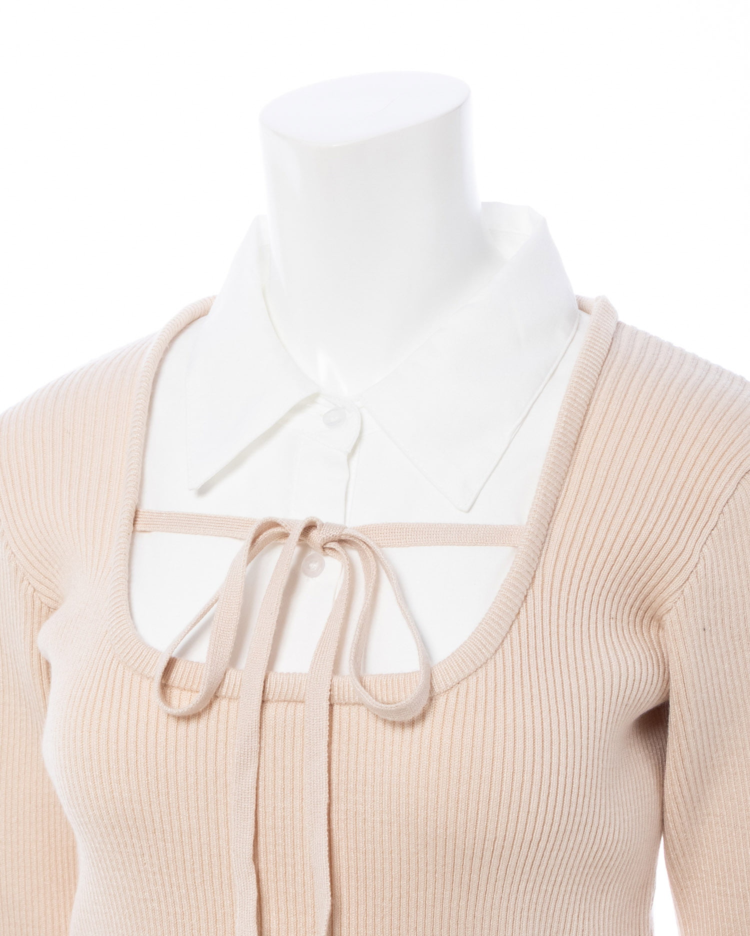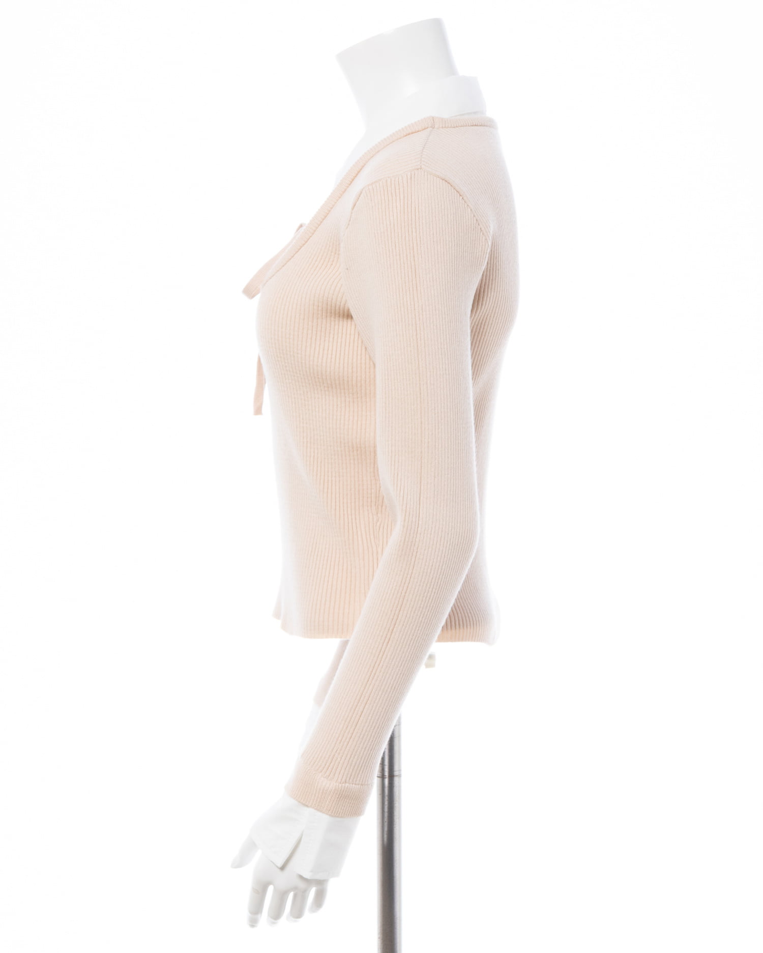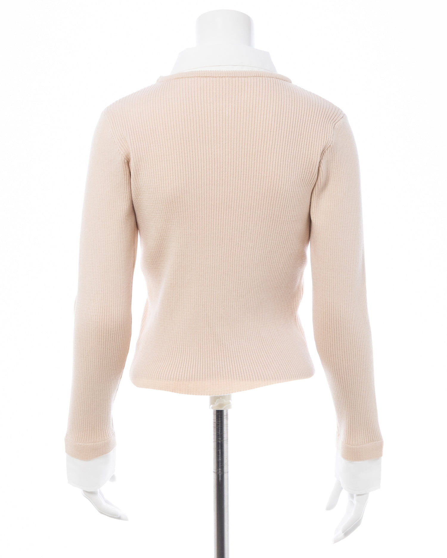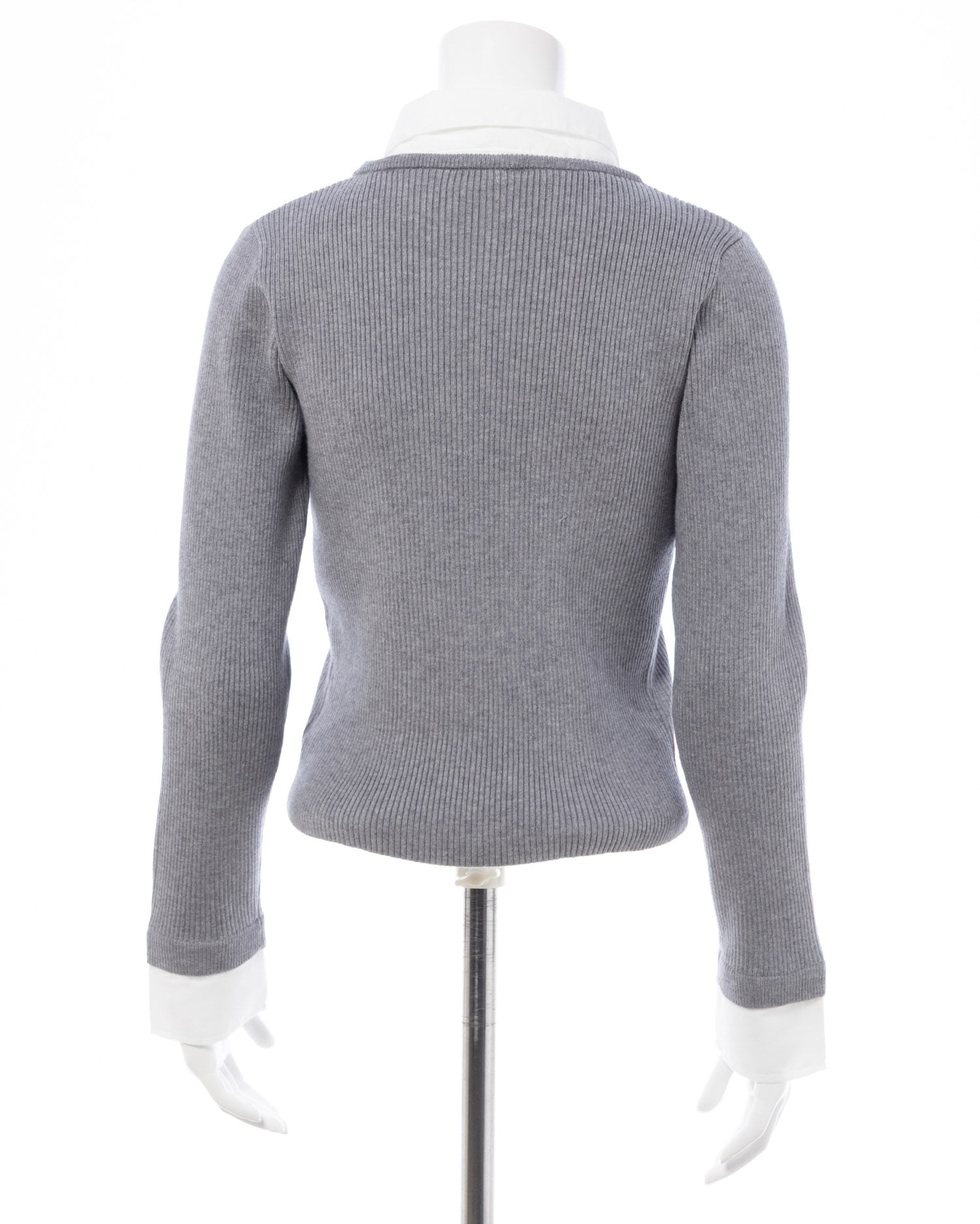 【シャツレイヤード風デザイン×胸元のリボンがかわいい♡ドッキングニット】