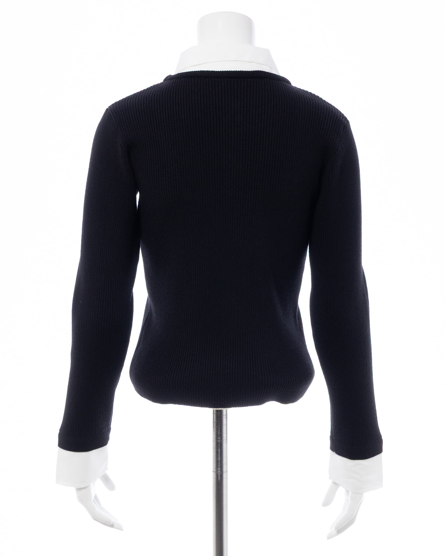 トレンドのシャツレイヤード風デザインのドッキングニットです。