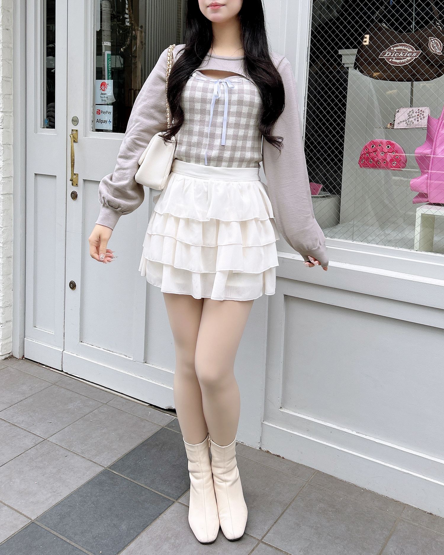 ロングブーツやビッグシルエットのアウターを合わせれば