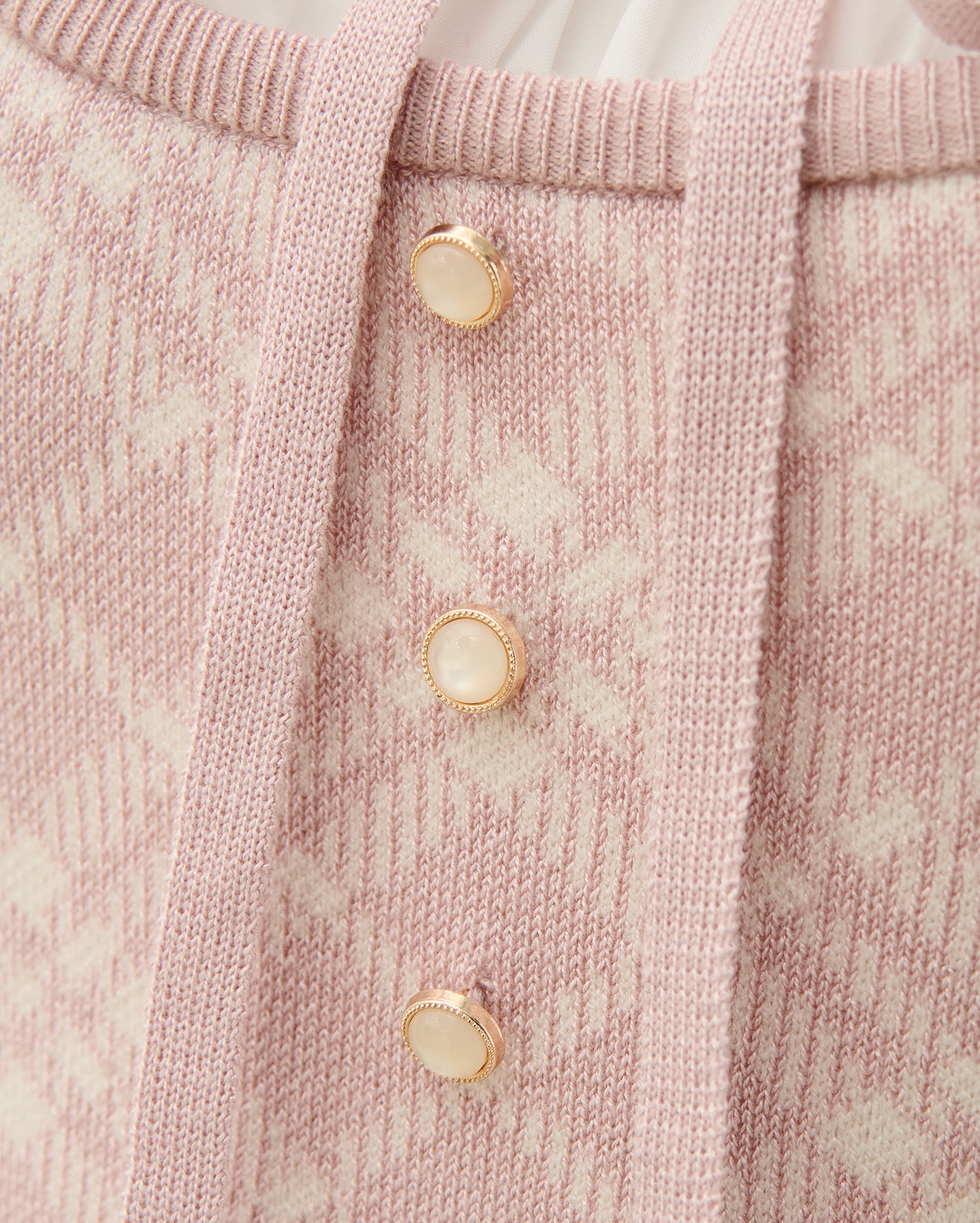 3つ並んだ胸元の上品なパールボタンもポイントです。